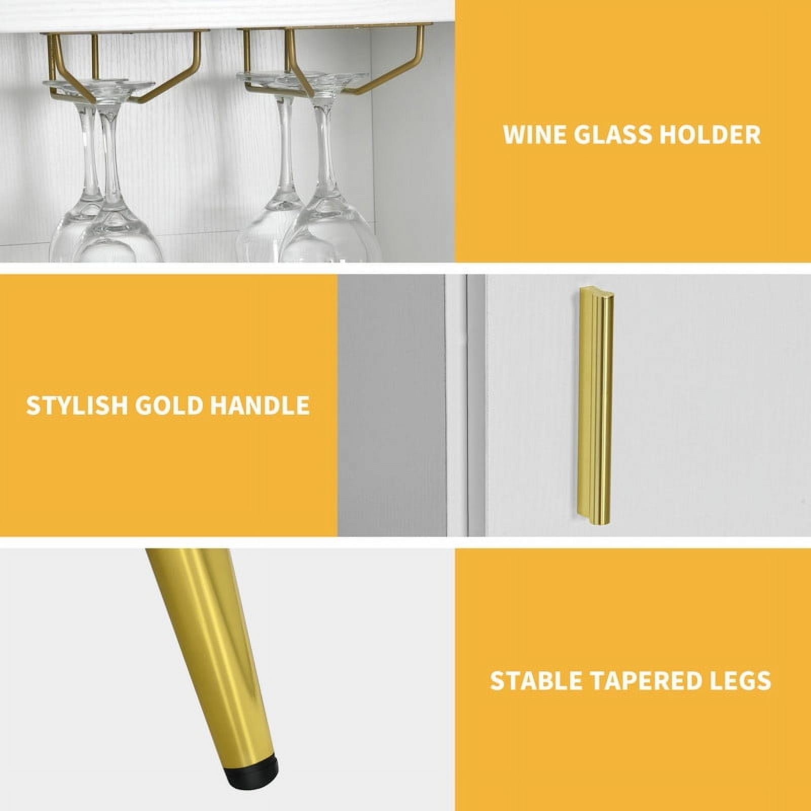 Versatile Design: Transform your living space with a sideboard cabinet that functions as both a stylish TV stand for 45/50/55″ TVs and a sophisticated dining room piece, featuring an elegant white finish and metallic gold handles. Flexible Storage Solutions: Enjoy the convenience of 2 hidden, adjustable shelves with 3 levels of adjustment, allowing for personalized organization of various items in your coffee bar cabinet. Spacious and Durable: Designed with ample storage and a robust 300lb weight capacity, this white buffet cabinet offers practicality with compartments, drawers, and glass racks, all crafted from strong P2 MDF for lasting durability. Sturdy and Stable Construction: Ensure stability and ease of cleaning with the cabinet’s robust tapered legs and 4 adjustable anti-scratch feet, providing a reliable foundation without wobbling. Assured Customer Experience: Rely on our professional customer service team for prompt support and solutions, making your shopping experience a confident one with our commitment to your satisfaction.