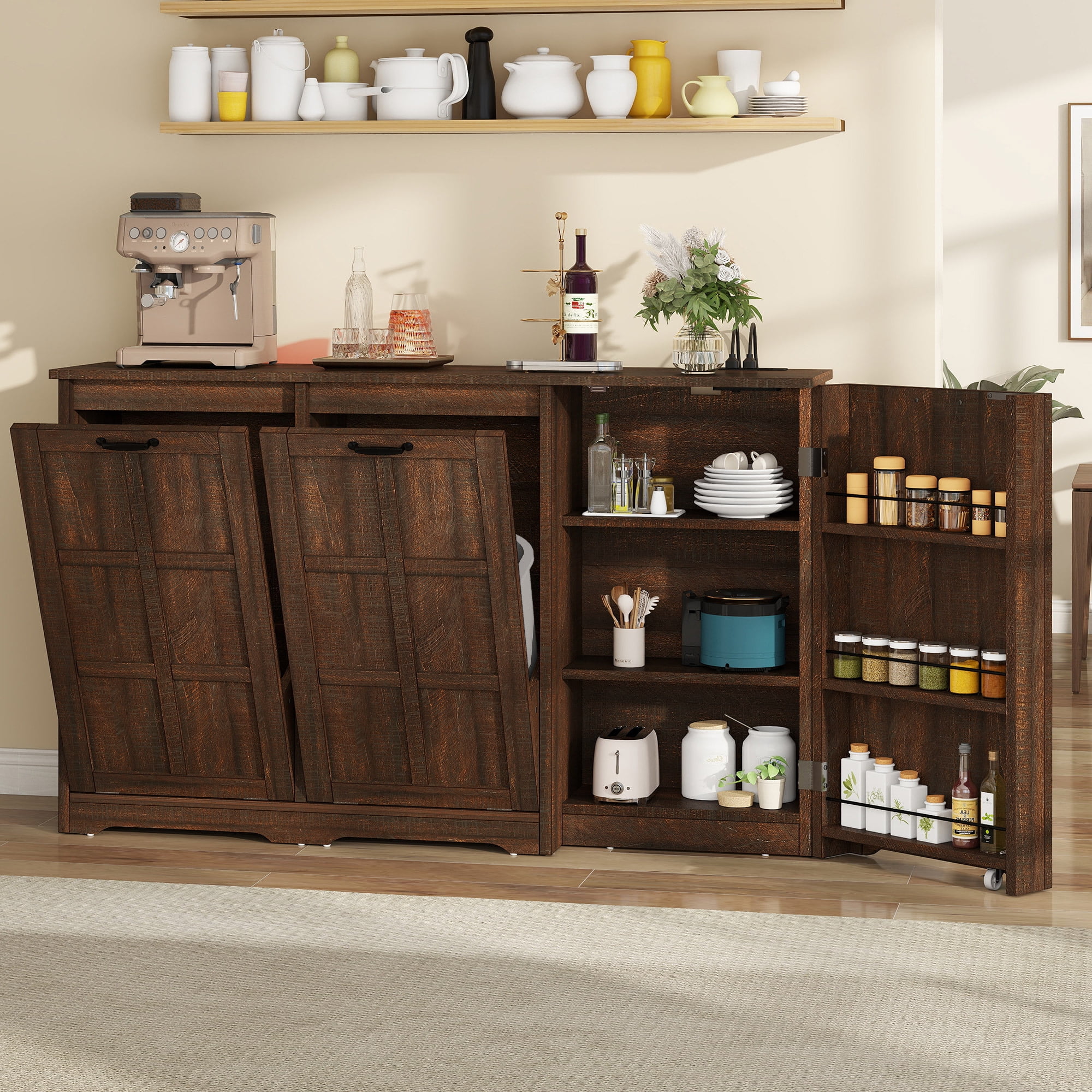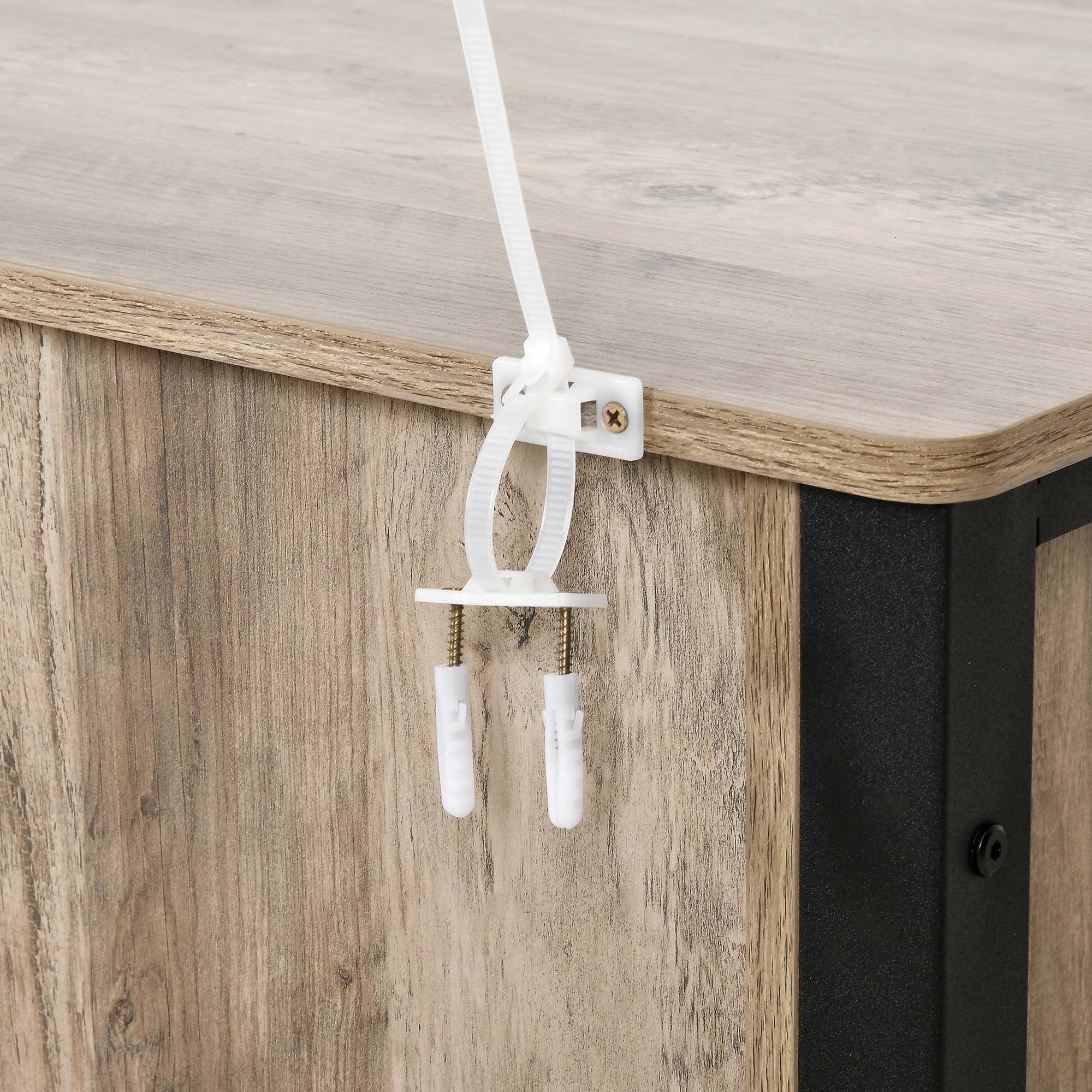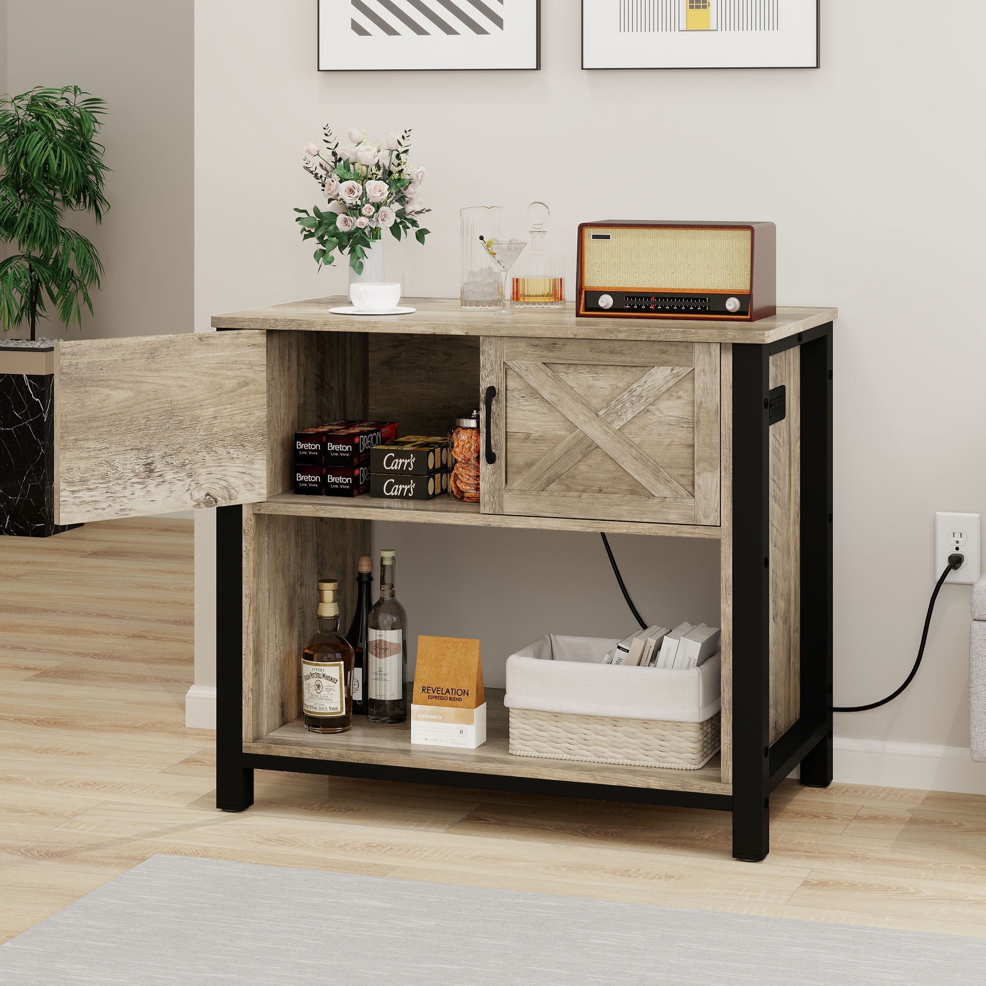 Convenient Power Access: Enjoy the convenience of a built-in power outlet on our console table, allowing you to connect coffee makers, electronic devices, and more without the hassle of cords trailing across your space. This feature combines elegance with practicality for a refined and functional experience. Spacious Storage Design: With dimensions of 36.2″L x 20.5″W x 31.7″H, this coffee bar entrance table provides generous storage solutions. It includes a top board, a bottom shelf, and two storage cabinets, perfect for keeping your essentials organized and your space looking tidy. Multi-Purpose Use: Versatile in its functionality, this farmhouse-style table can serve as a TV console, sofa table, aquarium stand, coffee bar cabinet, or entry table. It fits well in various settings, including living rooms, porches, dining rooms, bedrooms, bar stations, and hallway entrances. Durable and Stable Build: Constructed with thick 1.57″ L x 1.57″ W table legs, our console table is capable of supporting up to 660 lbs., ensuring its sturdiness. The included anti-tip devices provide additional safety, and the moisture-resistant material guarantees long-lasting durability. Simple Assembly Process: Assembly is made easy with clear instructions and numbered parts. While the table is sturdy, it is recommended to have two people assemble it for optimal stability. All necessary tools and hardware are included, ensuring a smooth and hassle-free setup experience.