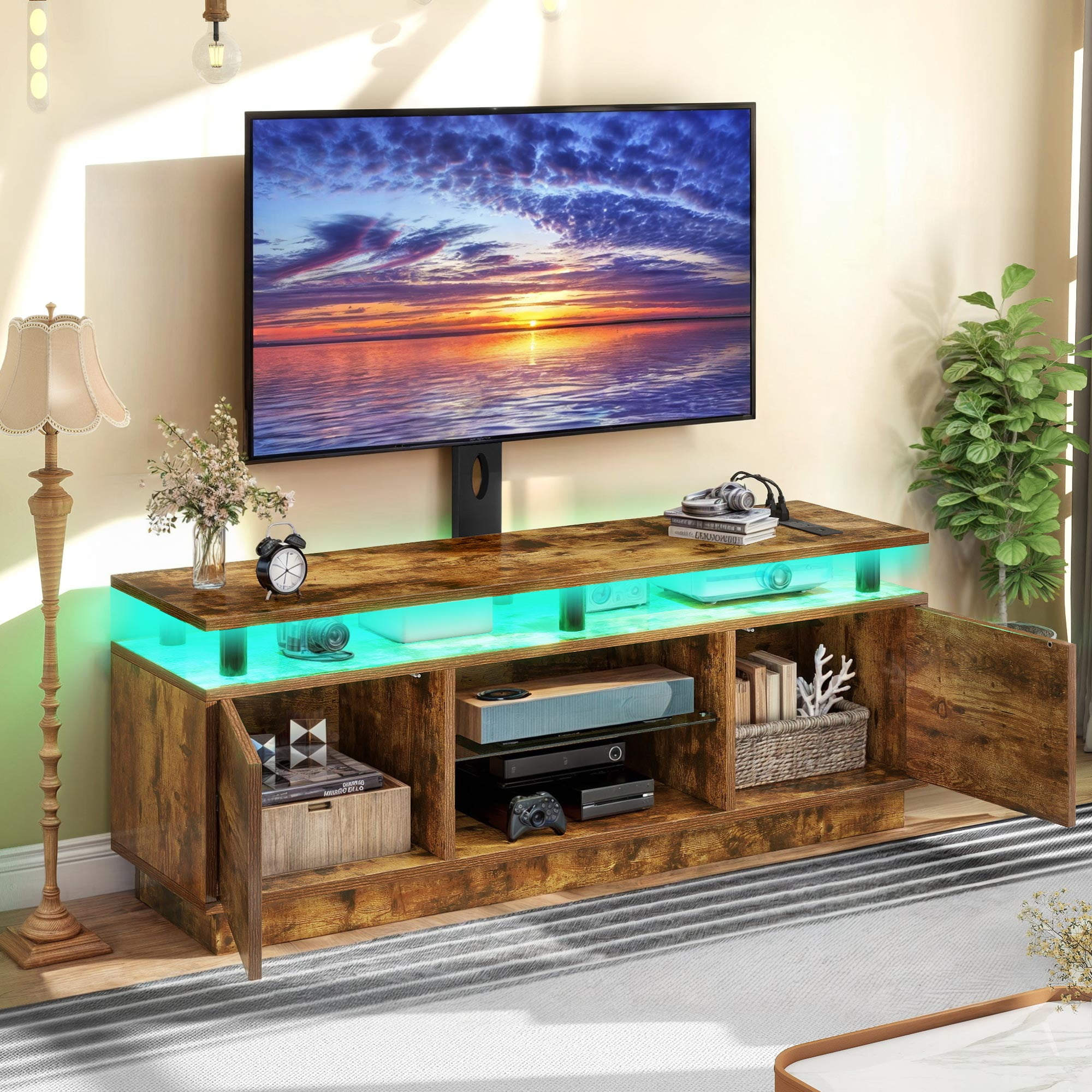 Uforic TV Stand with Mount & Power Outlet, LED TV Mount for 60/65/70 inch TVs, Height Adjustable, Rustic Brown