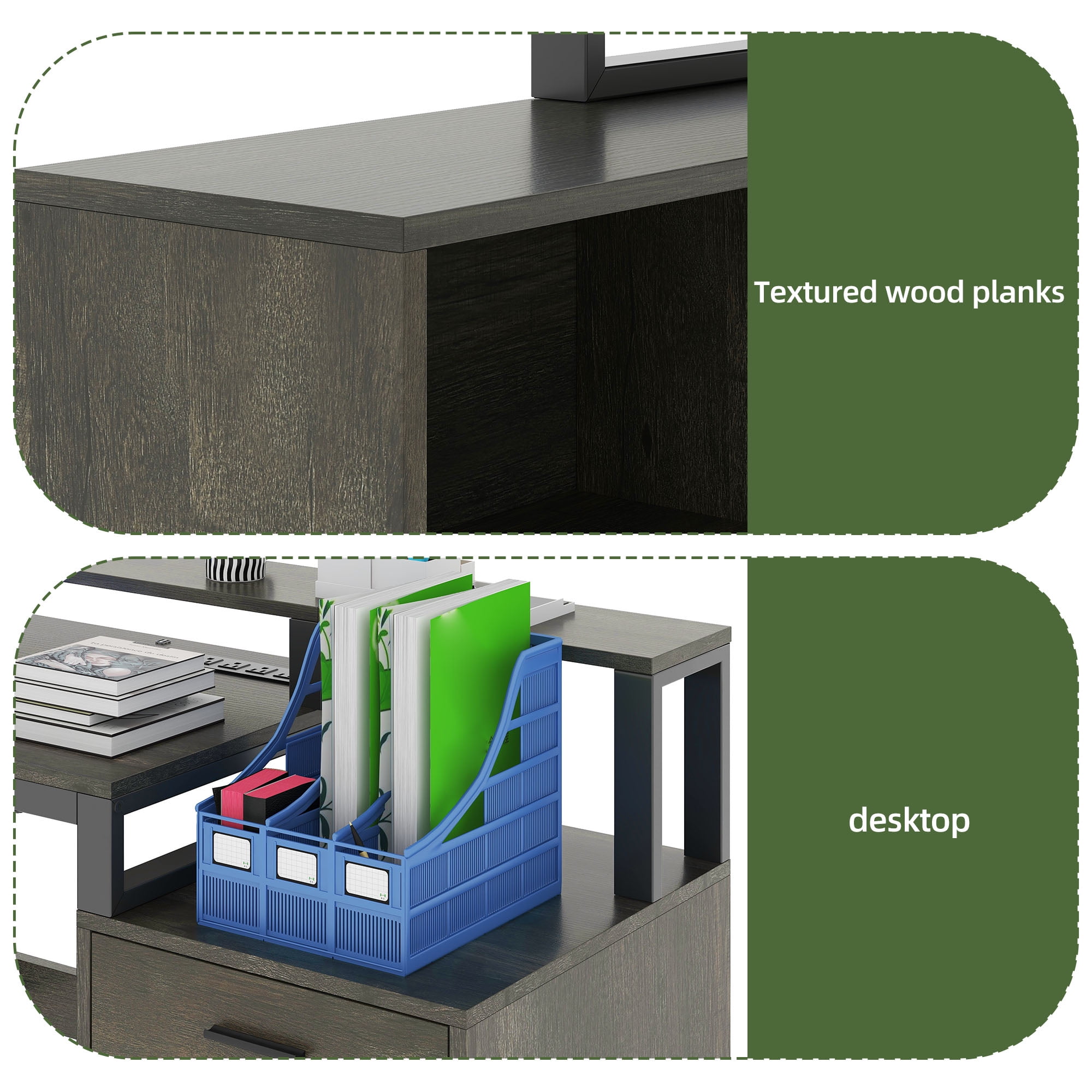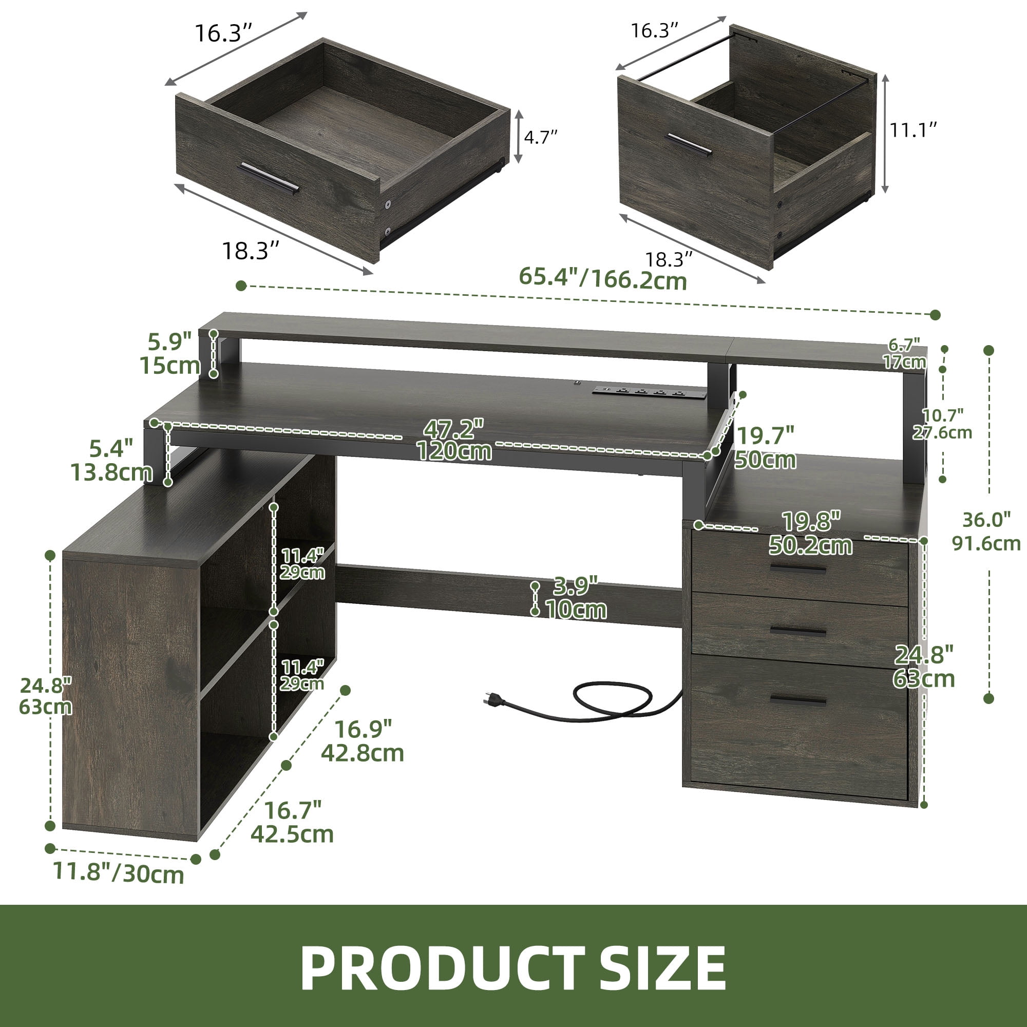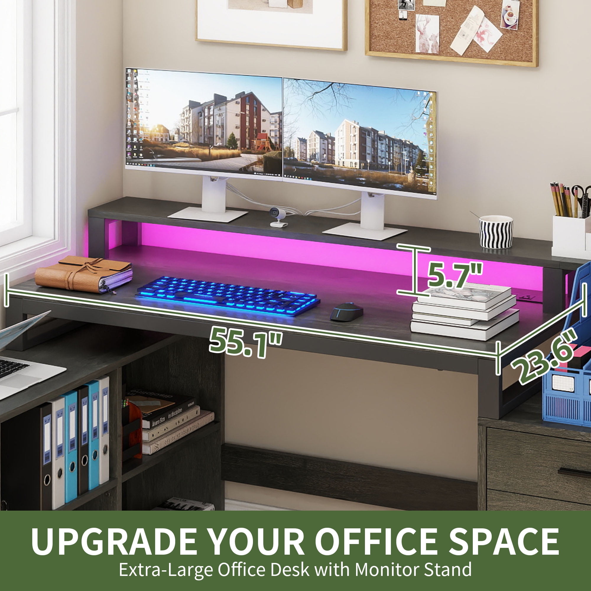 Upgrade Your Workday Vibes: Ready to elevate your productivity while working from home? Our L-shaped desk has you covered! With its spacious design and convenient features, it’s the ultimate workspace solution. Boost your workday experience. Curate Your Space: Our desk features a spacious tabletop and monitor stand, ideal for 2 monitors, a keyboard, and gadgets. Plus, it includes a printer stand, a large drawer for A4 and legal files, 2 smaller drawers, and 4 shelves for extra storage. Long-Lasting Appeal: Built from strong engineered wood, our computer desk ensures lasting longevity and dependability. It repels water and scratches, making it ideal for maintaining a polished look while standing up to daily use. Elevate Your Atmosphere: Transform your workspace with our desk’s colorful LED lights! Control them easily with a light strip switch or app, adjust the built-in mic, sync with music, and set timers for a personalized experience. Tidy Up, Power Up: Our desk includes 4 AC outlets and 2 USB ports, making it simple to charge your devices! Say goodbye to tangled cords and hello to a clean, efficient workspace that boosts your productivity and keeps you connected. Age_group: Adult