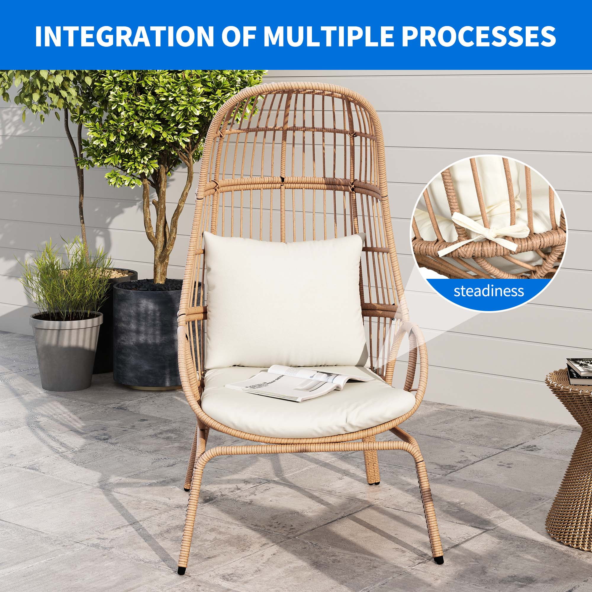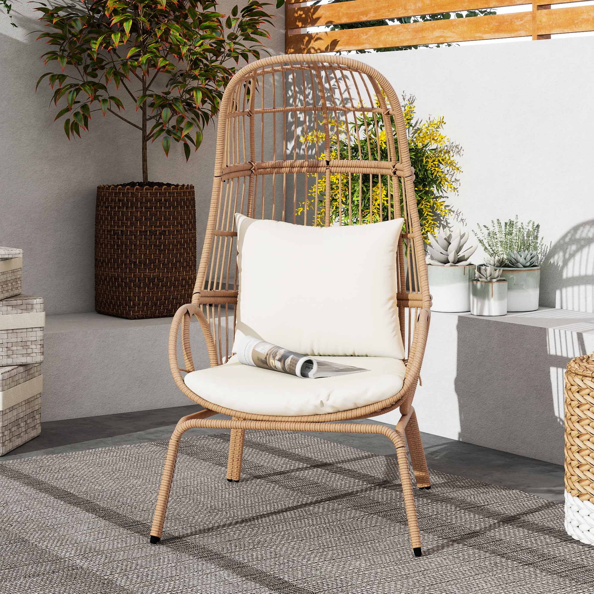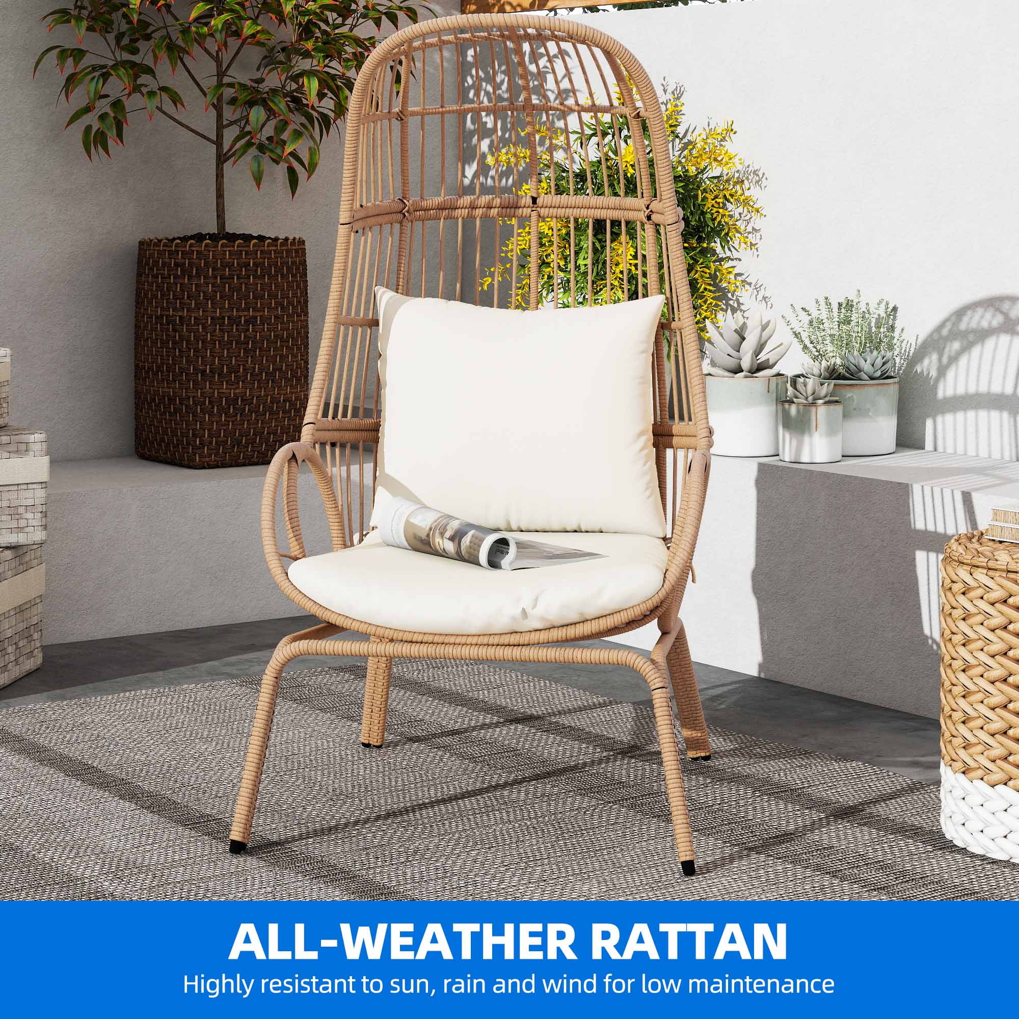 Uforic Beige Wicker Egg Basket Chair with Cushions for Patio