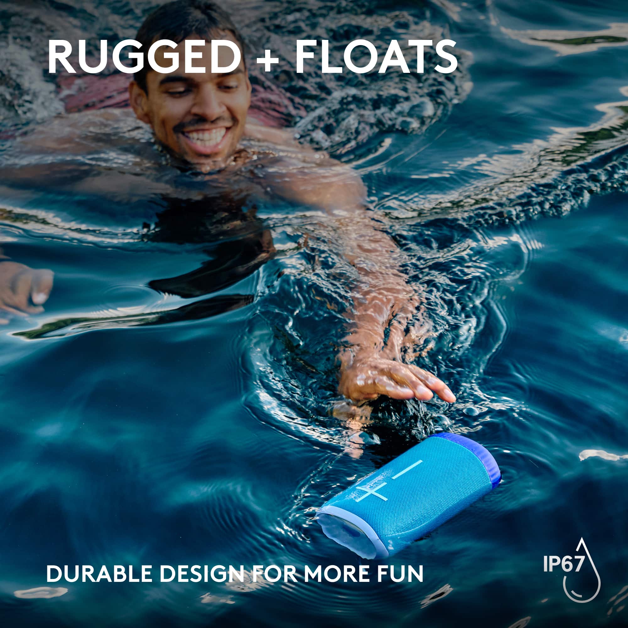 The EVERBOOM Waterproof Bluetooth Speaker delivers balanced sound and immersive audio; select or customize the EQ mode with UE | BOOM by Ultimate Ears app.