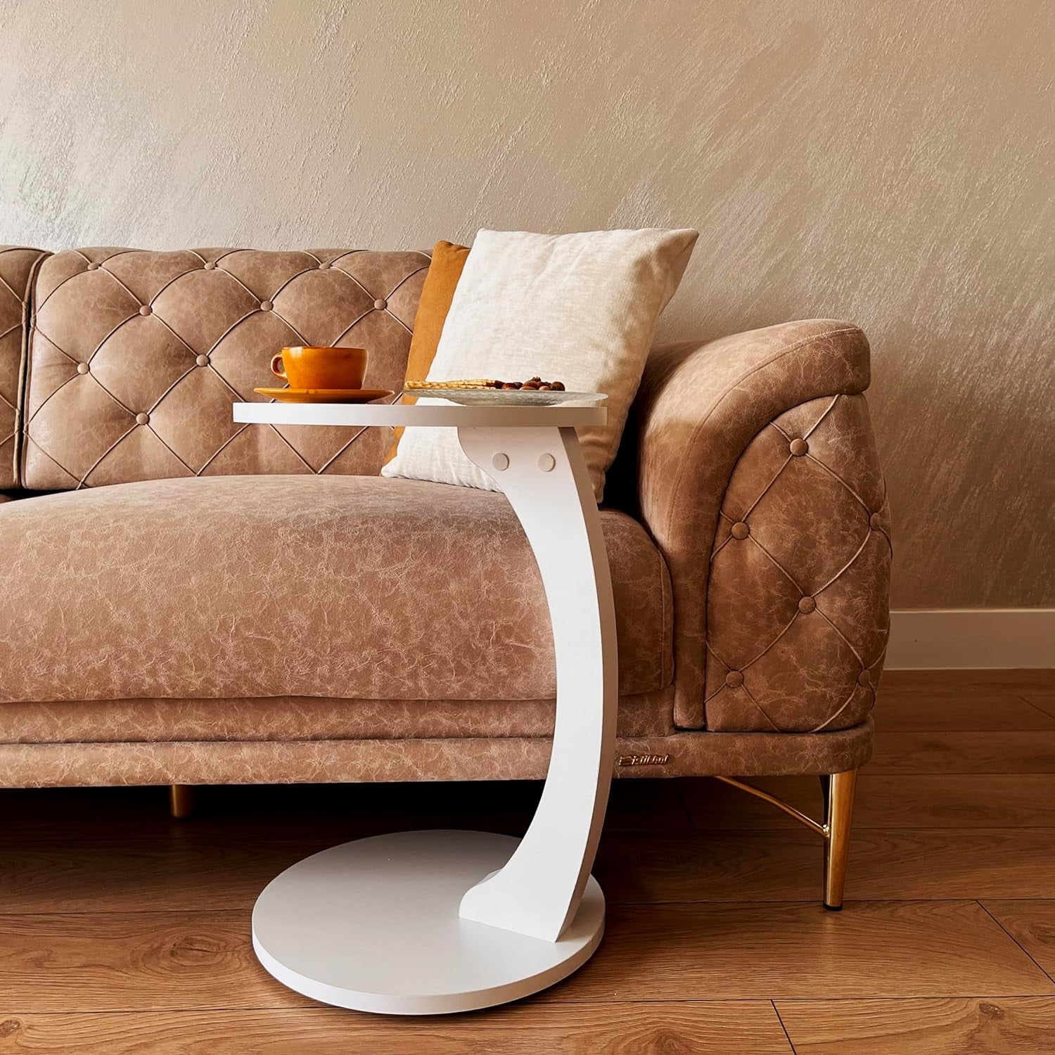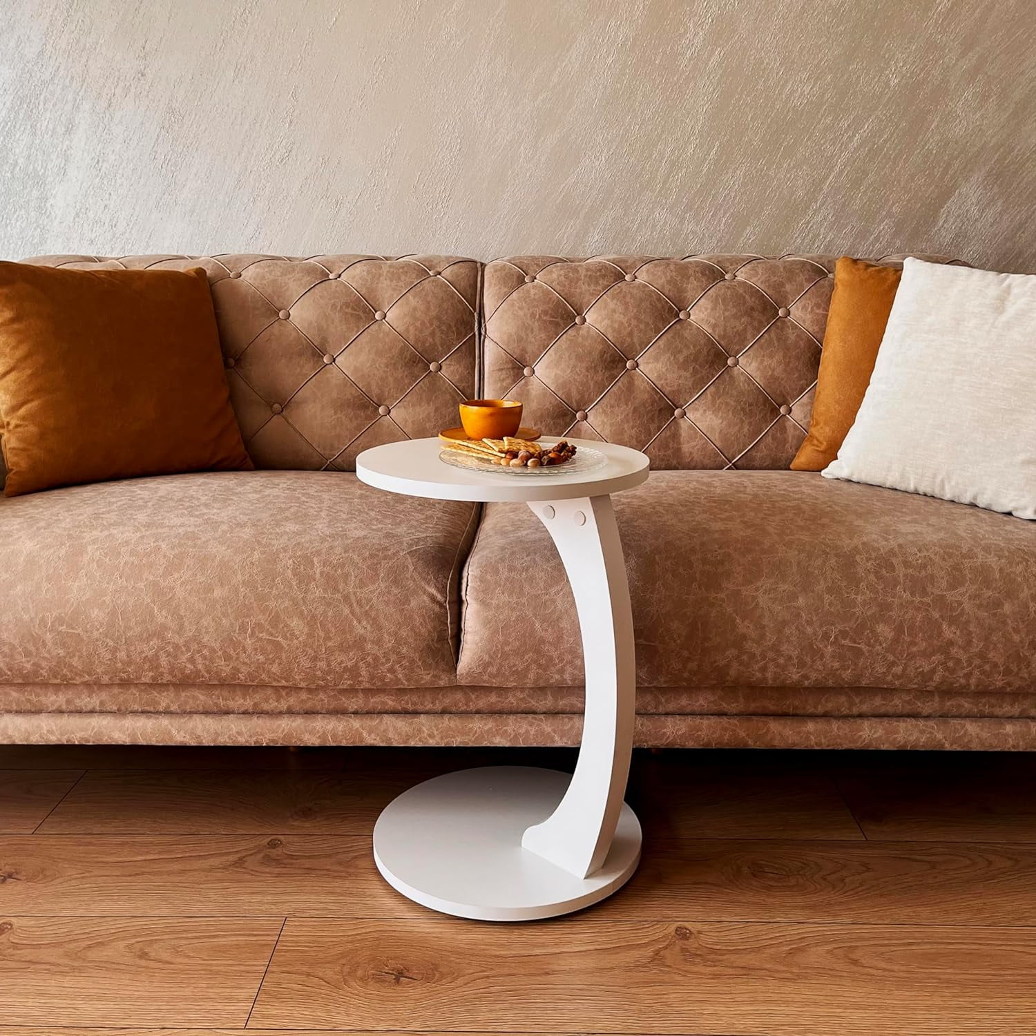 Our C-Shaped Round End Table with Rolling Wheels seamlessly blends modern design with unmatched functionality, making it an essential addition to today’s dynamic living spaces. Crafted with precision and a keen eye for detail, this table stands as a testament to contemporary aesthetics. The added convenience of rolling wheels ensures flexibility, allowing you to effortlessly reposition it, whether beside a plush sofa, in a cozy living room corner, or as a chic bedside companion. Dimentions: 13.3″- 34 cm – Top 22″ – 56 cm – Height Color Options: Anthracite Brown White