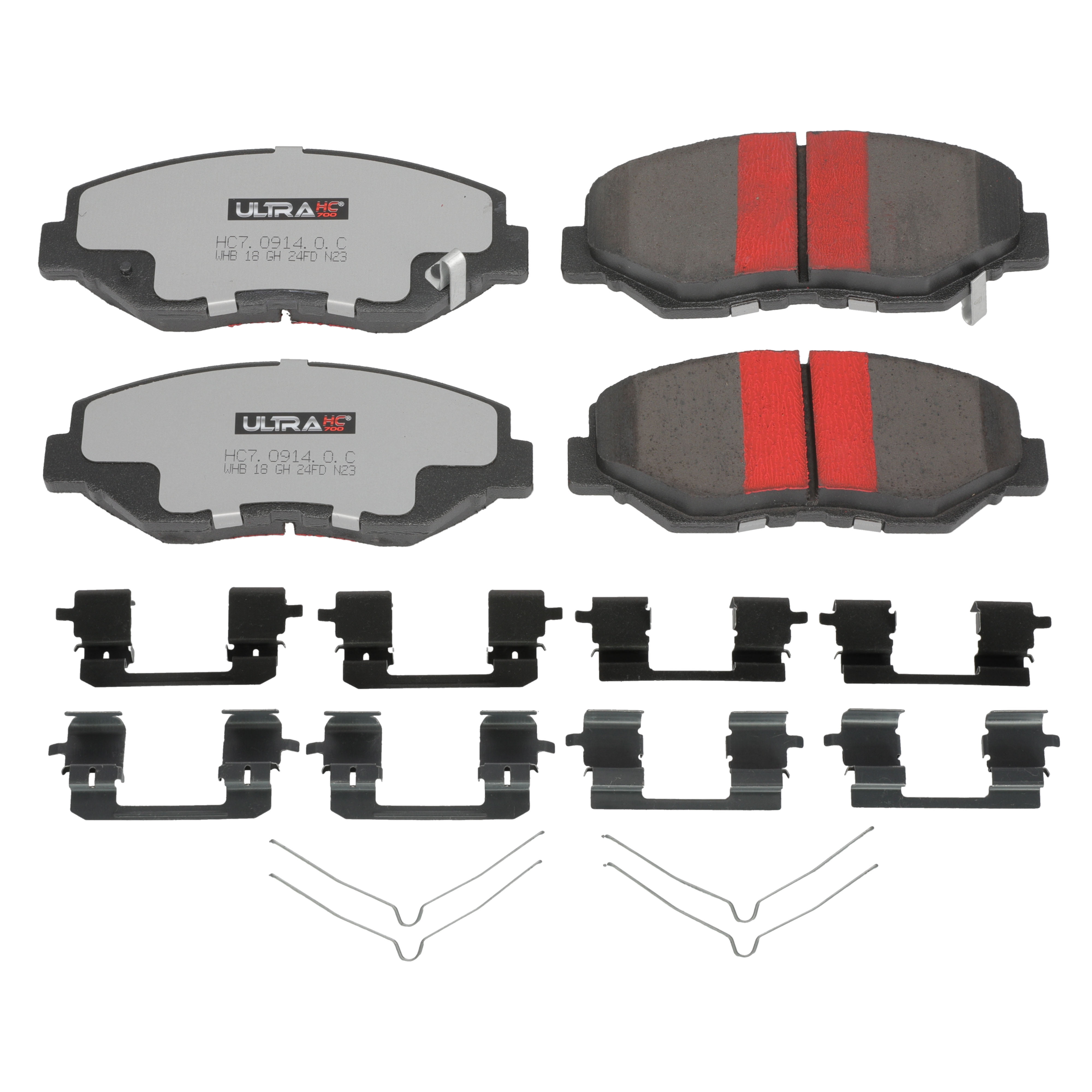Are your brake pads worn out, making noise, or would you just like to upgrade your braking system? UltraHC700 Brake Pads are an upgrade to standard replacement pads. UltraHC700 Brake Pads utilize all ceramic formulations that are customized for excellent stopping while simultaneously ensuring no noise or unsightly brake dust on your wheels. UltraHC700 Brake Pads include a best-in-class noise insulator (shim) as well as rubberized abutment hardware to ensure you have everything required for proper installation and the best in noise free performance. Additionally, UltraHC700 Brake Pads include a red break-in stripe that expedites the break-in process and provides for peak performance right out of the box. For best results when installing UltraHC700 Brake Pads, replace your brake rotors and hardware and inspect your brake calipers to ensure proper function.