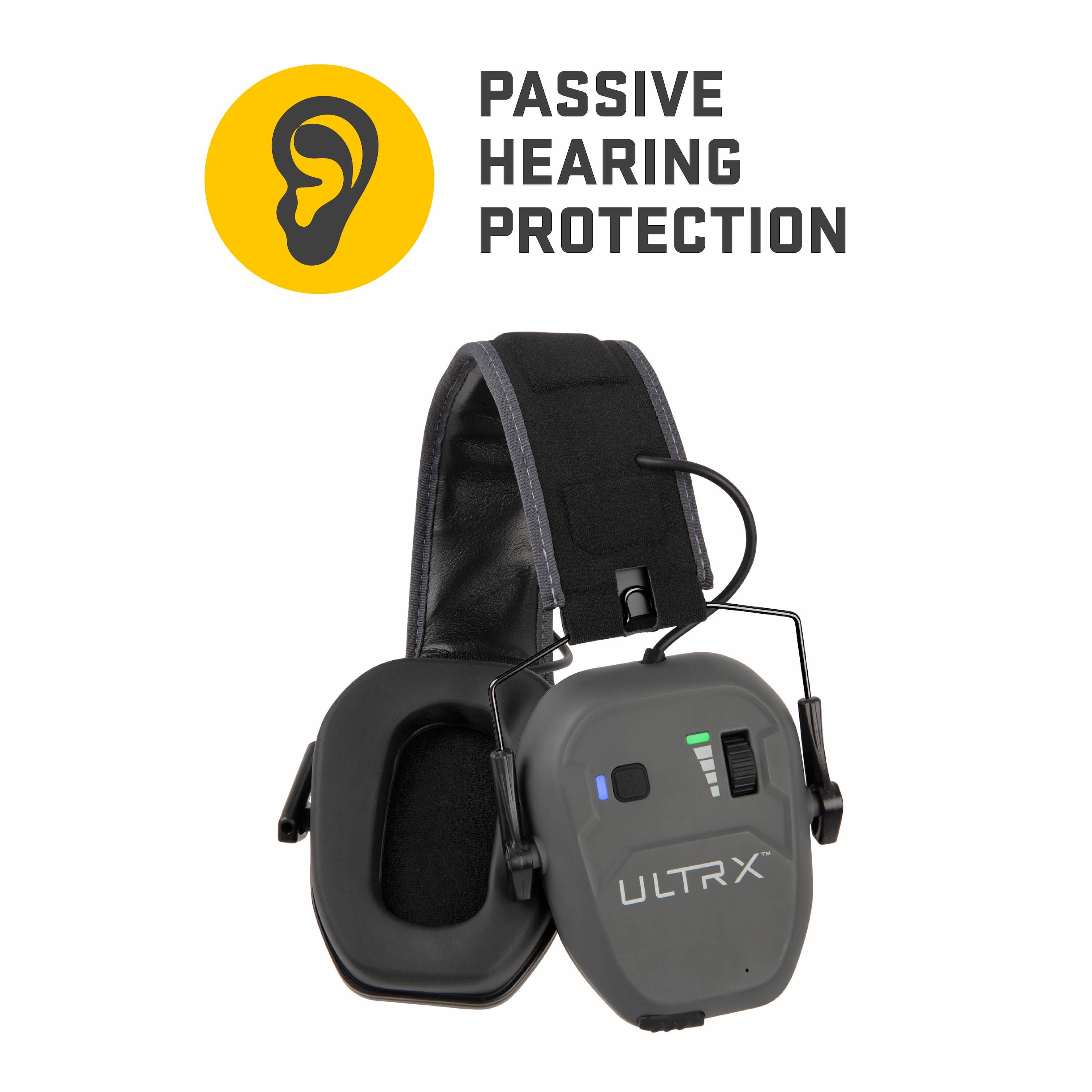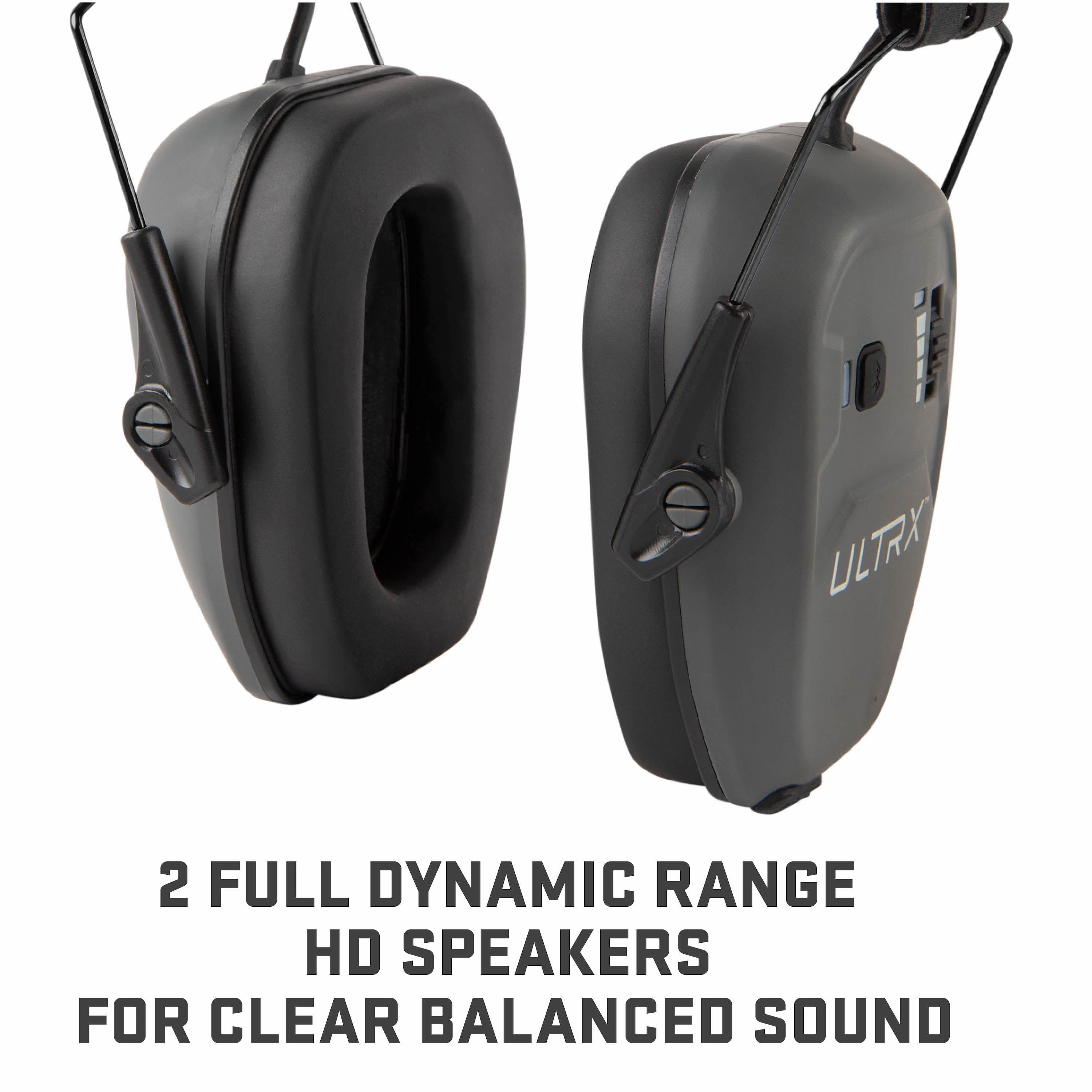 ULTRX Bionic Earmuffs provides you with passive hearing protection and Bluetooth connectivity. Adjustable headband conforms to your head for a comfortable fit while offering a Noise Reduction Rating (NRR) of 23-decibels. The dual, full dynamic range speakers perform with a clear, balanced sound. ULTRX Bionic Bluetooth Earmuffs, Nrr 22 Decibels, Gray, 0.52 lb, Model 2242A. Passive Hearing Protection, perfect for the range, fireworks, yard work, sporting events and other loud situations.