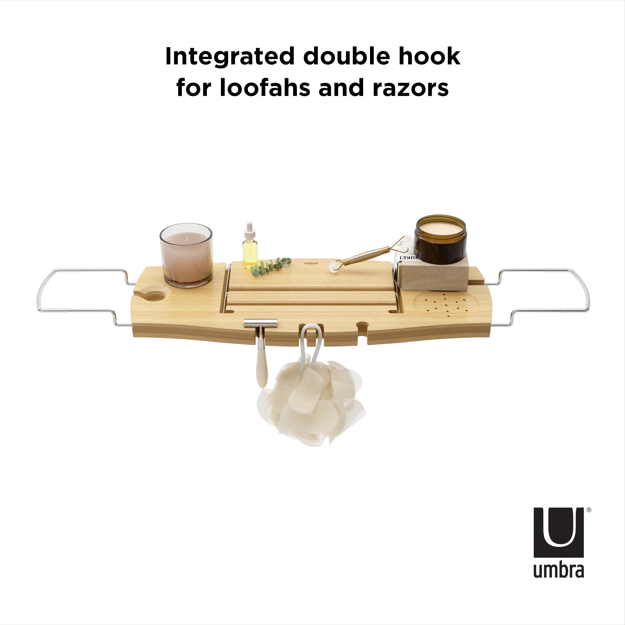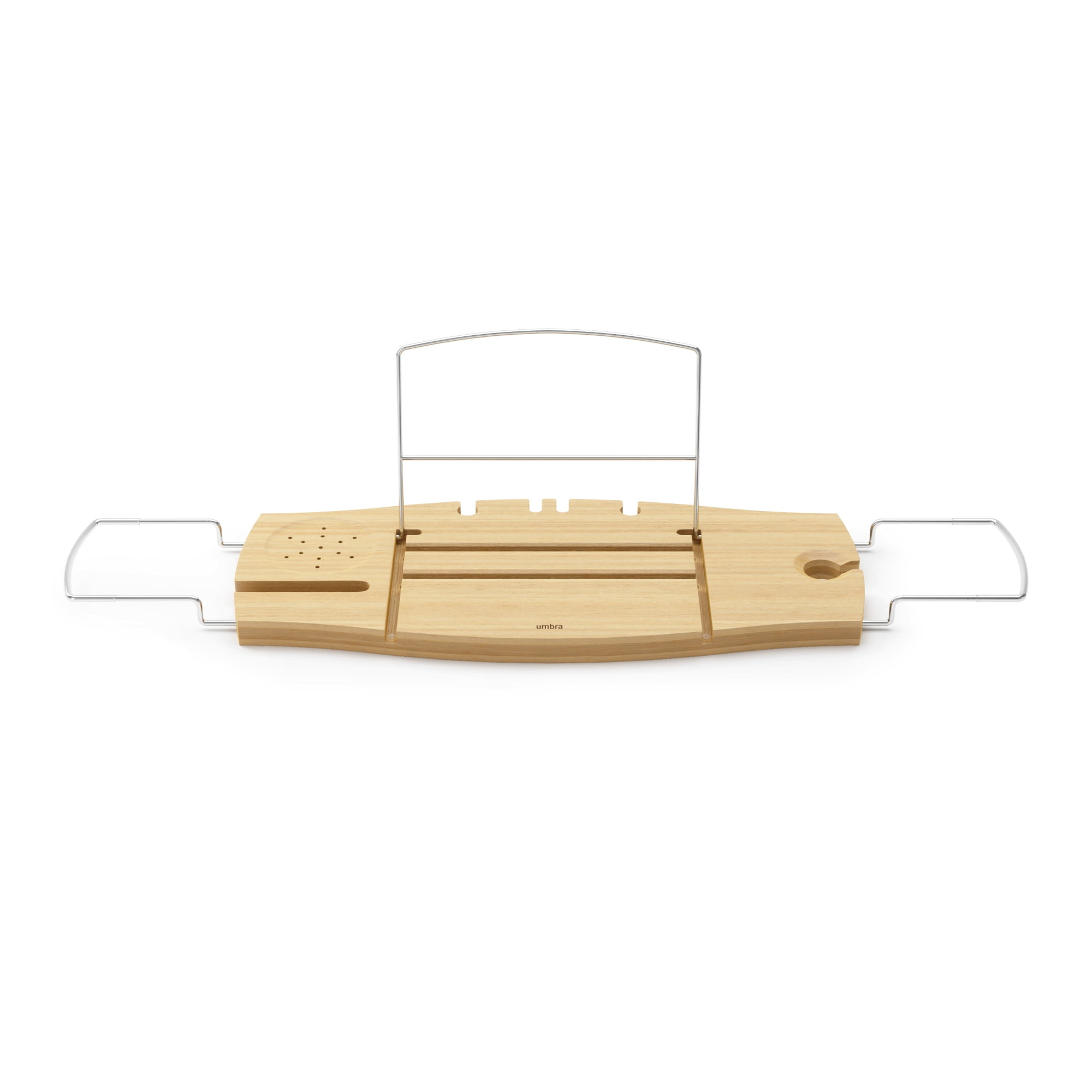 RELAXATION RE-IMAGINED: Aquala Bath Tray’s design features a sturdy slot for your phone, a double hook for your loofah, a new wine glass holder and an additional middle bar for extra support to prop up your book, magazine or tablet THE ULTIMATE BATHTUB TRAY: Aquala Bathtub Tray puts everything at your fingertips so you can relax in peace and quiet while you enjoy a warm, soothing bath together with a glass of wine and your favorite book EXTENDABLE SLIP-RESISTANT ARMS: Aquala extends to a maximum of 37 inches (94 cm) ensuring it will fit most bathtubs plus each arm features a thin layer of silicone to help prevent the caddy from sliding from the tub’s edges WATERPROOF, SPA-LIKE MATERIAL: Made of natural, long-lasting materials, Aquala Bath Tray instantly evokes a spa-like feel ORIGINAL DESIGN & SATISFACTION GUARANTEED: Our team of international designers brings thought, creativity and original design to everyday items. Umbra products are made to last using high quality materials and we back that with a 30-Day Money Back Guarantee & a 5-Year Manufacturer’s Warranty. Don’t be fooled by copy-cat products. Choose Umbra and get the original