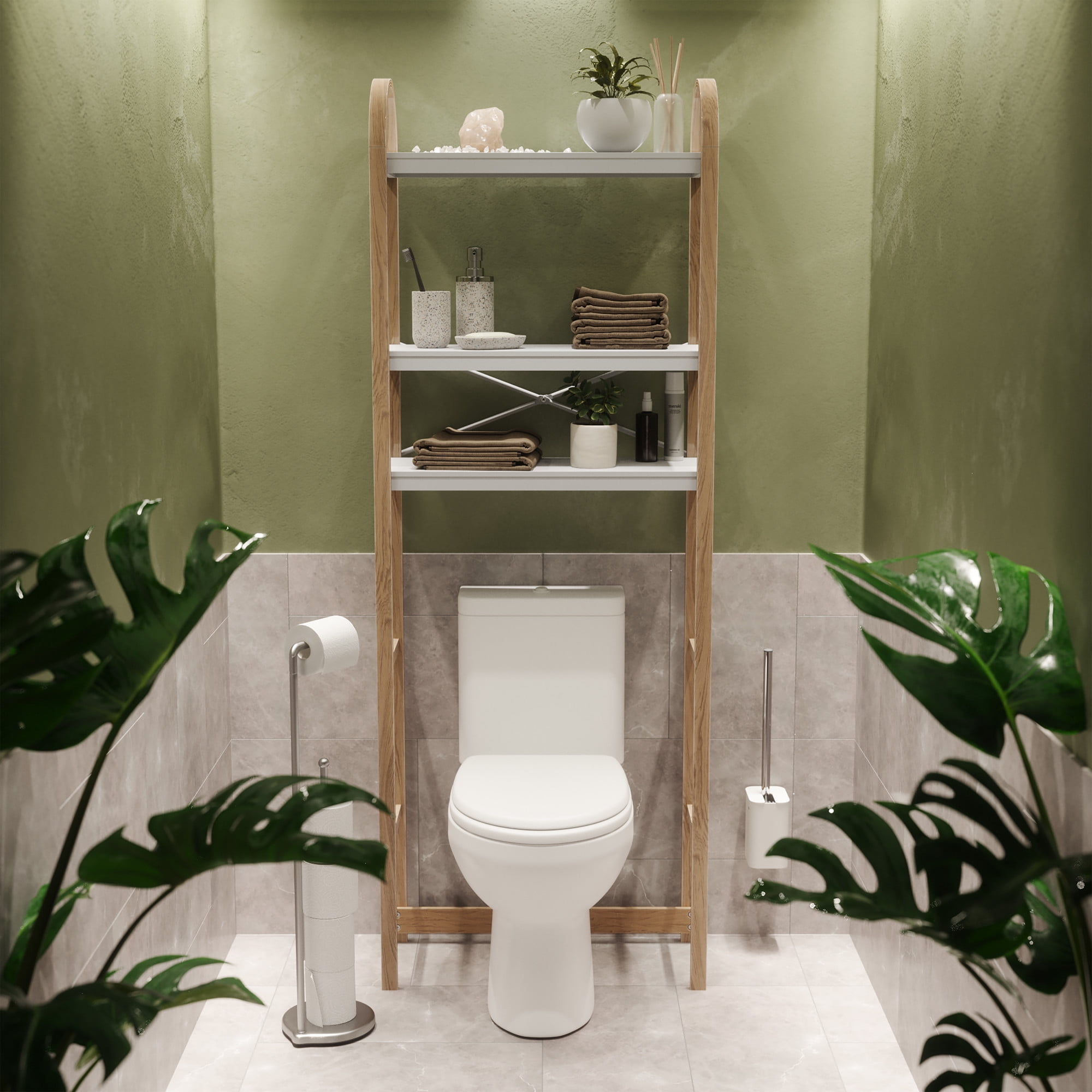 SPACE-SAVING STORAGE SOLUTION: Bellwood Over the Toilet Shelf features three wooden tiers and three dowels for elevated storage; holds 13kg (29lbs) per shelf. SOFT BENTWOOD LEGS: Bellwood features soft bentwood legs made of a real wood finish, for a modern and versatile look PART OF THE BELLWOOD FAMILY: Bellwood Over the Toilet Shelf is a part of Umbra’s Bellwood Collection including a matching side table, coffee table, wall shelf, freestanding shelves, storage table, umbrella stand and more EASY TO ASSEMBLE: Easy to assemble, Bellwood Over the Toilet Shelf comes with all necessary hardware and instructions for a quick assembly UP TO A 5-YEAR MANUFACTURER WARRANTY: Shop with confidence knowing that all our products are backed by the added security of a warranty up to 5 years