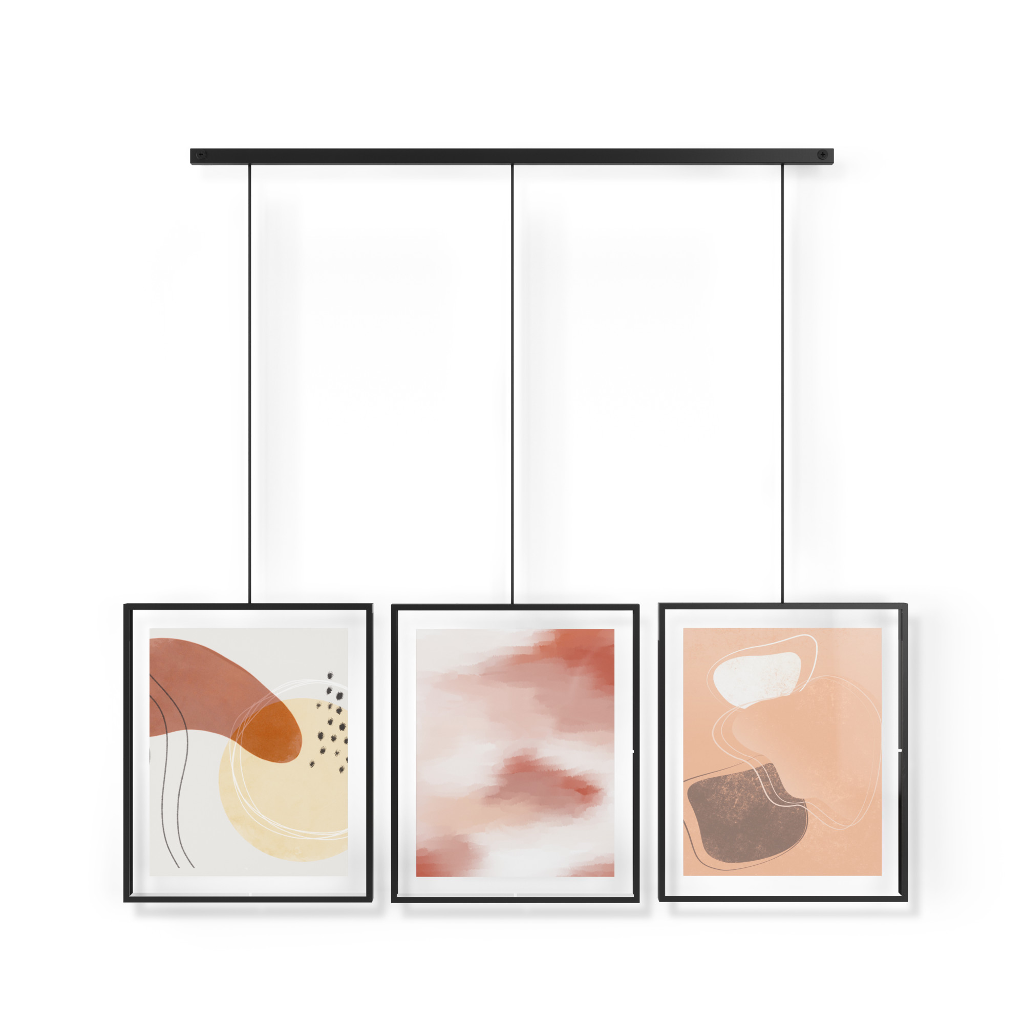 Create your own unique gallery wall with Exhibit 8×10 picture frames. An extension from the original Exhibit Photo Display, this set of three larger frames, each suspend on their own metal rod. Displayed vertically or horizontally, Exhibit is a unique way to hang and showoff your favorite photos. Each 8×10 picture frame can float a 5×7″ image. Use Exhibit to set a décor accent in your living room, bedroom, entryway, office or studio and give it a modern update while curating your favorite photos and artwork.