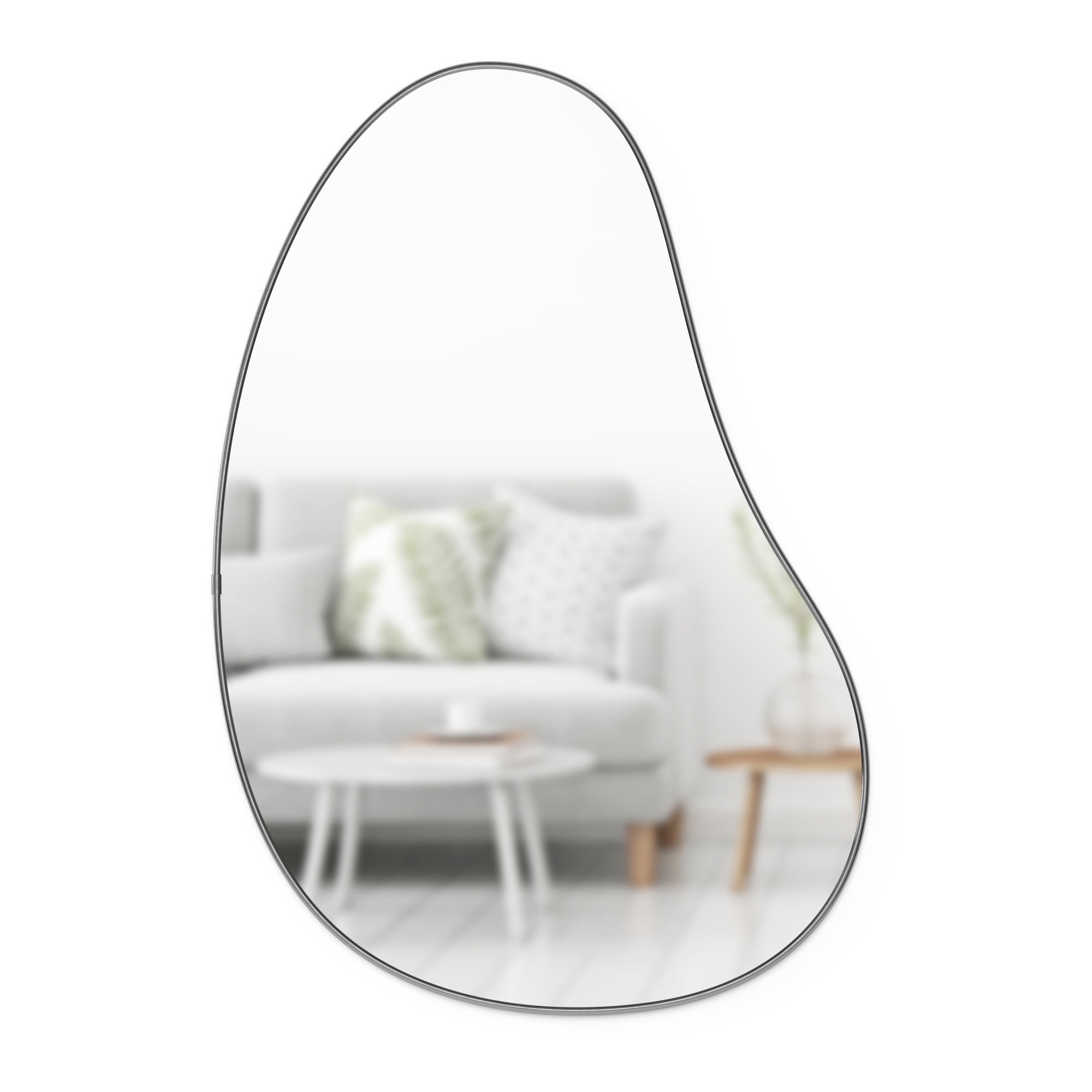 CONTEMPORARY, ORGANIC SHAPE: Hubba’s soft, organic shape adds dimension and whimsy to your space, while still remaining modern in design EIGHT ORIENTATIONS: Pebble can be oriented in eight different orientations, depending on your space and preference THIN METALLIC FRAME: Hubba Pebble measures 24 x 36 inches and features a thin metallic frame PART OF THE HUBBA MIRROR FAMILY: Hubba Pebble is part of Umbra’s Hubba Mirror Collection including, Hubba Arched Mirror, Hubba Wall Mirror and Hubba Arched Leaning Mirror 5-YEAR MANUFACTURER’S WARRANTY: Shop with confidence knowing that all Umbra products are backed by a 5-Year Manufacturer’s Warranty
