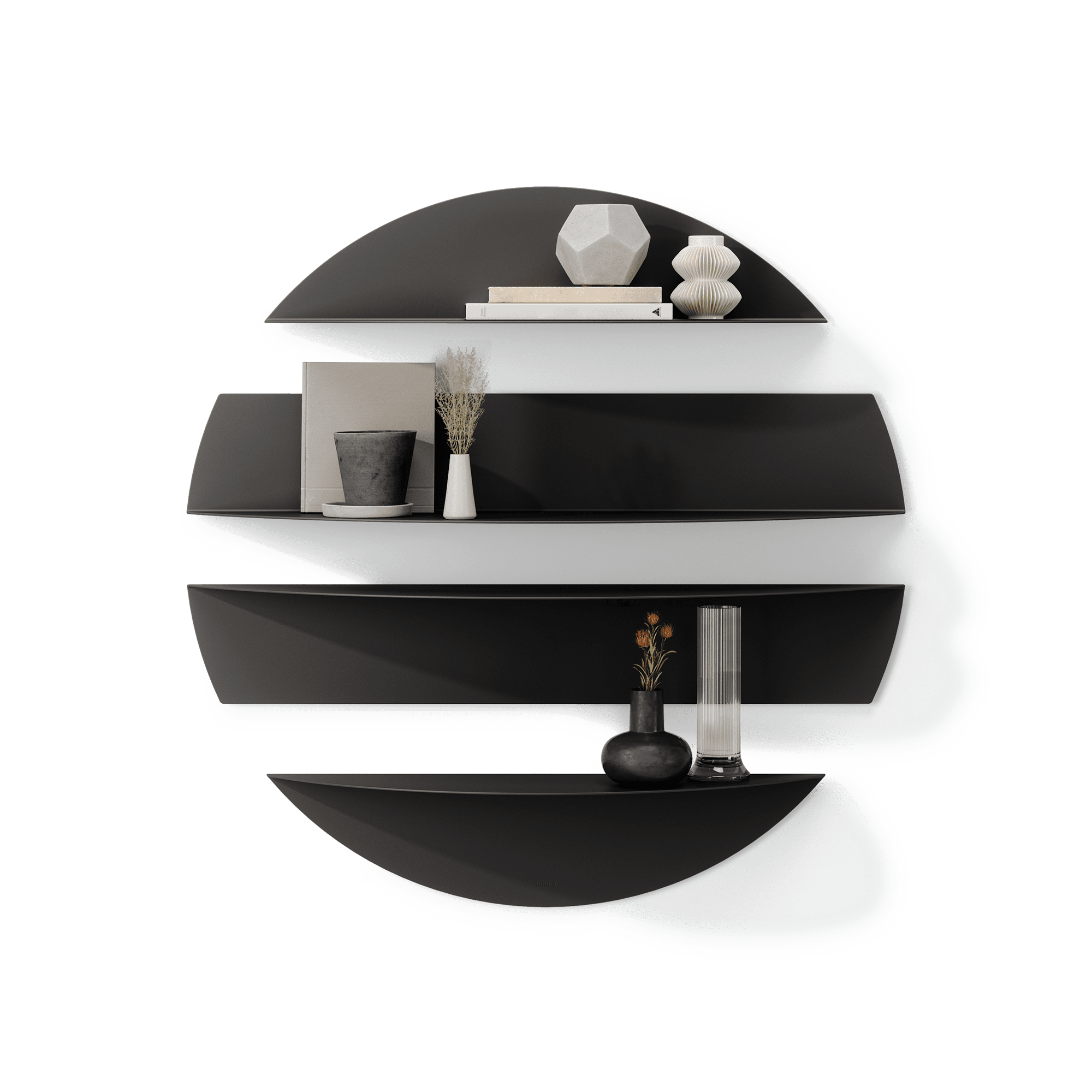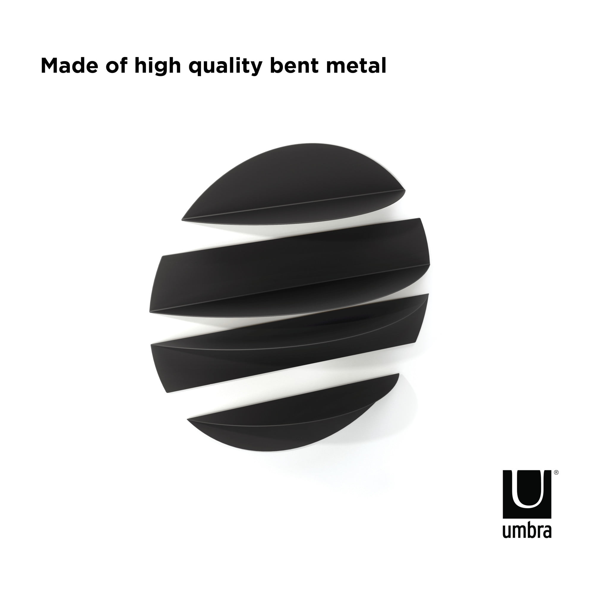 UNIQUE DISPLAY: Customize how you want your Solis Shelves to look on your wall – whether you mount them individually or place them together for a unique wall display MADE OF BENT METAL: Made of durable bent metal, Solis adds a modern and sophisticated touch while adding easy everyday storage for decorative items, books and more VERSATILE MOUNTING OPTIONS: Made up of two smaller shelves, and two large, choose to mount each shelf surface bottom facing up or down EASY TO INSTALL: Solis Shelves are simple to mount and come with all necessary mounting hardware for an easy installation; small shelf load capacity of 10 lbs (4.5 kg) and large of 15lbs (6.8 kg) ORIGINAL DESIGN & SATISFACTION GUARANTEED: Our team of international designers brings thought, creativity and original design to everyday items. Umbra products are made to last using high quality materials and we back that with a 30-Day Money Back Guarantee & a 5-Year Manufacturer’s Warranty. Don’t be fooled by copy-cat products. Choose Umbra and get the original