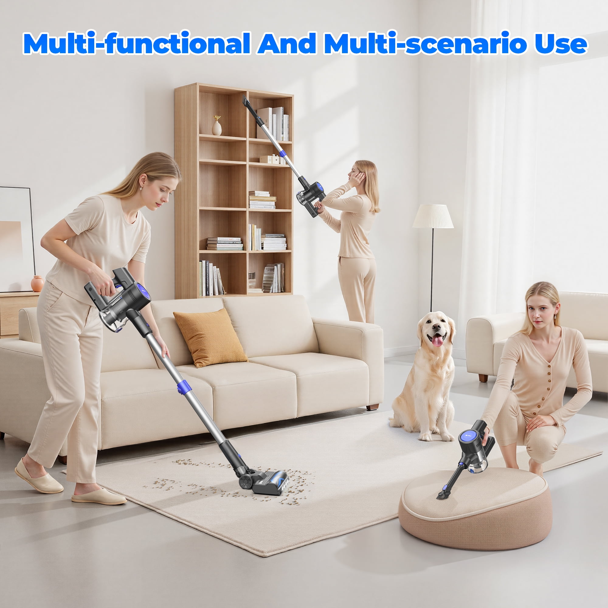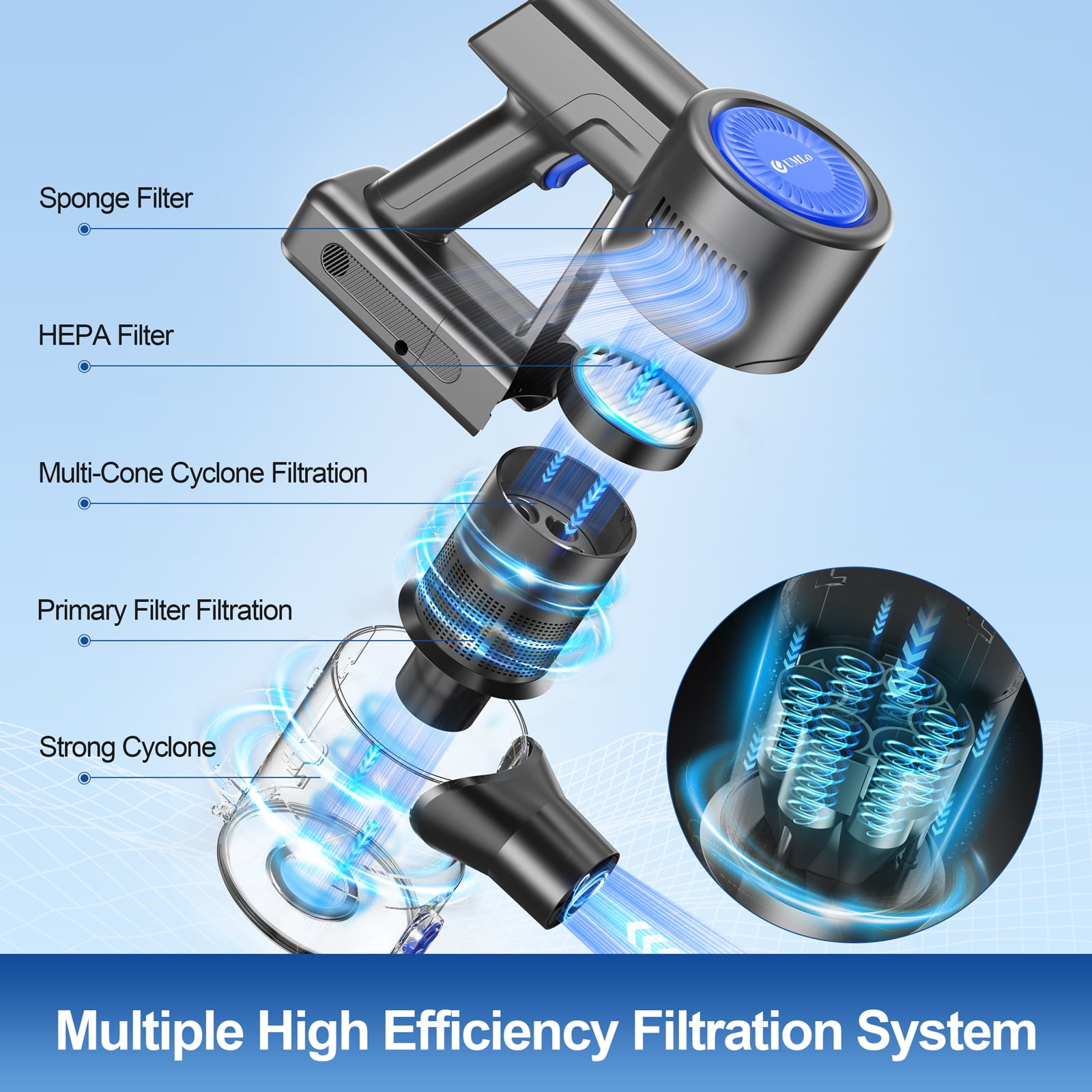 UMLo Cordless Vacuum Cleaner, 38000Pa/400W 50min 6-in-1 Lightweight Stick Vacuum Cleaners for Home Pet Hair Car Hardwood Floor Carpets, S500 Blue