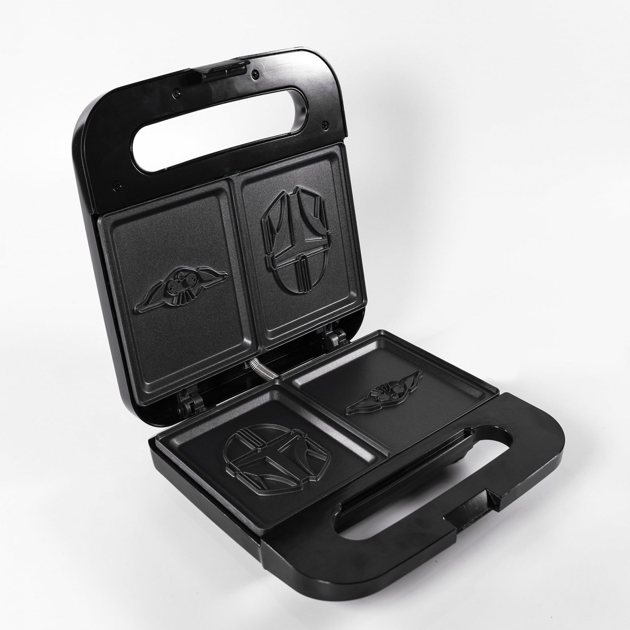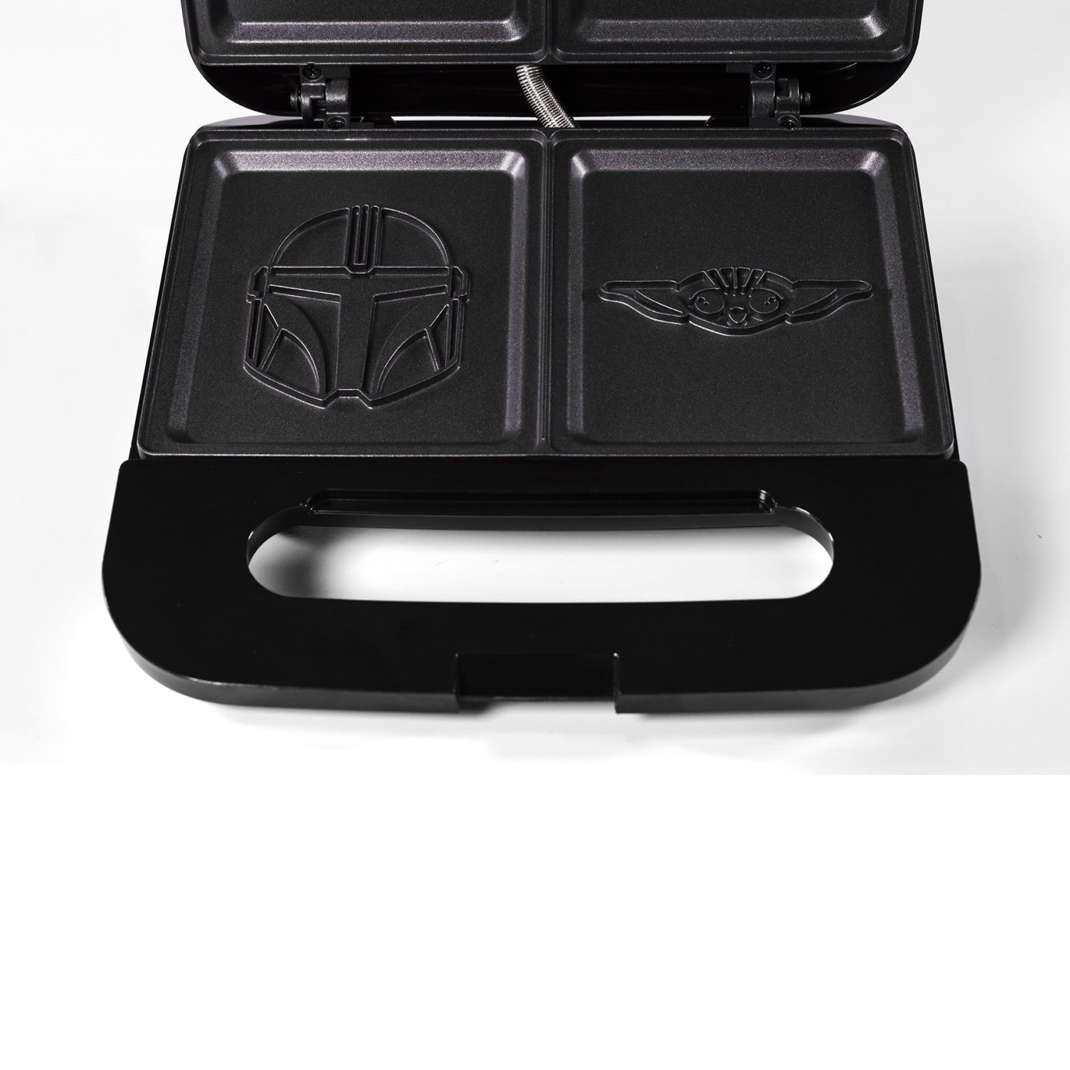 PERFECT FOR ANY SPACE – This grilled cheese maker not only makes two servings at once, its compact size is perfect for small countertops. CLASSIC MANDALORIAN DESIGN – The durable plates give you the best grilling in the galaxy and will put a silhouette of Mondo or a Baby Yoda on both sides of your pressed sandwich. NON-STICK COATING – Inner plates are durable, easy to clean, and reduce the need for butter and oil. MAKES A GREAT GIFT – The Mandalorian & Grogu sandwiches are the perfect way to bring pop culture cheer to any hero’s kitchen. DETAILS – ETL certified. UL listed. Designed for 120v systems in the US, Canada, and Mexico