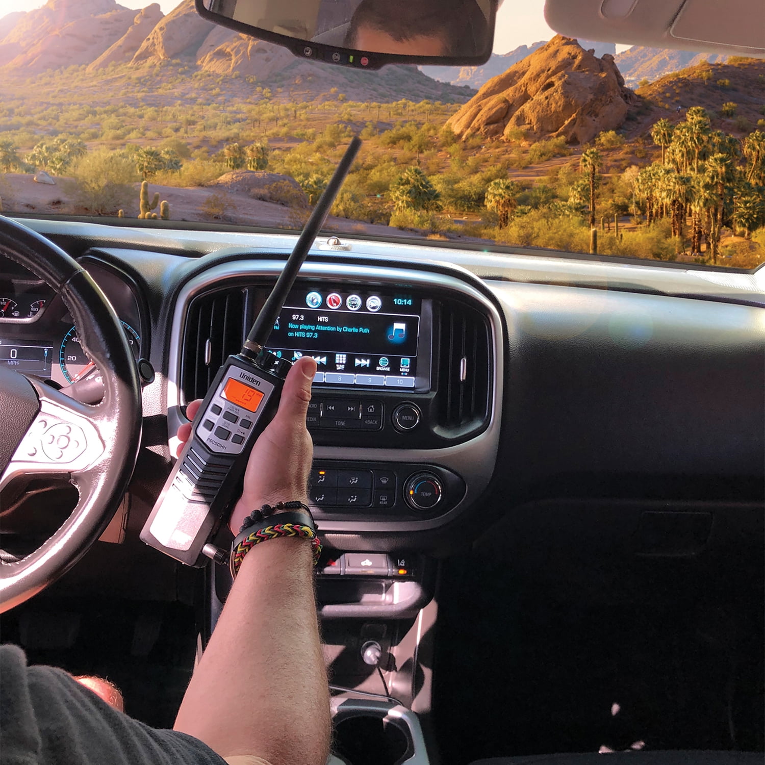 Uniden Pro Series 40-Channel Automatic Gain Control CB Radio with Magnet Mount Antenna, Black, PRO501TK 40-channel access for full coverage of CB stations Handheld design allows for connectivity outside of your vehicle Selectable power options: 4-watt HI or 1-watt LOW 10 NOAA weather channels keep you informed of severe weather Dual Watch feature enables simultaneous monitoring of two channels Instant Channel 9/19 for quick access to emergency channels Automatic noise limiter reduces pulse noise for clearer communication AGC (Automatic Gain Control) ensures a constant sound level Key lock and backlight on/off for user convenience Multiple jacks for external speaker, microphone, power source, and battery charger