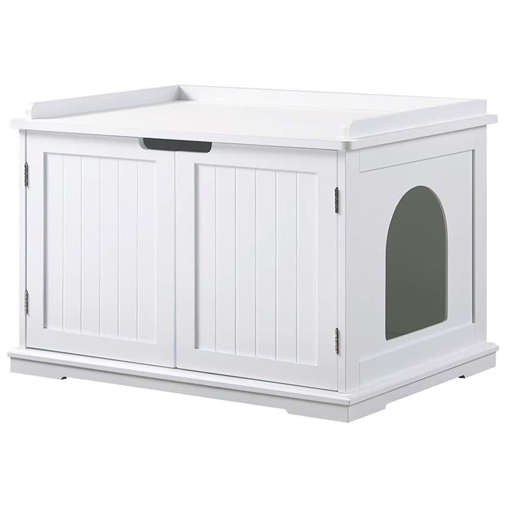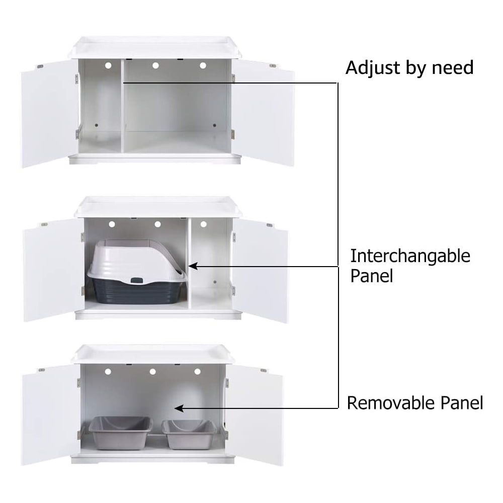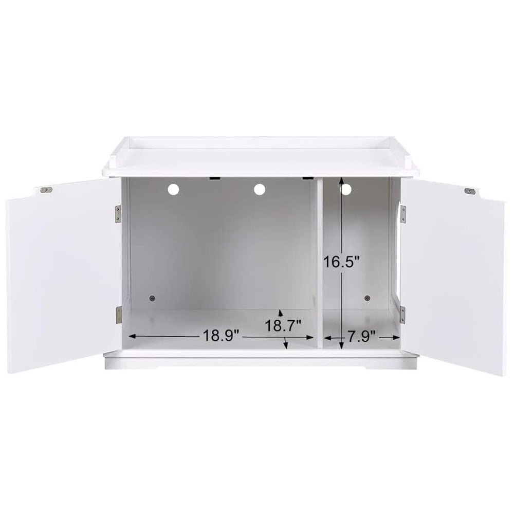 Multi-function Side Table: A nice piece of furniture to place books, potted plants, lamps, little nice things etc. People would not notice a cat litter box lies inside. Magnetic Touch Design: Helps doors to stay in place to avoid too easy pushed open by cats. Entrance for Cats: The entrance measures 8.9 inch width and 10.3 inch height. Easy for cats to enter and exit. Flexible Placement:Put the washroom anywhere you want and nobody knows what’s inside. Good Match:Blends in the room easily with 3 basic colors to choose from. Neat design to easy pair with other furnitures. Easy Assembly:Comes with an assembly instruction book and hardware kits. Size:30 inch Width x 20 inch Depth x 20 inch Height