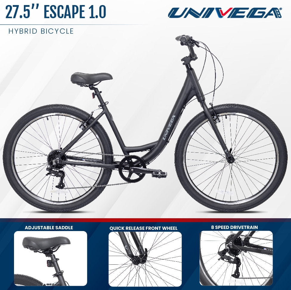 Univega – 27.5″ USA Escape 1.0 Adult Bicycle, Medium Frame, Black