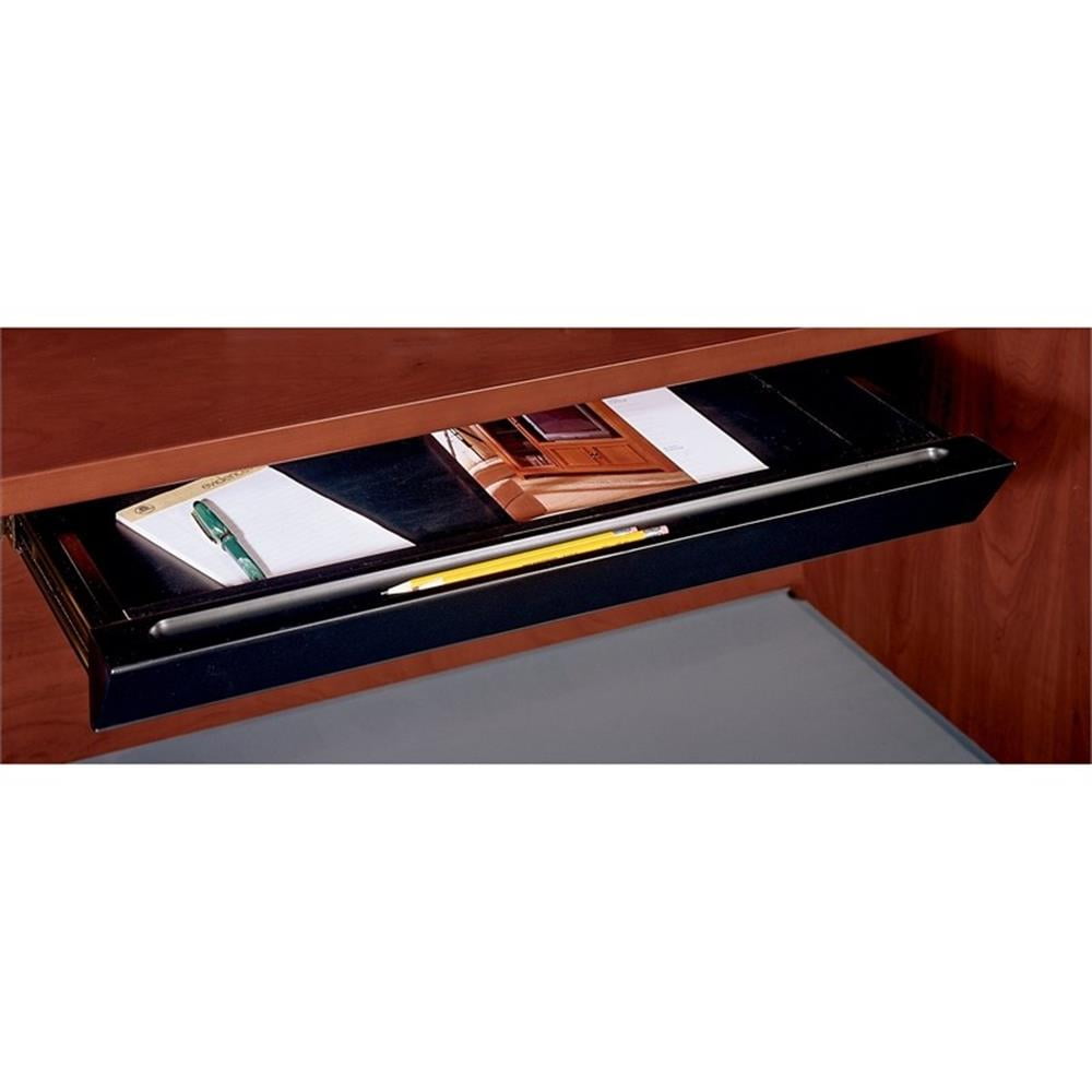 Designed for the details of your everyday, the Bush Business Furniture Pencil Drawer with a Black finish is the perfect option for giving you the quick access storage you need at your desk. Simply mount this drawer to the underside of your desk and it provides a sloped front for reduced visibility with better design appeal. Enjoy the smooth sliding action of our height -adjustable brackets with 3/4″ extension ball bearing slides so you can access your items swiftly. The Bush Business Furniture Pencil Drawer ensures that you have everything where you can find it easily, plus includes routed groove to holds pen and pencils, further reducing clutter. For use on many Bush Business Furniture Collections including Milano2, Quantum, 300 Series, Enterprise, Syndicate, Series A, Series C and Aspen Tables. Meets ANSI/BIFMA standards for safety and performance. Backed by 10 Year Warranty. with . and imported parts.Features : Sloped front for reduced visibility and visual appealRouted groove holds pens and pencils reducing clutterHeight-adjustable brackets with 3/4 extension ball bearing slidesFor use on many BBF lines including Milano2, Quantum, Realize, 300 Series, Enterprise, Syndicate, Aspen Tables, Series A and Series CMeets ANSI/BIFMA standards for safety and performanceCommercial quality backed by 10 year warranty with . and imported partsGSA ApprovedSpecifications : Assembly Required : YesAssembly details : Mount this drawer to the underside of your deskProduct Color : Black