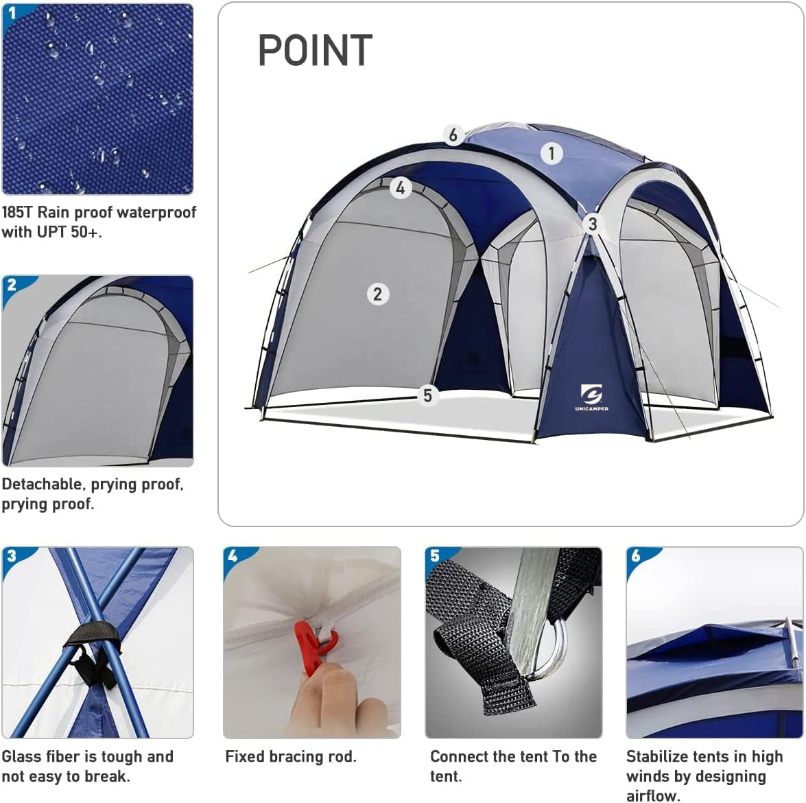 ????【Large Space】: 144 ft range of activity, the UNP beach canopy tent size is 12x12ft, internal height is 90inch, weight is 23lb, sun shelter providing 9-12 people rest and activity space, suitable for families and friends camping together. ????【Advanced Protection】: The UNP beach canopy tent uses UPF 50+ to block harmful ultraviolet rays and prevent sunburn; 185T Polyester Taffeta 800MM coating material makes the tent invisible from the outside to protect privacy. ⚙【Quick Installation and Stabilization】: Just put the stability poles into the ceiling and connect the bottom can be used; High-density stability poles provide high strength and anchors with stable ropes and floor nails so your UNP pop up canopy tent can be used at all times. ????【Great Ventilation】 The UNP camping shelter is designed with hanging cloth around it. You can decide whether to install wall cloth or not. The top is designed with ventilation holes, which can not only make the air in the sun shade circulate better but also keep the gazebo stable through the flow of air. ????【Meet your Needs】Relax on the beach, enjoy a good time with family and friends, or go fishing by the river. This will be your favorite beach canopy tent, which can be installed and used