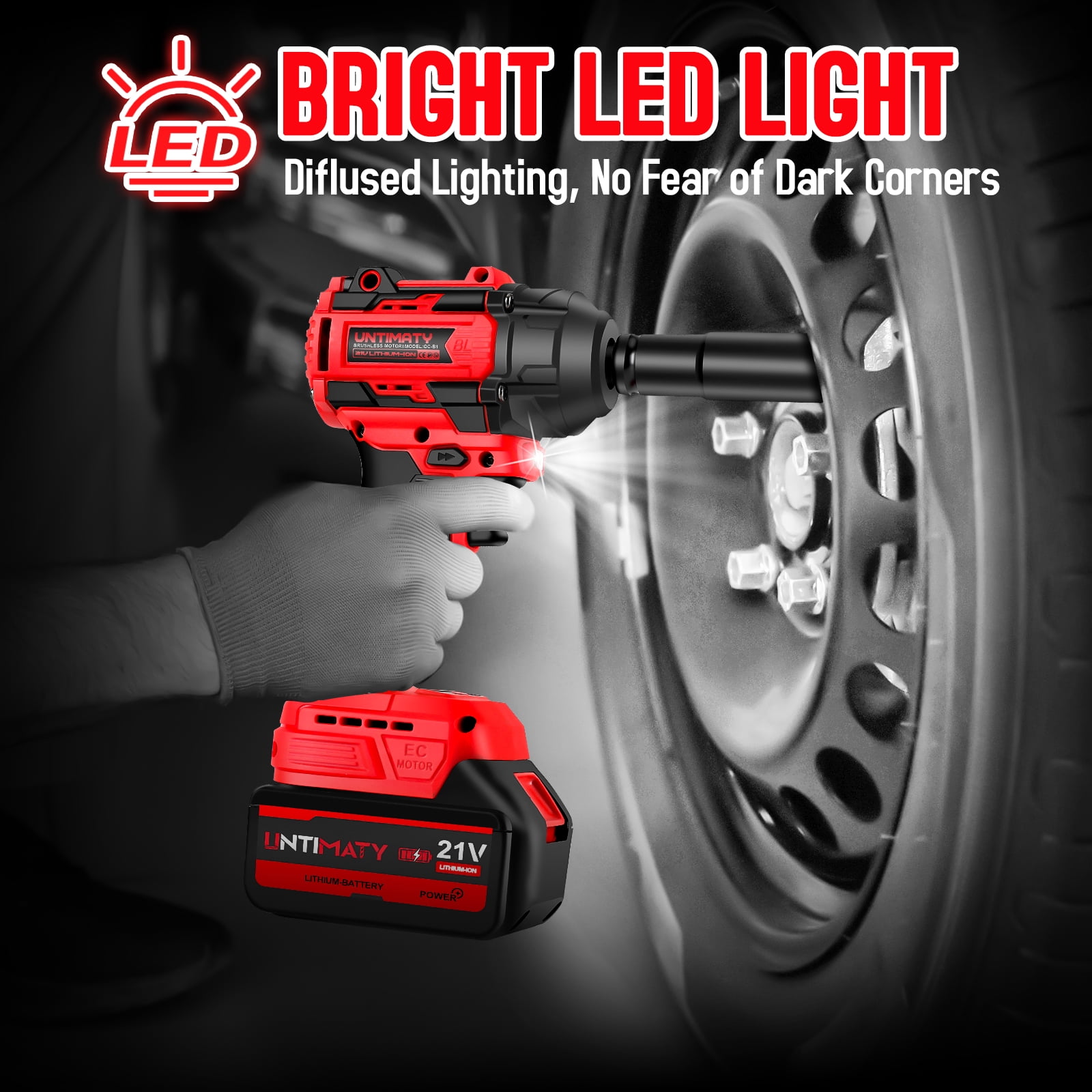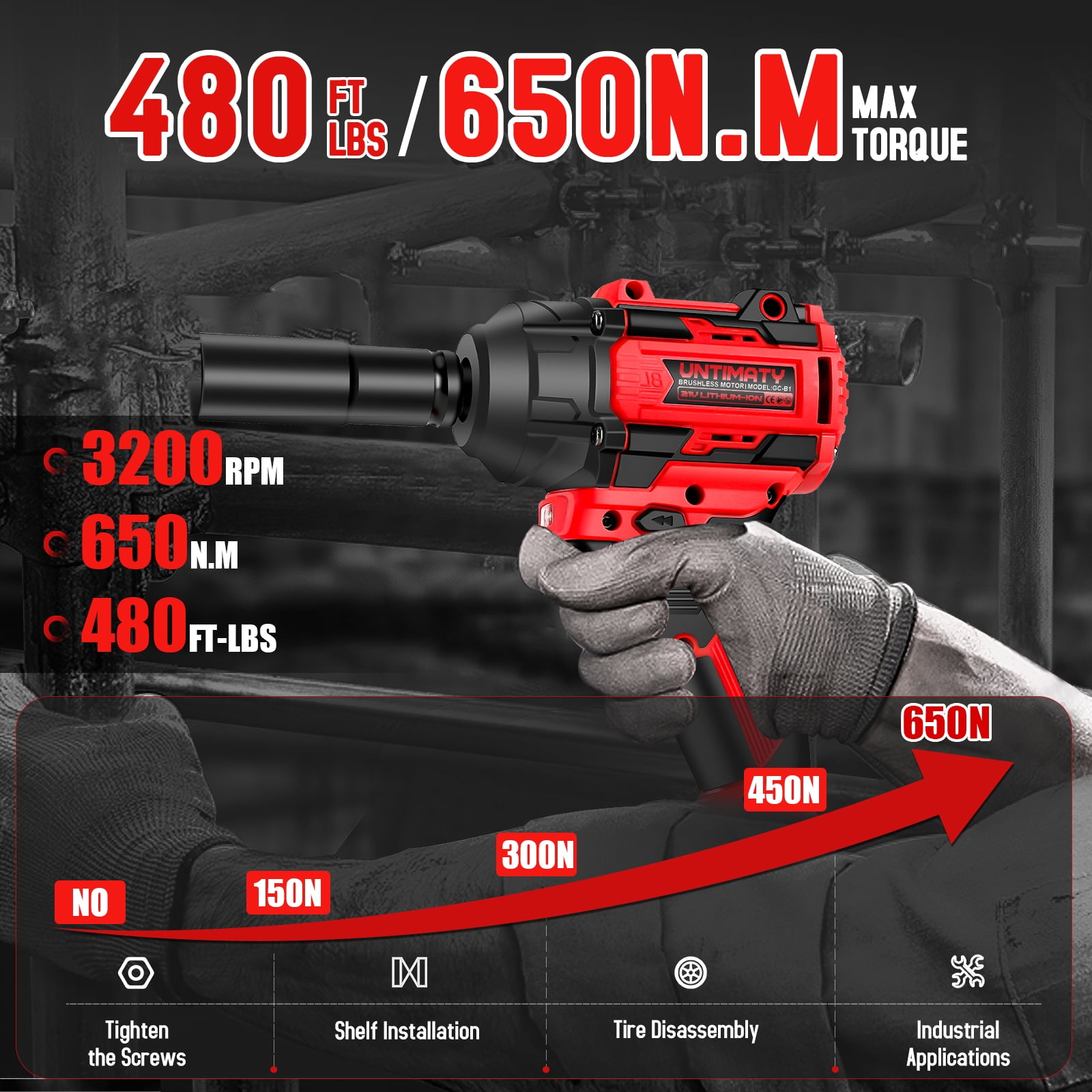 UNTIMATY Upgraded Brushless Impact Wrench 650Nm, Impact Gun 1/2” with 4.0Ah Batteries, 9 Sockets, 8 Drills & 6 Screws