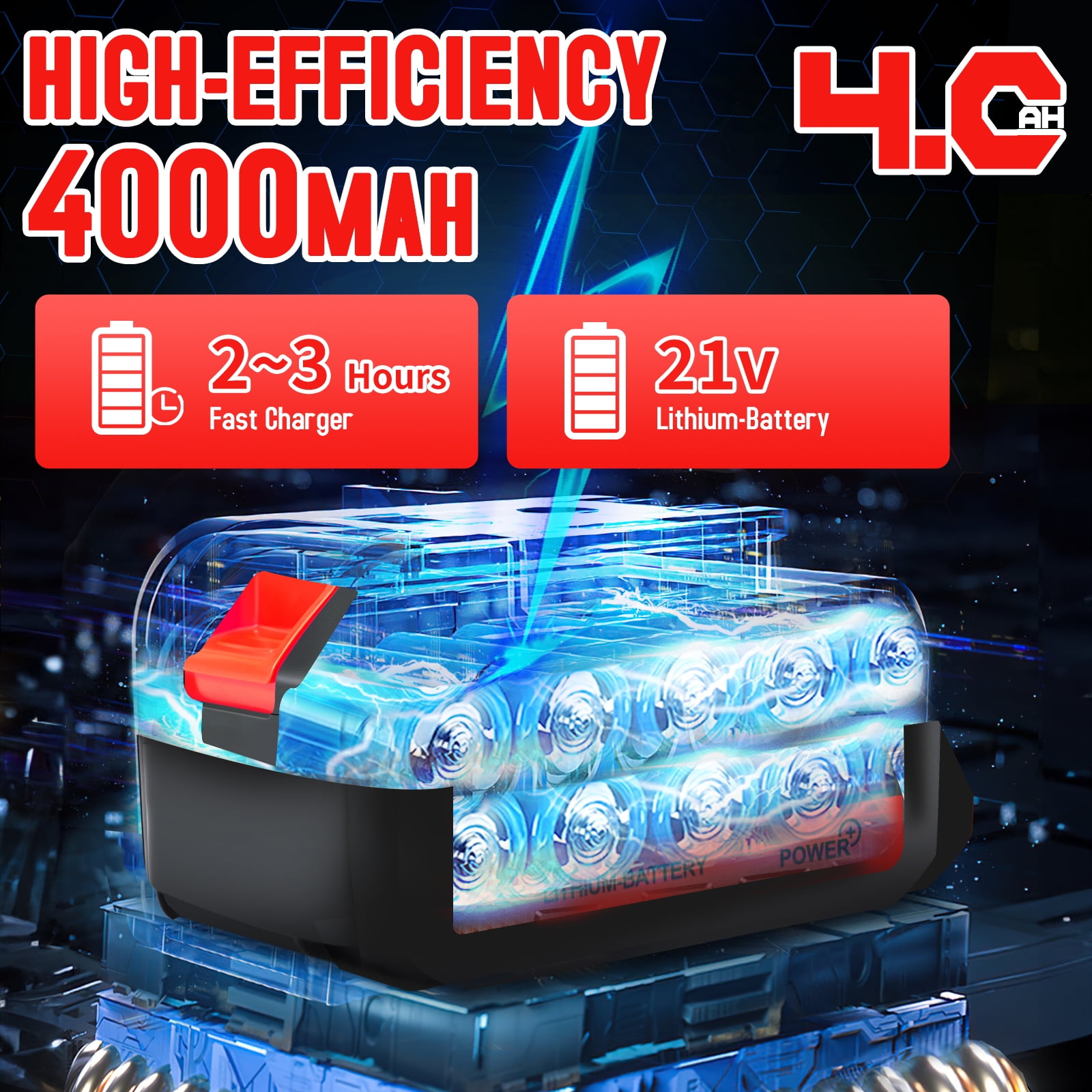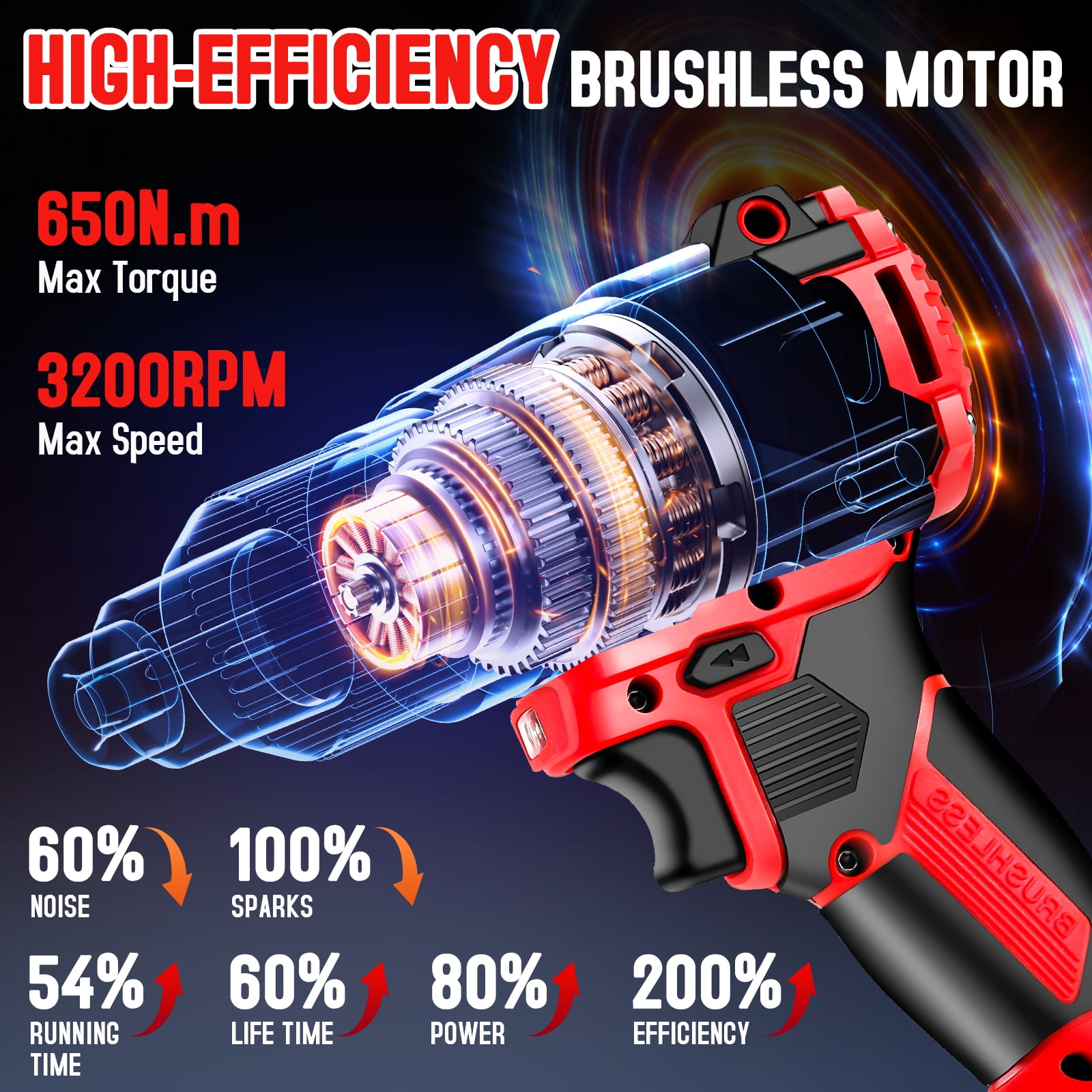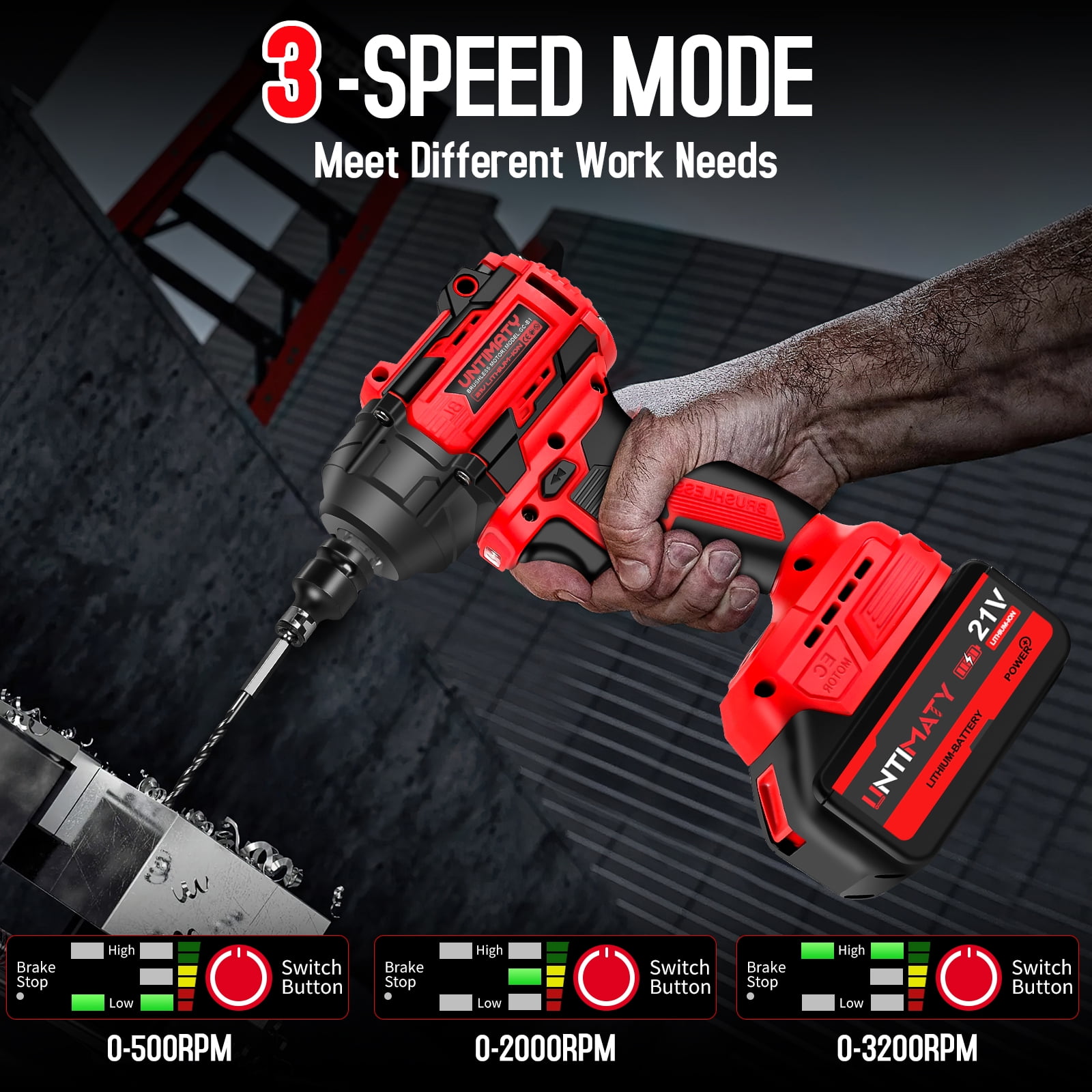 【Powerful Performance】This impact wrench features a robust motor delivering up to 650Nm of torque, ensuring you can easily handle various fastening and loosening tasks. Its strong power and high efficiency allow you to quickly tighten or loosen screws within seconds. 【3-in-1 Multifunctional Impact Wrench】Combining a drill, wrench, and screwdriver in one, it’s not just for tightening or loosening car or motorcycle lug nuts, commercial vehicle bolts, or bolts on doors and walls. It’s also suitable for scaffolding installation, garage use, furniture assembly, lawn equipment, and other DIY projects. 【3-Speed Adjustable Control】The trigger offers three adjustable speed controls. The further you push the trigger, the faster the anvil rotates. The bottom switch of this electric impact wrench allows you to set three different speeds to meet various work requirements. 【Dual Direction and Automatic Stop Mode】The reverse auto-stop feature ensures that nuts do not fall off easily when being removed. With this function enabled, simply hold the trigger, and the square drive will rotate a few turns and then automatically stop. 【 4.0Ah Battery & Fast Charger 】 The electric impact wrench comes with a 4.0Ah lithium-ion battery, providing longer usage time. The power indicator light reminds you of the remaining battery charge, and the included fast charger can fully charge the battery in just 2-3 hours.