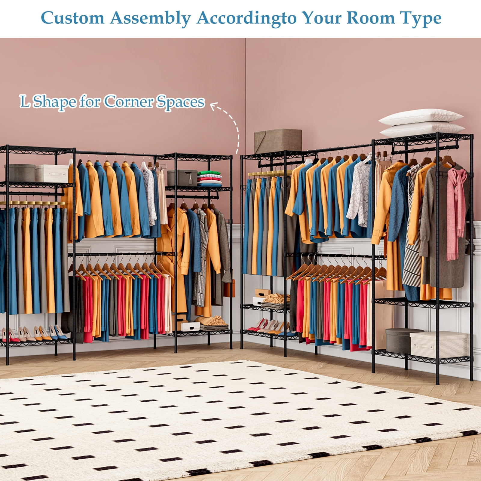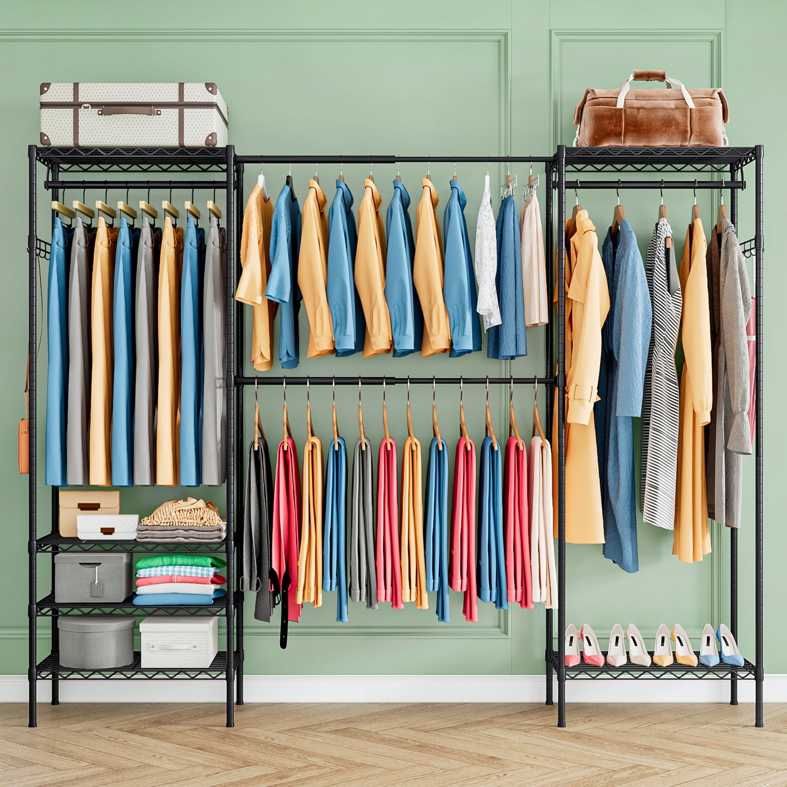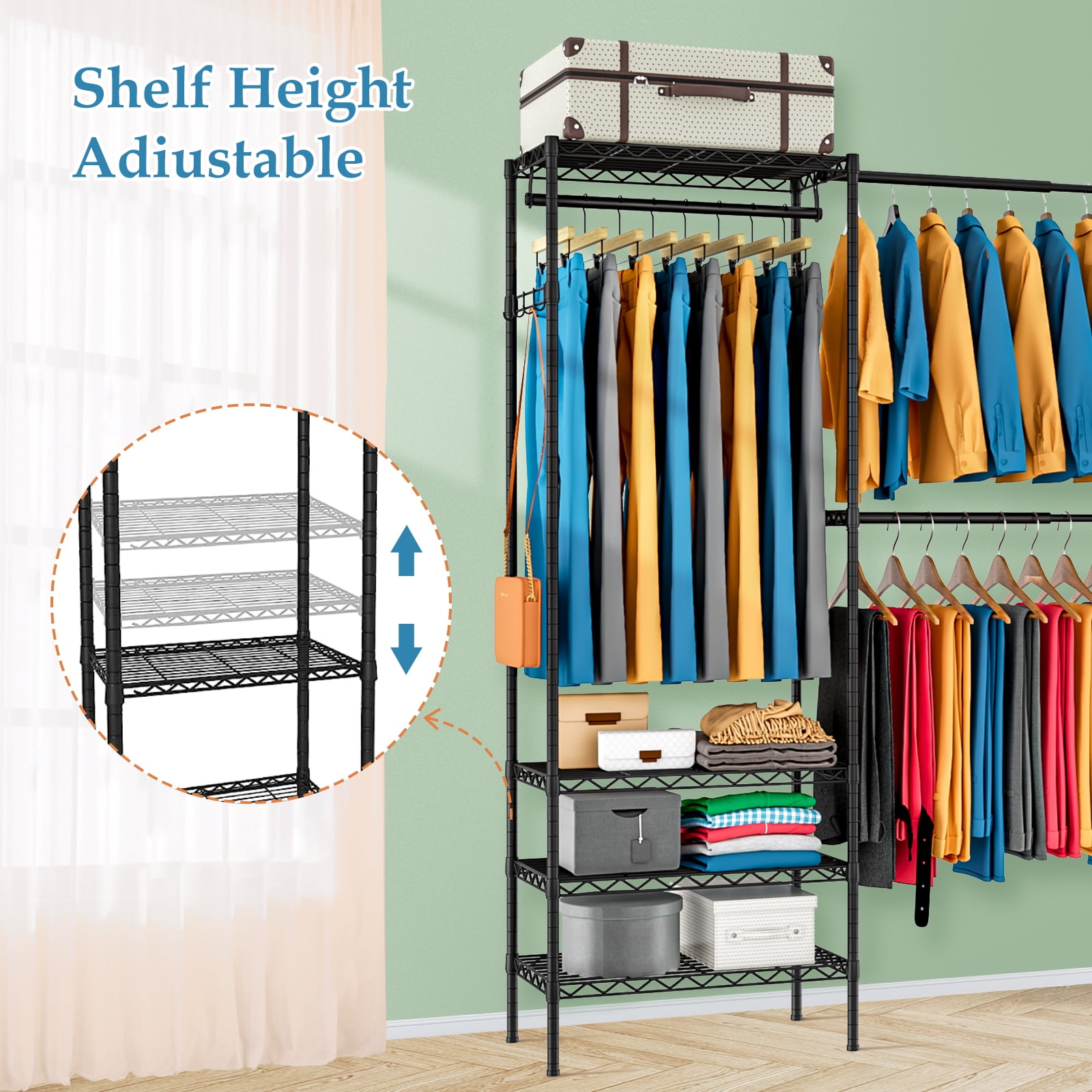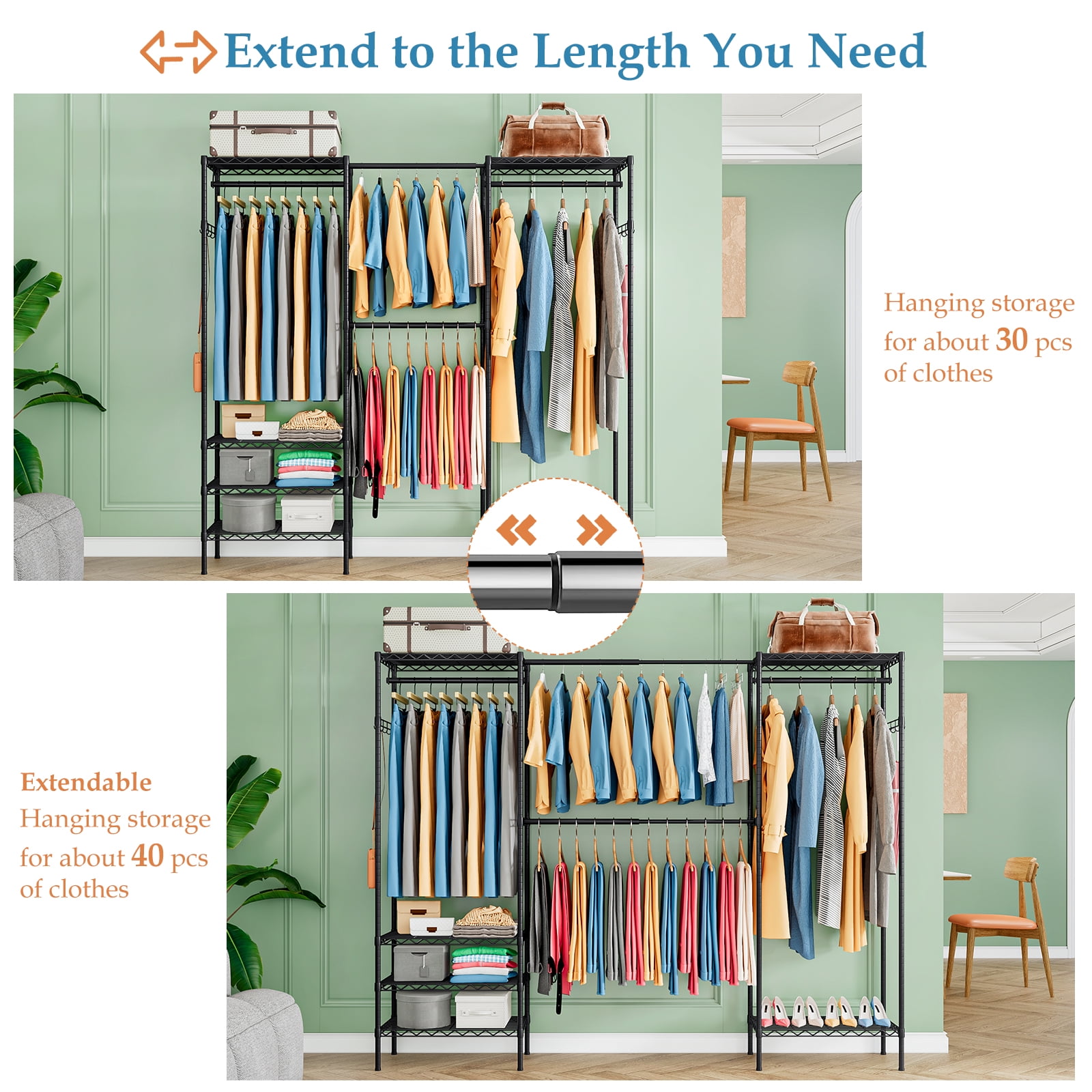 Untyo Expandable Clothing Racks Heavy Duty Garment Rack for Hanging Clothes Portable Freestanding Adjustable Closet Rack with Shelves Metal Clothes Rack