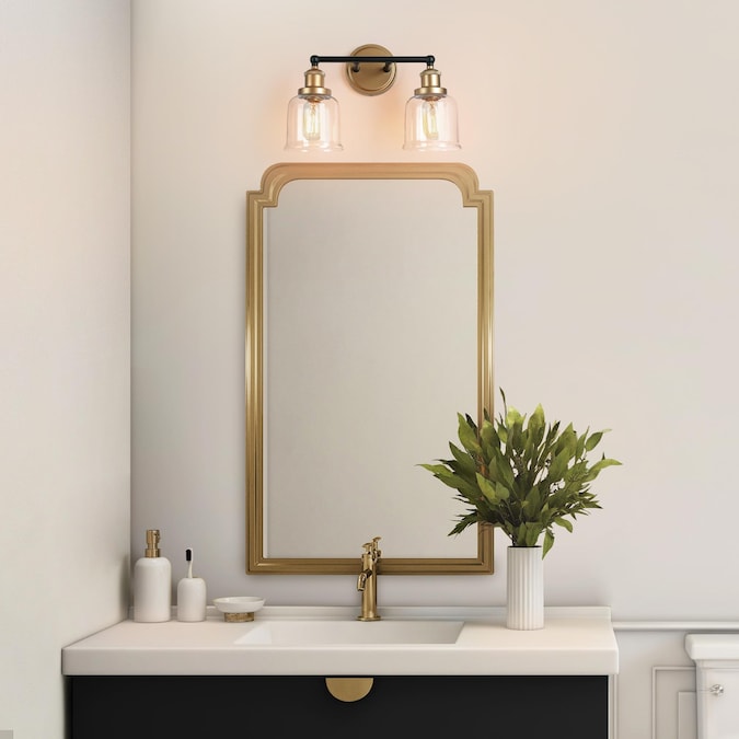 - Matte black and gold bathroom vanity light from Uolfin is transitional modern