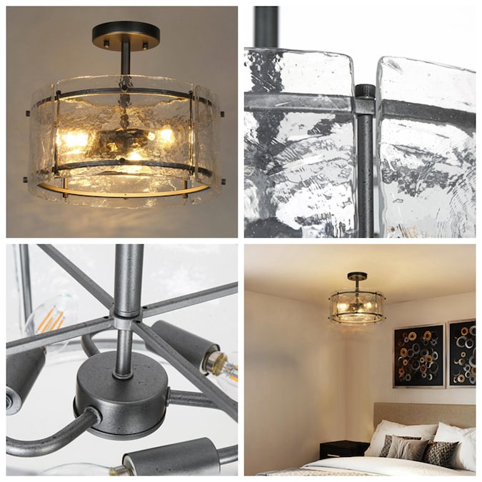 The 3-Light distressed gray semi-flush ceiling light by Uolfin Lighting combines clear water glass and rustic charm, this Kitchen Island Flush Mount complements a myriad of styles from modern farmhouses and country lodges to classic colonial and coastal cottages. Whether you’re outfitting a beach house, want a coastal beach-themed living room, or are searching for fun ceiling light ideas to add to a dining room, bedroom, or children’s room, this hallway ceiling light is a versatile choice. Inspired by lighthouses and other nautical elements, this glass semi-flush ceiling light manages to tie into themes that go beyond coastal. The hand-applied finishes may have subtle variations, making each fixture unique.