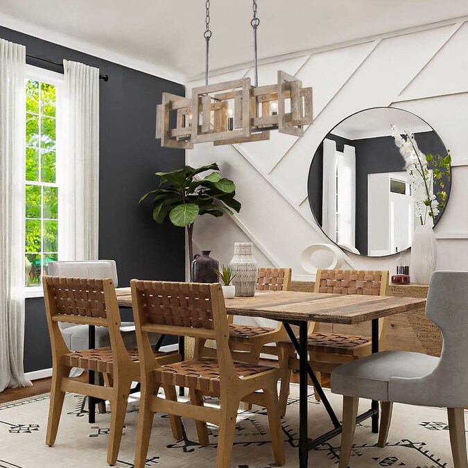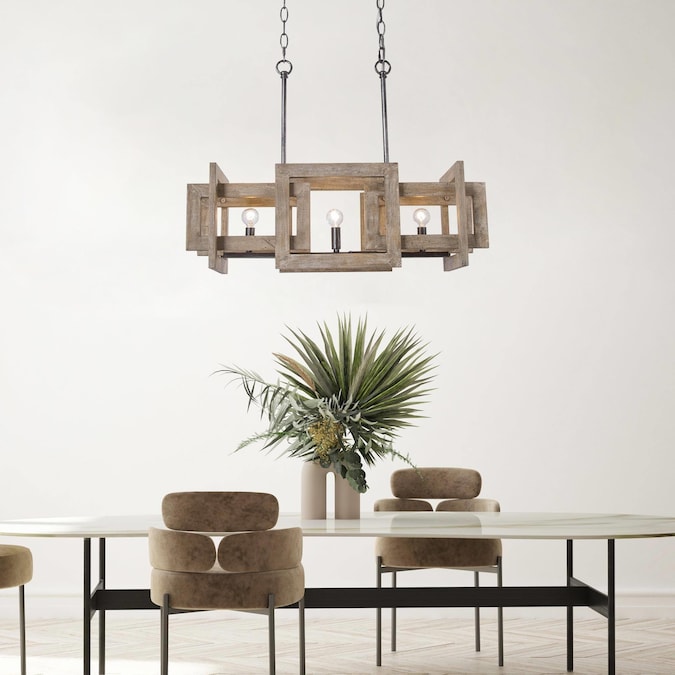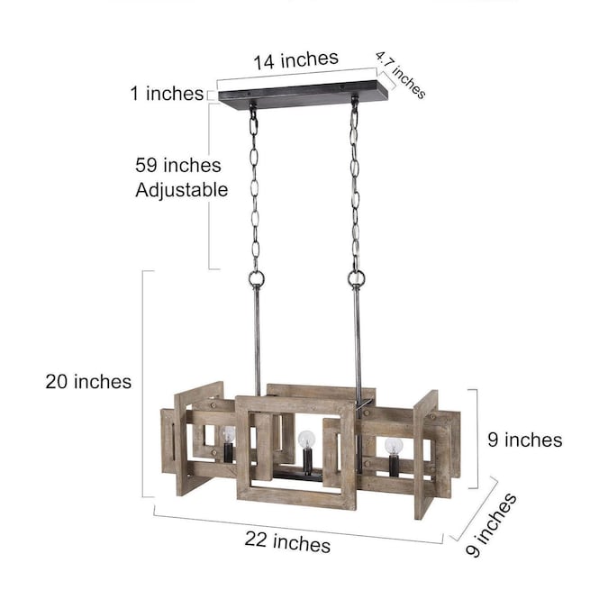 This 3-Light rectangle wooden kitchen island chandelier from the Queint collection features natural wood with an antique black finish, and the linear island pendant with a rectangular frame consisting of various square motifs boasts a farmhouse and modern style. The wood rectangle shape with linear covers the three lights pointing up at the center of this fixture. This hand-made wood chandelier has an engaging geometric structure, stitched together by two different geometric shapes. It combines wood materials with spatial solid geometric elements. Solid wood and 100% handmade linear chandelier for every valued customer. Whether for use above kitchen islands, pool table rec rooms, living room, dining room, or any other interior space, this farmhouse-style chandelier will surely add the rustic feel you’ve been searching for.