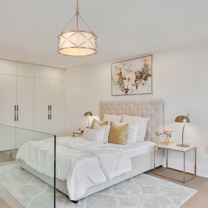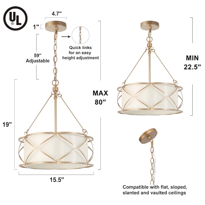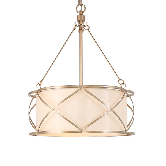 The 3-Light gold round chandelier is a futuristic fixture designed to create a statement in your space with a silk shade and cutting-edge finishes. An elegant and understated addition to the dining room chandelier. This off-white linen drum chandelier adds subtle sophistication to a bedroom, dining room, living room, or office. Transitional fabric chandelier installs easily with a 59-in hanging chain allowing you to create the ideal dependent length, even in a room with high ceilings. The traditional drum chandelier can meet your needs for the kitchen, bedroom, living room, and porch used to add a farmhouse, stylish, coastal, unified aesthetic to your home.
