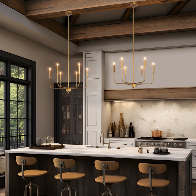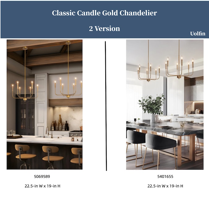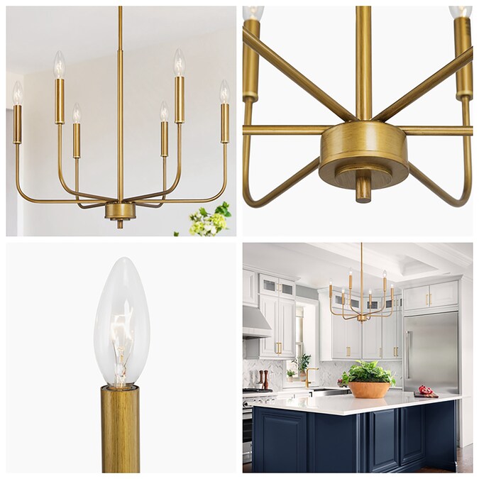 This 6-Light farmhouse mondern gold chandelier by Uolfin Lighting has a dark gold texture finish, full of a rustic feel. A Gold Chandelier Light Fixture with a candlestick is one of the typical transitional chandeliers on . The dining room light fixture’s graceful, seamless curvature and elongated tubular arms lend fluidity and modern appeal to this classic minimalist silhouette. The aged gold chandelier showcases minimalistic splendor crafted to achieve ultimate contemporary bliss with subtle details that draw the eye. The rustic metal chandelier body is bent upward by 6 branches to form a candle-shaped lamp holder. The minimalist foyer chandelier’s arm can be rotated to adjust the angle you like, and the antique gold finish shows the taste of the homeowner. This kitchen island chandelier installs easily with (1) 16-in and (4) 10-in rods allowing you to create the ideal hanging length, even in a room with high ceilings. If your bedroom, kitchen, living room, dining room, stairwell, entrance hall, or guest room lacks such a lamp, this vintage dining room chandelier will be a perfect choice.