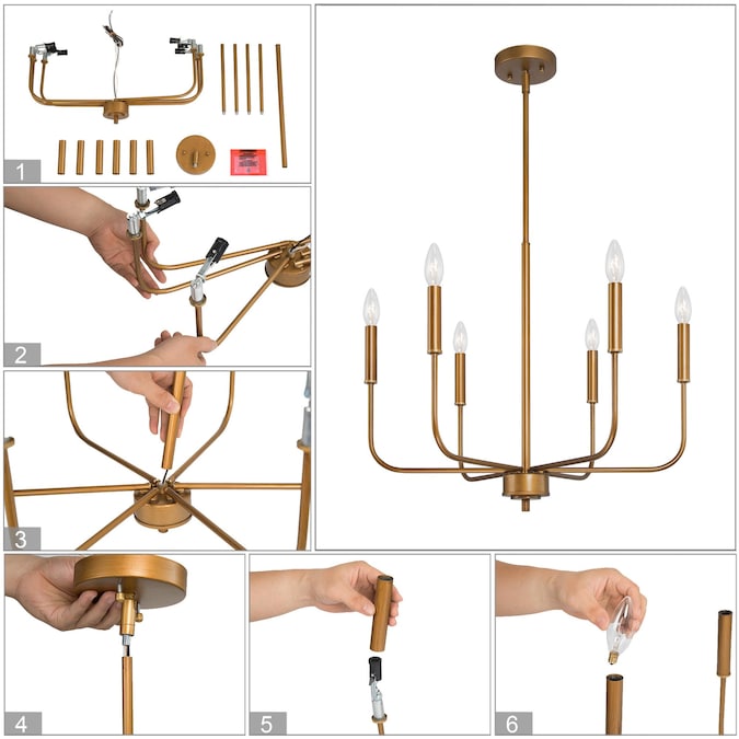 - Requires (6) max 40-Watt E12/candelabra base bulbs (not included)