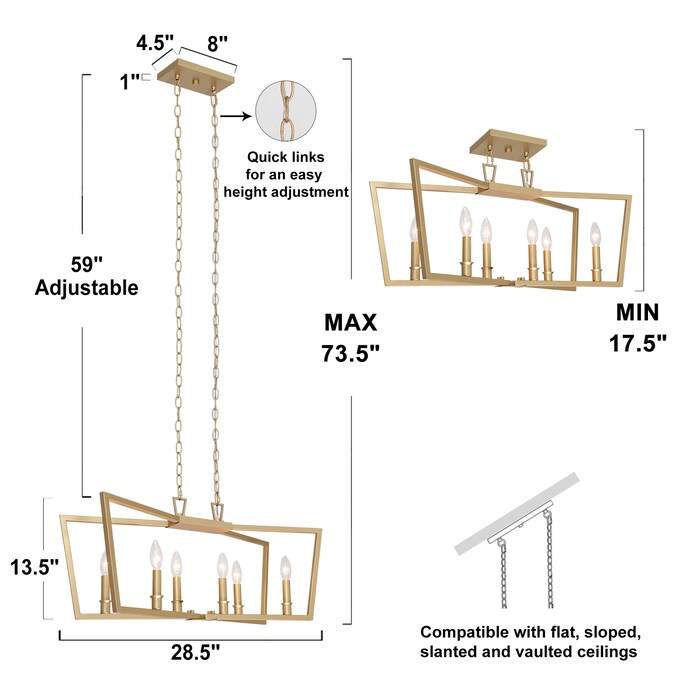 - With a 59-in adjustable chain for ideal height (Max: 73.5-in, Min: 17.5-in)