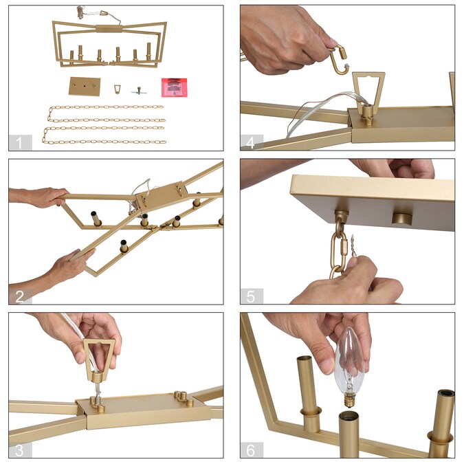 - Requires (6) max 40-watt E12 candelabra-based bulbs (not included)