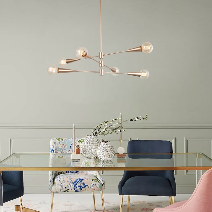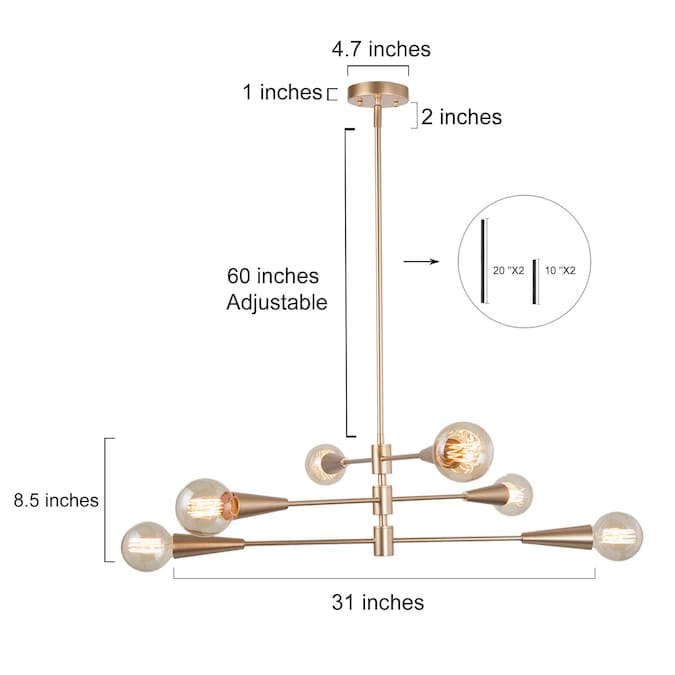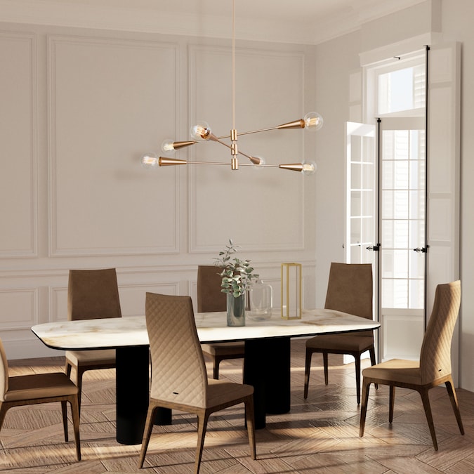 A seamless mixture of classic sophistication and modern clout, our Gold Sputnik Chandelier pendant light provides a striking and chic look. The 6-Light Classic Modern Chandelier by Uolfin Lighting features a straight-down pole and a sphere center surrounded by three slender arms. These pivoting arms can be altered as seen fit, adding to the asymmetric aesthetics in design. Accommodating E26-base bulbs(not included). This Traditional Chandelier Dining Room offers ample brightness to your residence. For versatility, you could install a dimmer switch and dimmable bulbs (both not included) to this Foyer Chandelier vintage and enjoy the lighting at the finest as you desire. This Dining Room Chandelier is good at illuminating your living room, dining room, breakfast nook, foyer, and hall while providing an unusual splendid silhouette. The kitchen island chandelier for the kitchen is DIY-friendly, the angle of the pole can be adjusted according to different decoration styles and your preferences, providing you with more possibilities for house lighting