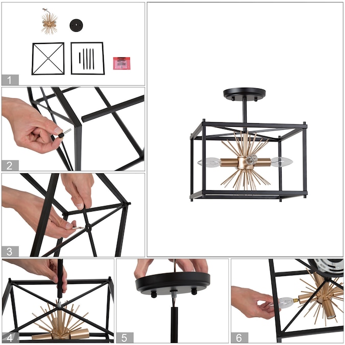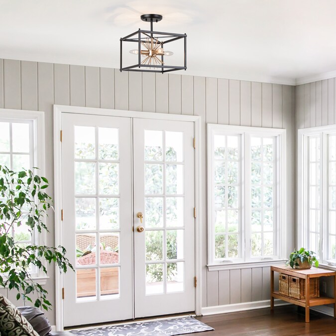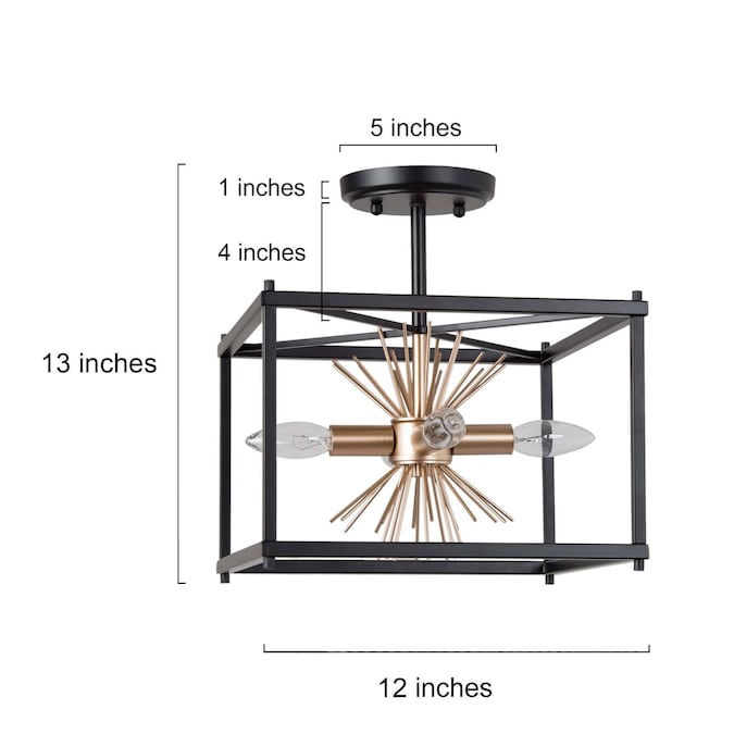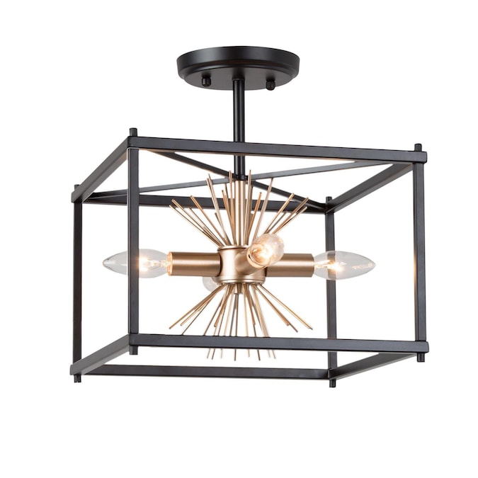 The 4-Light modern black and gold kitchen ceiling light by Uolfin Lighting features an innovative design to modernize your house decoration. Sophisticated and unique, this sputnik square foyer semi-flush mount light has an undeniable magnetic presence. The starburst ceiling light is caged in a contrasting Matte Black box adding a heightened sense of drama, and is ideal for the bedroom, kitchen, dining room, entryway, and any low ceiling. The transitional cage flush mount lightly crafted of sturdy premium material ensures good quality and long-lasting performance. The whole simple geometric cage construction is convenient for bulb replacement and cleaning, as well as provides uncovered bright lighting for your space.