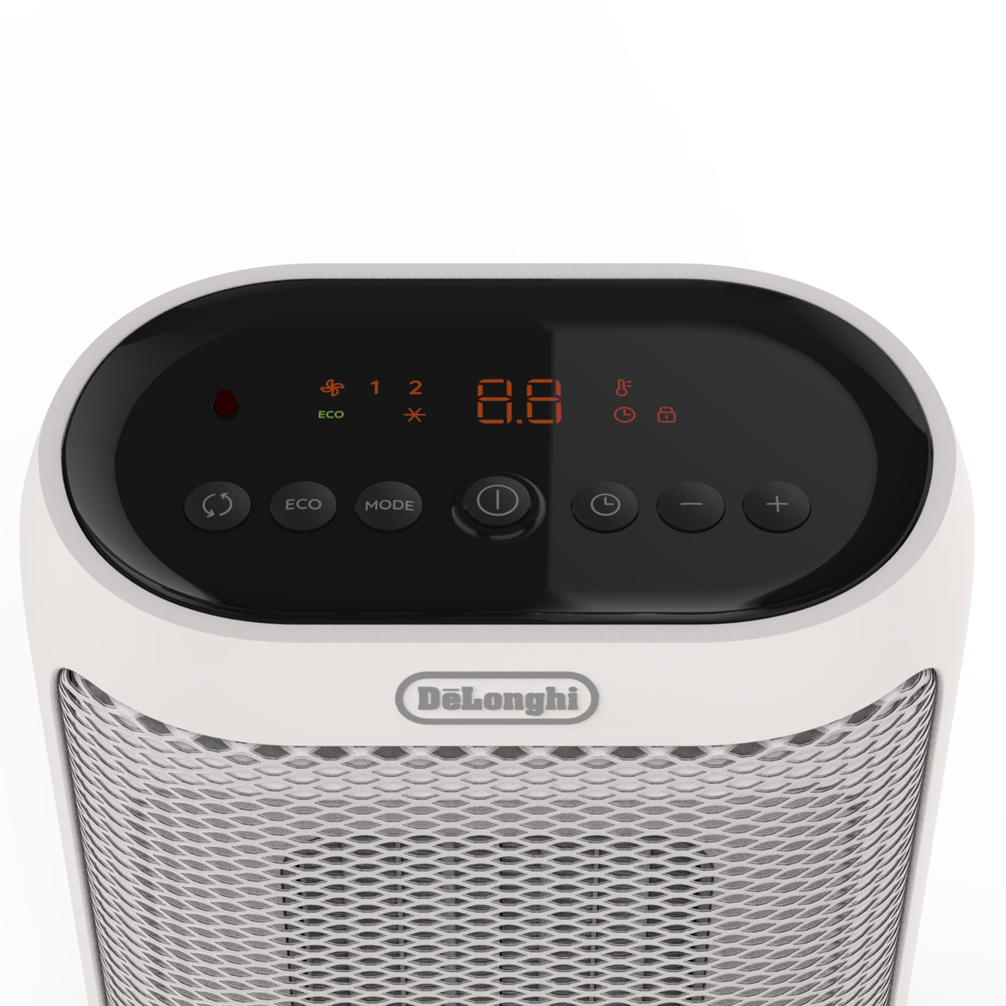 Indulge in comfort without sacrificing style with the 1500-watt De’Longhi HFX41K15L, featuring an adjustable thermostat, 24-hour timer, cool touch handle, and fan function for year-round use. Best for small spaces and personal comfort, this lightweight and portable heater delivers fast, even and wide-range heat. Maximize energy efficiency with our ECO function, which automatically adjusts heat and power. Built-in safety features include child lock, two-stage overheat protection with a thermal shut-off, an internal tip-over switch, and an Anti-Freeze setting that helps prevent frozen pipes.