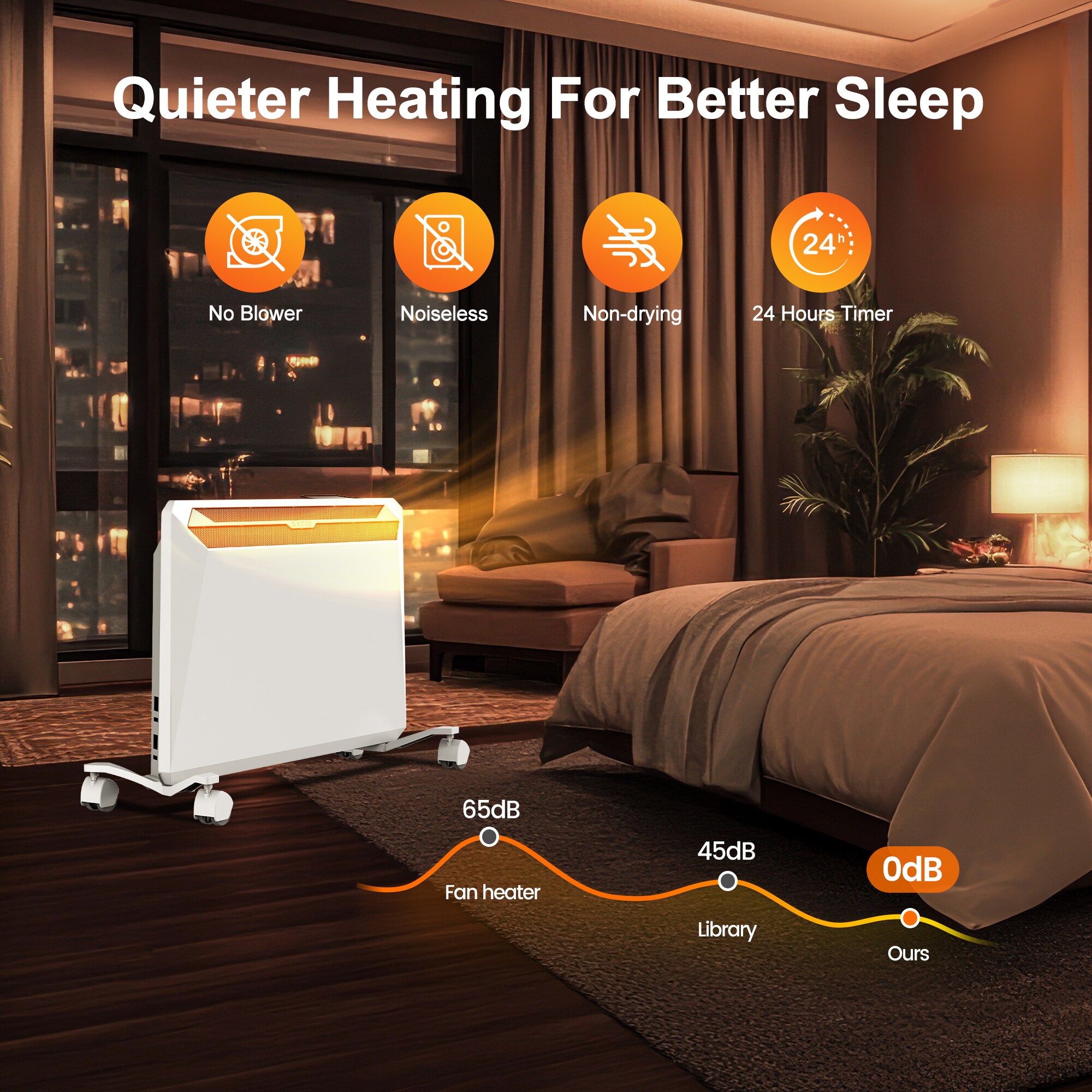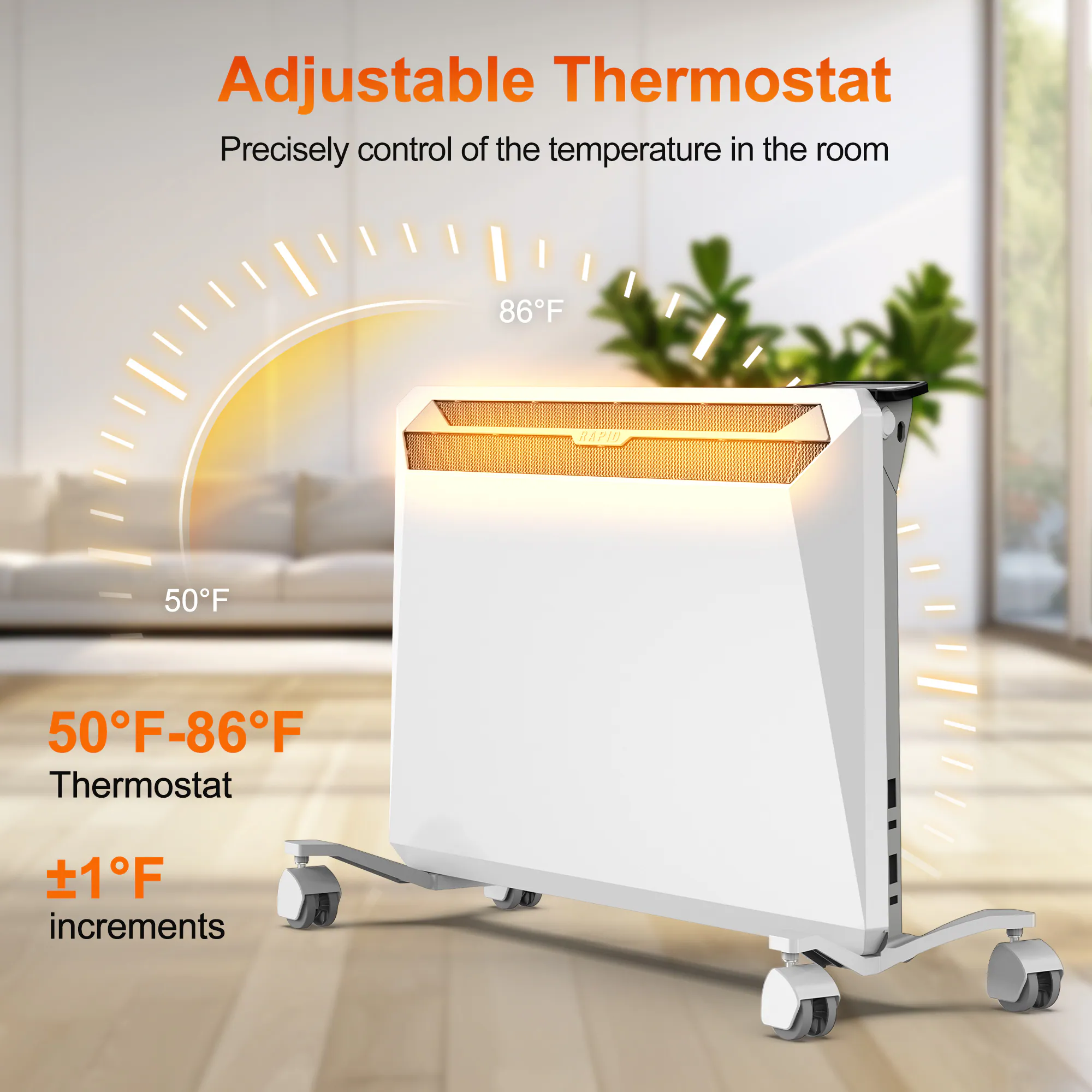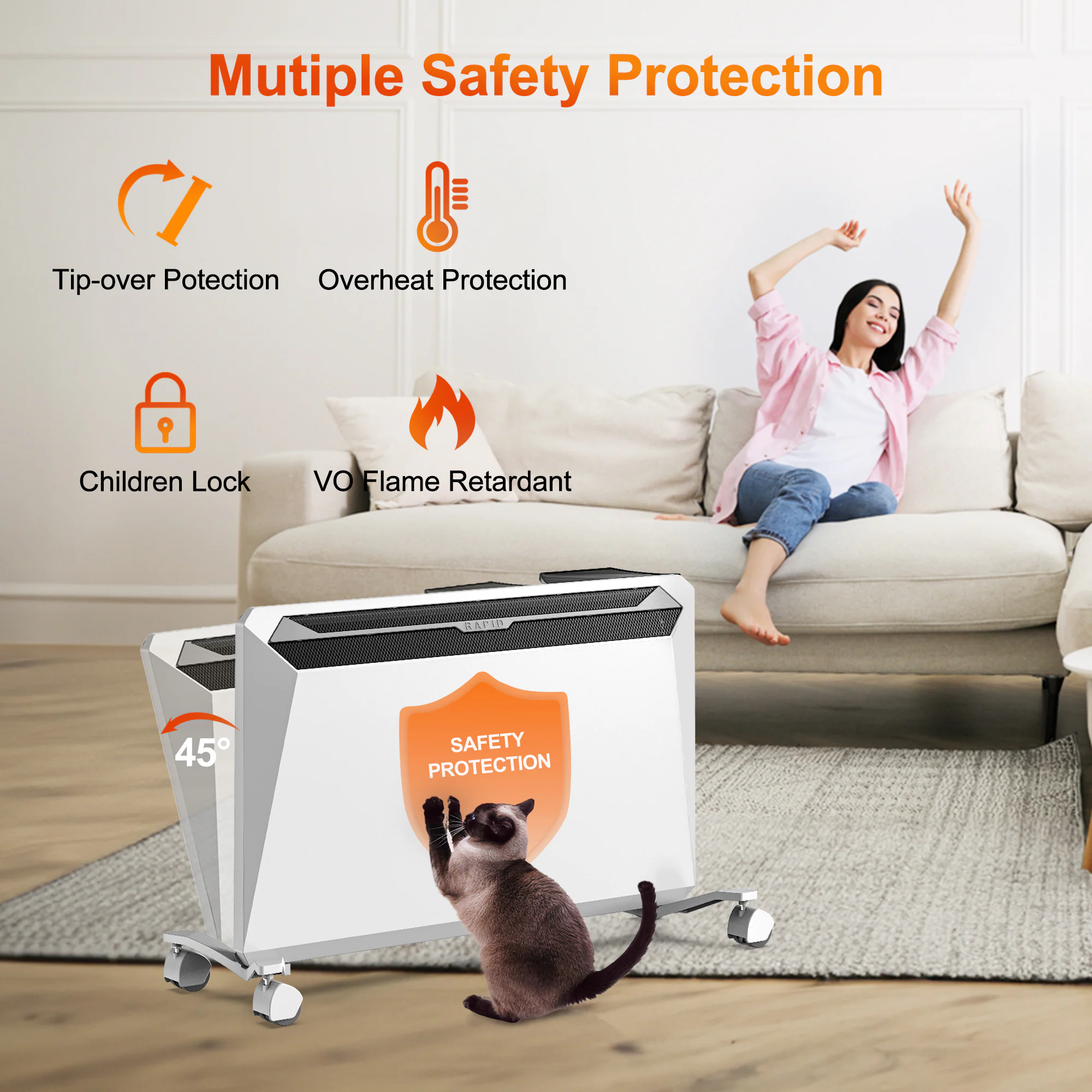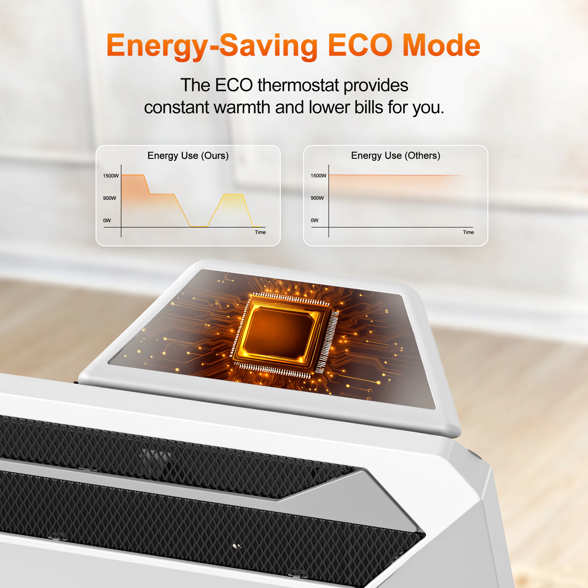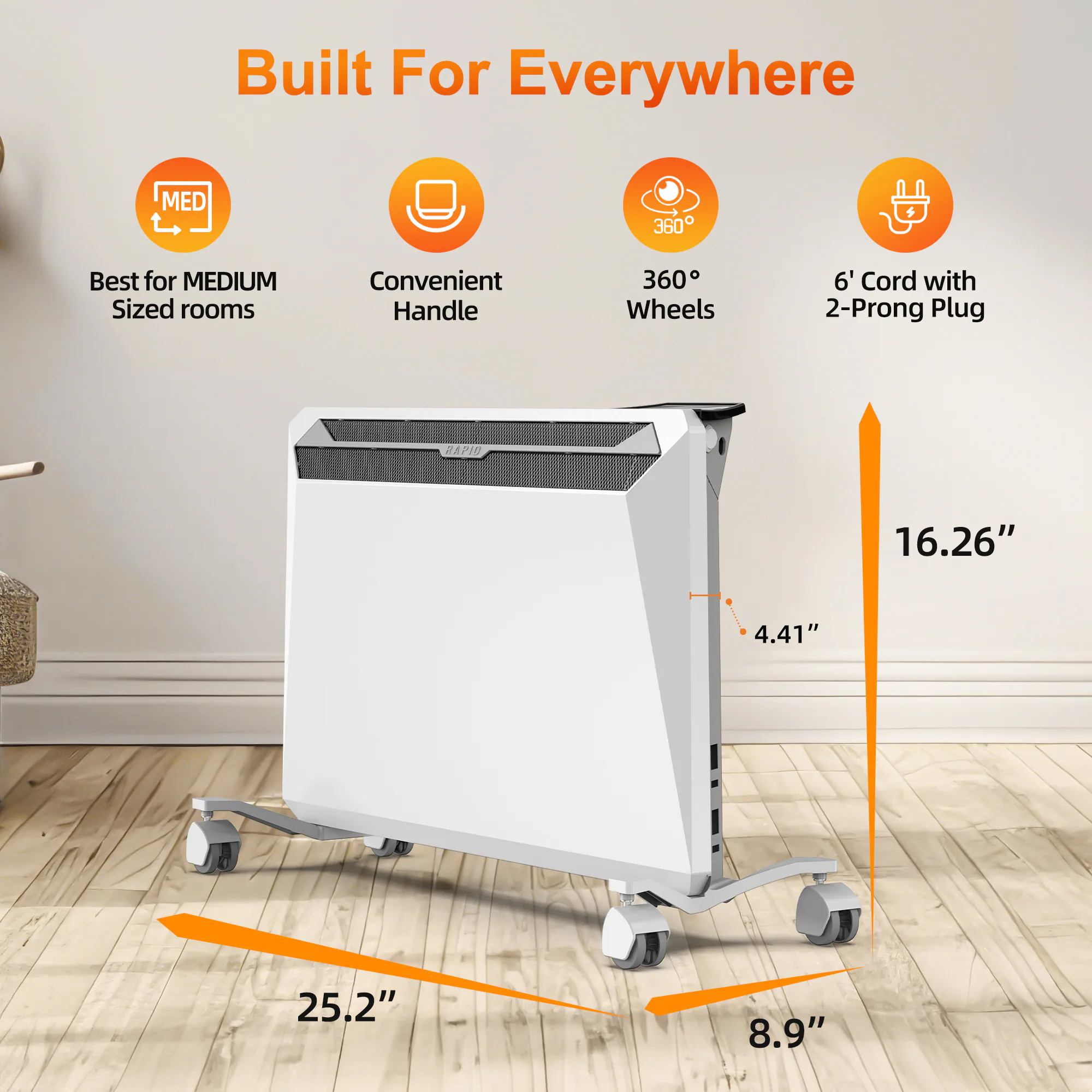This heater has an exclusive patented Hedgehog heating element built in, made of aviation aluminum, which converts 99% of electrical energy into heat output. The heating element has a service life of more than 20 years under normal conditions. Suitable for heating areas up to 230 square feet (15×15) as a primary device and over 500 square feet as a secondary device. Perfect for a variety of scenarios such as bedrooms, personal offices, commercial, hotel rooms, greenhouses, basements and apartment buildings.