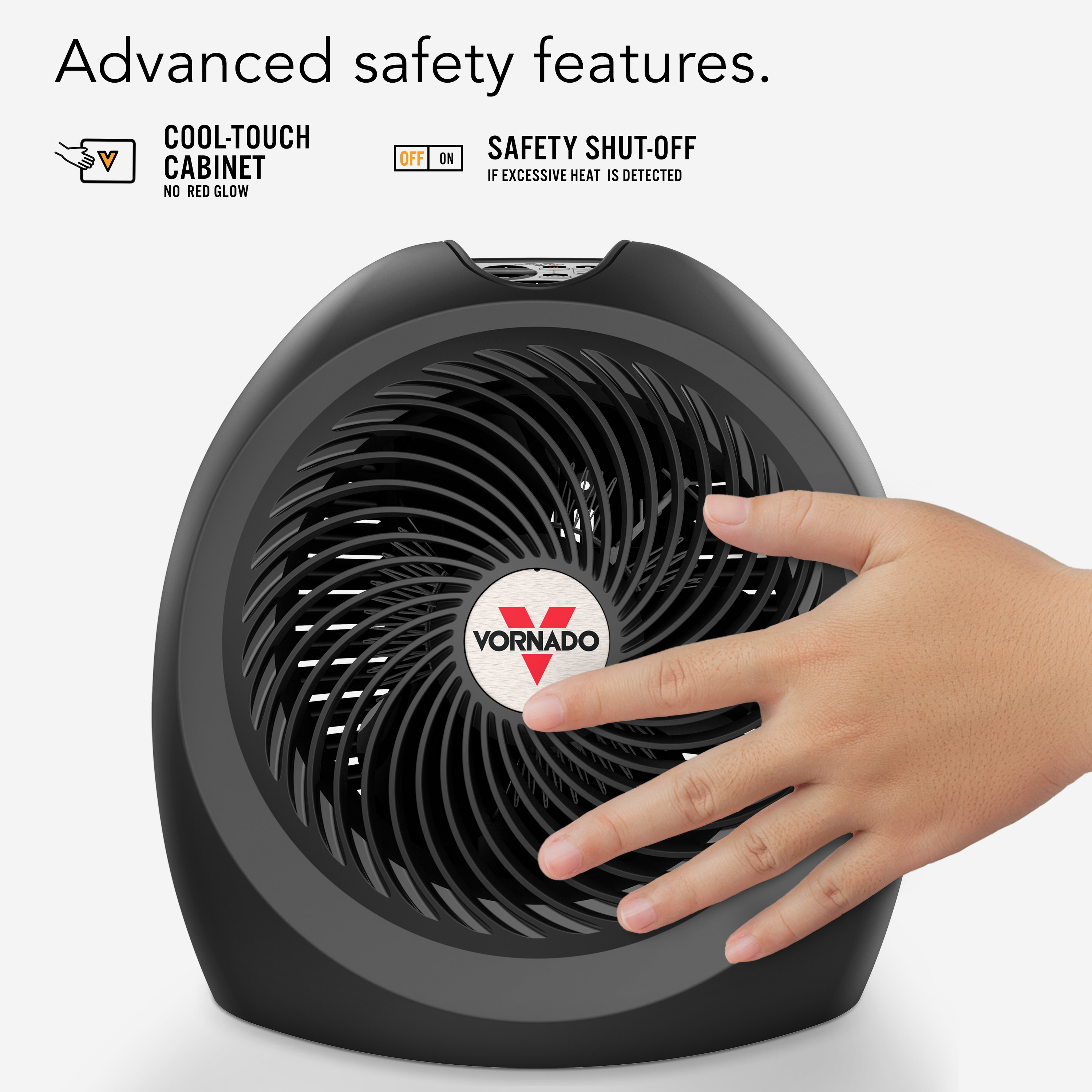 Using electronic auto climate temperature control, the AVH2 Advanced eliminates annoying hot and cold cycles, maintaining the set temperature while using less energy. The AVH2 Advanced incorporates Vornado’s signature vortex technology to fully circulate the warm air throughout the room, creating a uniform temperature throughout. User-friendly push-button controls and a timer, along with a digital screen, put all of the heater’s functions at your fingertips. And a cool-touch case and overheat protection offer peace of mind