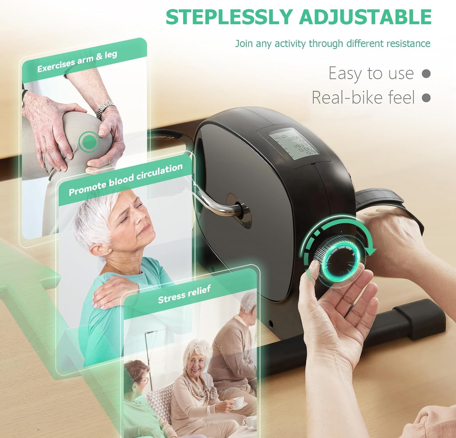 UPGO Mini Exercise Bike, Under Desk Bike Pedal Exerciser Portable Foot Cycle Arm & Leg Peddler Machine with LCD Screen Displays