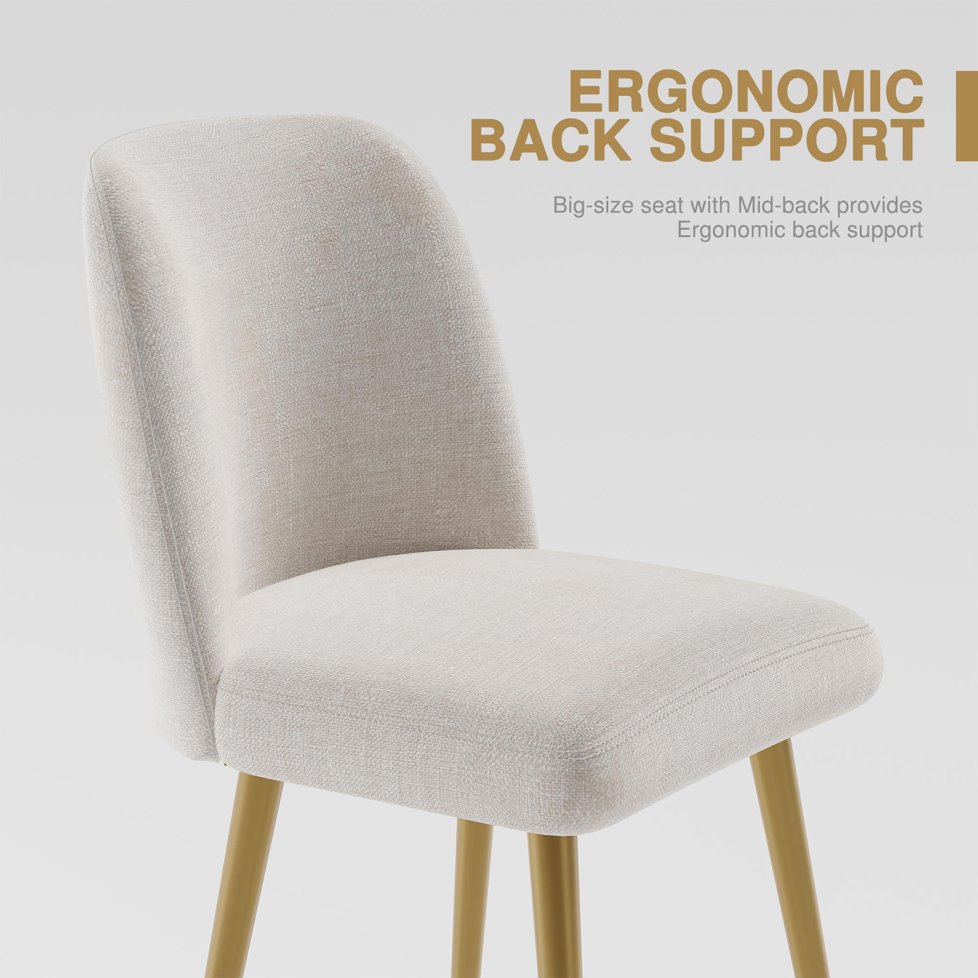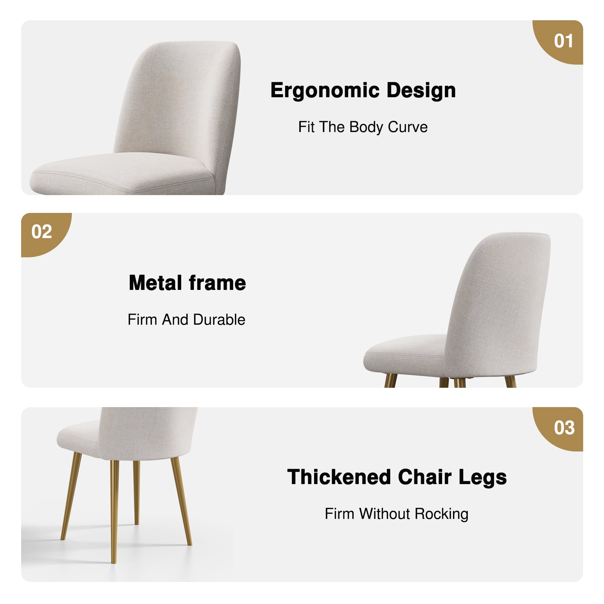 Upholstered Side Chairs Dining Chairs Modern Dining Living Room Kitchen Chairs, Beige with Gold Leg (Set of 2)