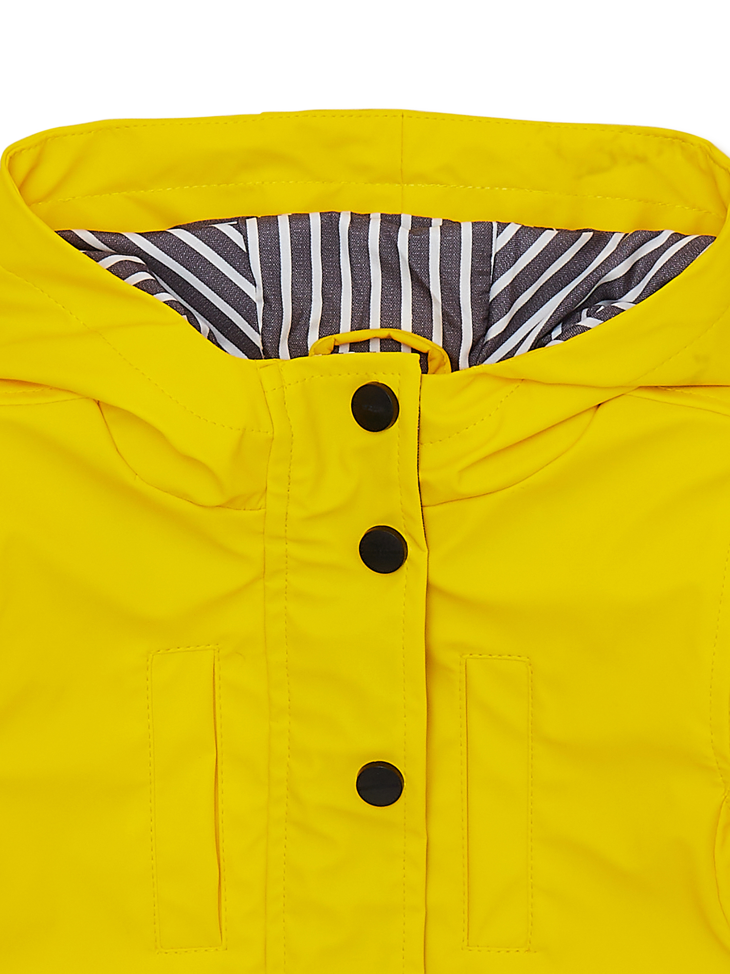 Rain, rain, go away! But just in case, she’s covered in Urban Republic’s Matte Vinyl Rain Jacket. This rain coat for baby or toddler girls is perfect for rainy days to and from day care, school or weekend outings when clouds and drizzly drops arrive. Casual and comfortable to help keep her cute wardrobe dry, this rain jacket is a great addition to her outerwear.