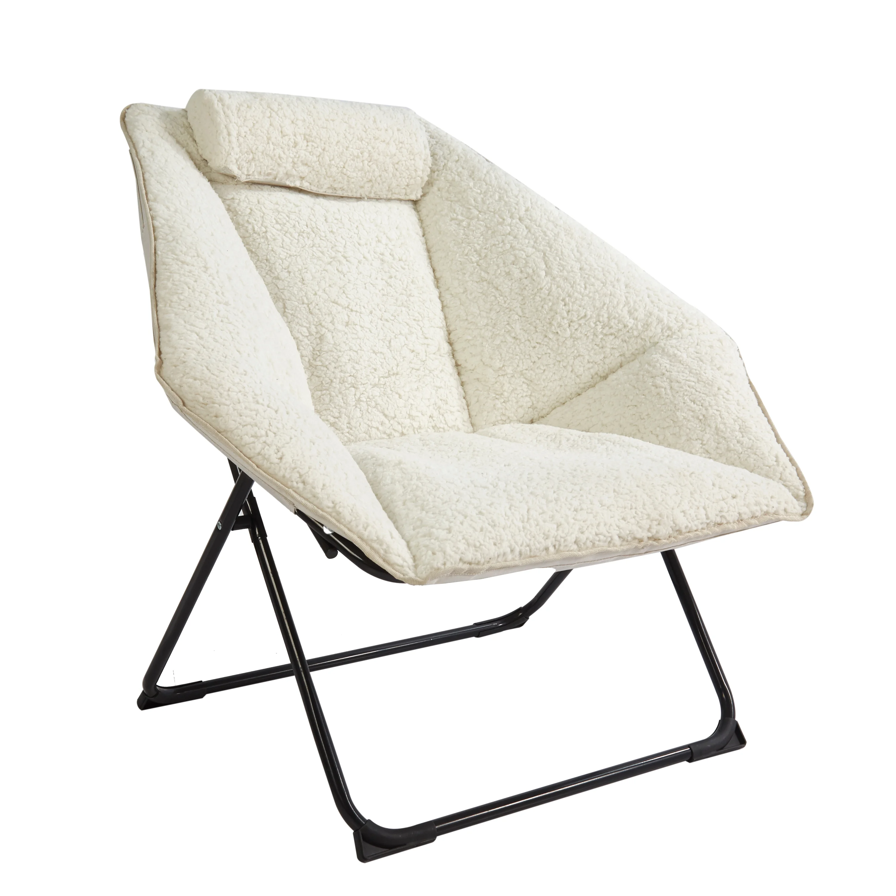 Folds for easy storage Weight capacity: 225 lbs. Care: spot clean only Assembled Size: 31.88″ L x 30.31″ W x 31.49″ H Made out of soft plush material Metal Frame for durability Perfect for any room – dorms, apartments, and more! Locking Mechanism to keep the chair stable Perfect addtion to any teen room!