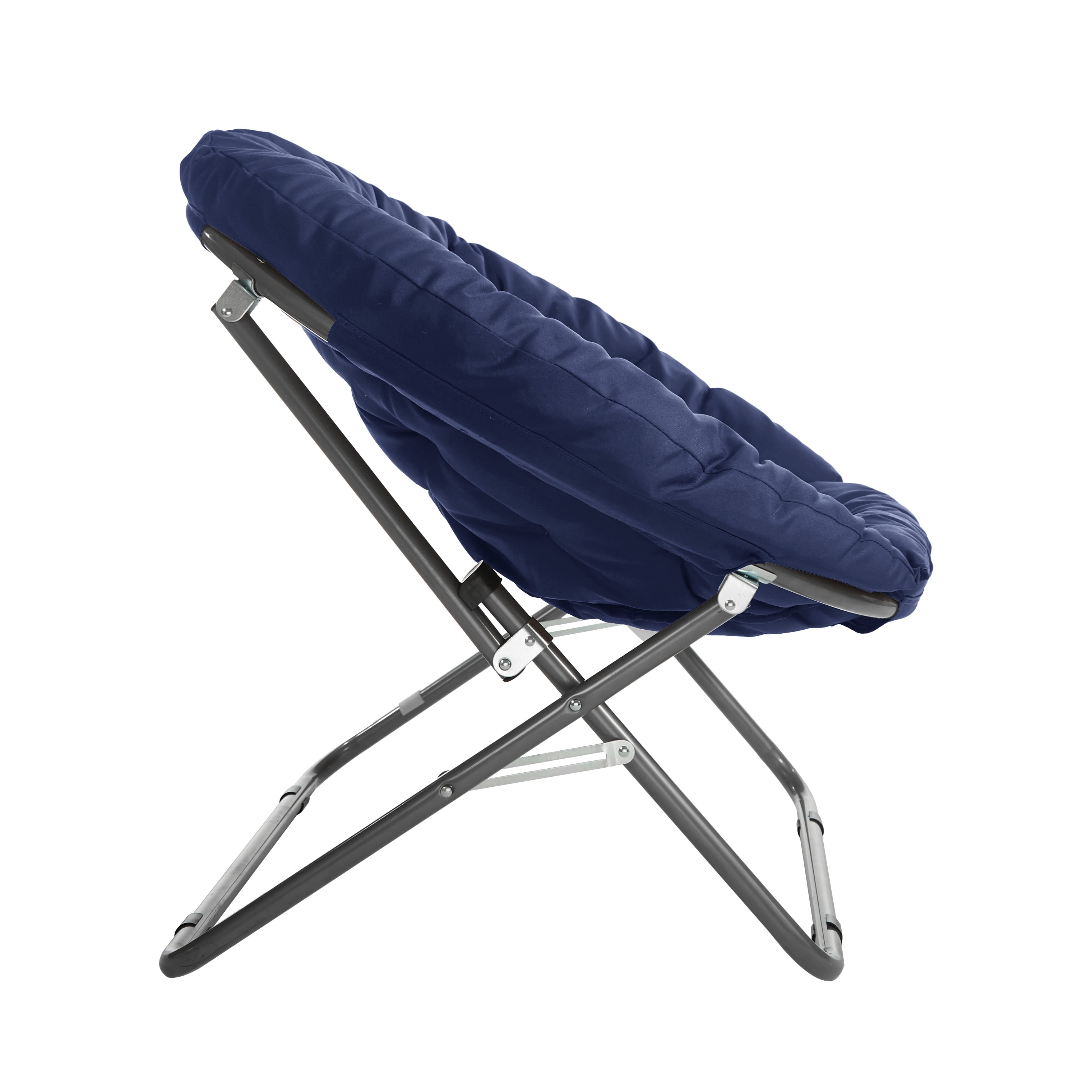 Give yourself a nice place to rest and relax with the Urban Shop Oversized Moon Saucer Chair. It makes a nice accent for any room and has a stylish look to complement your decor. This oversized folding moon chair has a wide design and cozy 100 percent polyester fabric. Use it as a comfortable place to study, read a book or watch TV after a long day. This Urban Shop Oversized Moon Saucer Chair features a strong steel frame and is easy to transport and fold to store. It’s convenient for dorm rooms, apartments, bedrooms and more. This oversized folding moon chair adds contemporary appeal to your living room or den area, entertainment room or any space where you need comfy extra seating. The Urban Shop Oversized Moon Saucer Chair makes a wonderful addition to your home and is also handy for gaming or to place in a playroom. No assembly is required, and it is available in a choice of several assorted colors.