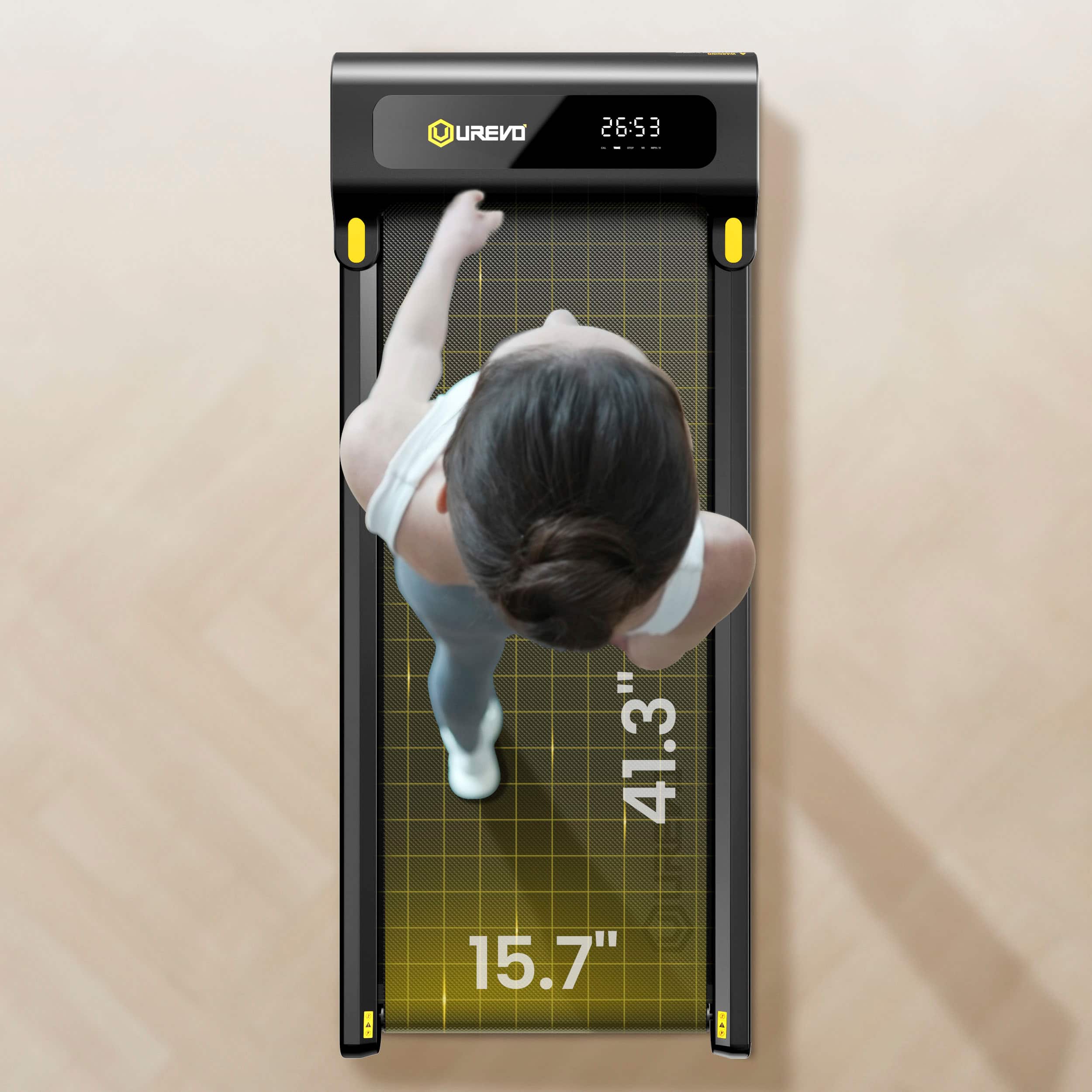 Meet the UREVO SP1 Lite Under Desk Treadmill, your compact fitness and work-from-home solution designed for convenience and performance. With its spacious track and double shock absorption system, enjoy a smooth and comfortable workout experience. Powered by a quiet 2.25HP motor, it supports up to 265 pounds and offers a speed range of 0.6-4mph, suitable for walking or jogging. Its portable design and included remote control make it easy to use and store, while the multi-function LED display keeps you informed of your progress in real-time. Get ready to keep moving while working from home or achieve your fitness goals effortlessly with the UREVO SP1 Lite.