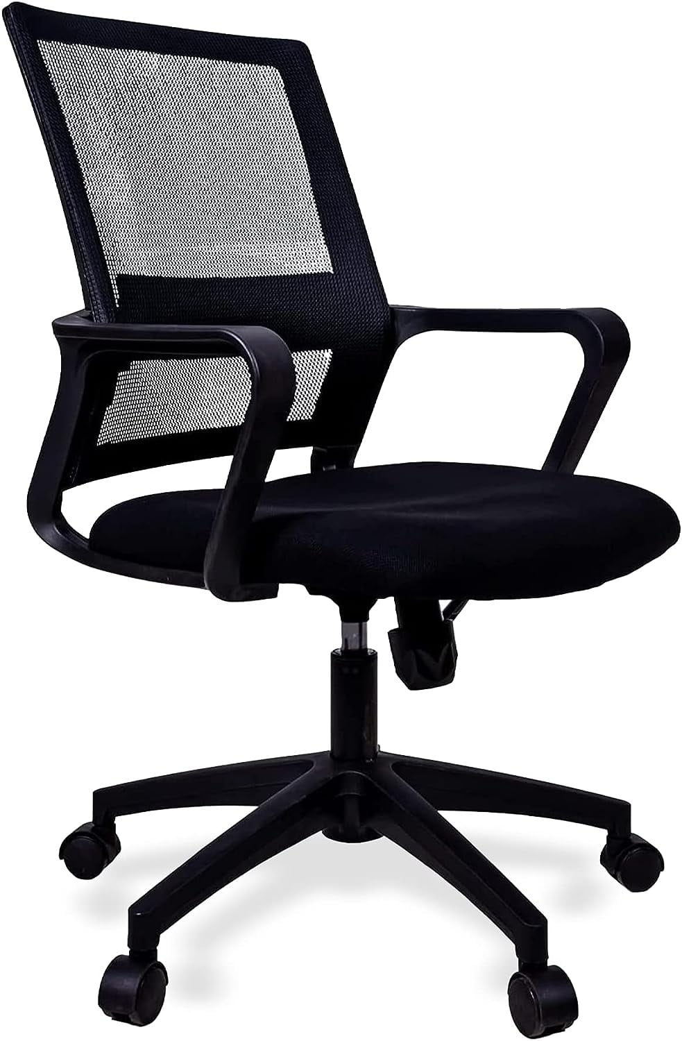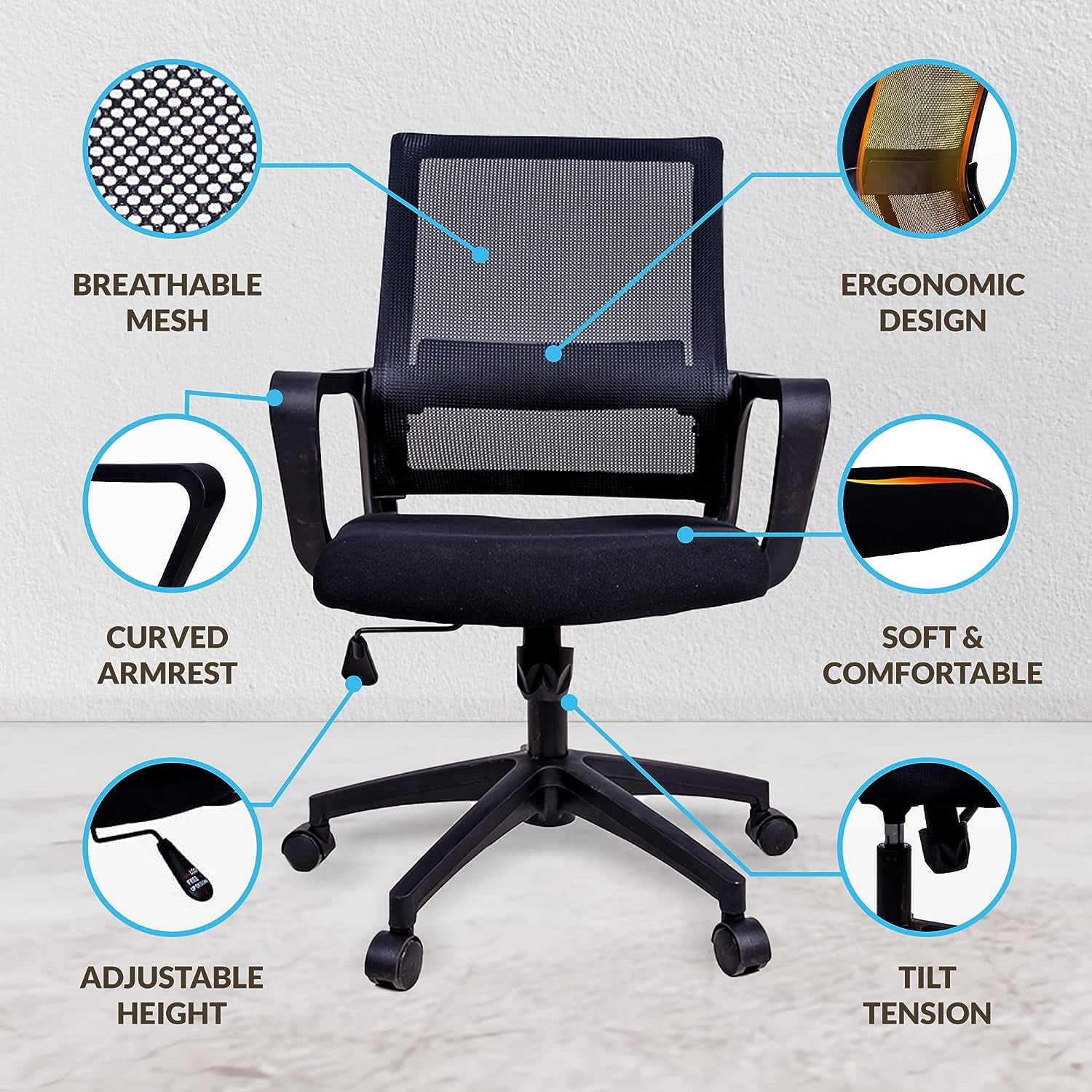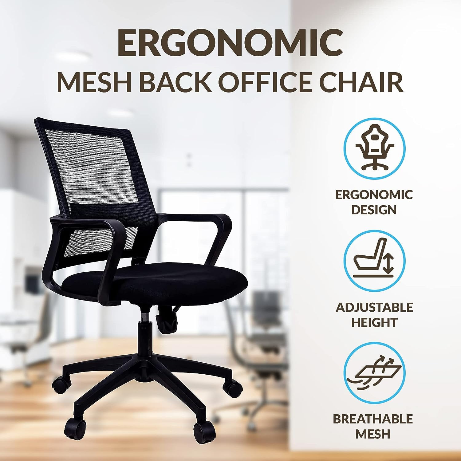 US Office Elements Mid Back Ergonomic Office Chair with Rectangular Lumbar Support, Mesh Desk Chair with Arms and Wheels, Adjustable Chair for Home and Office, Black