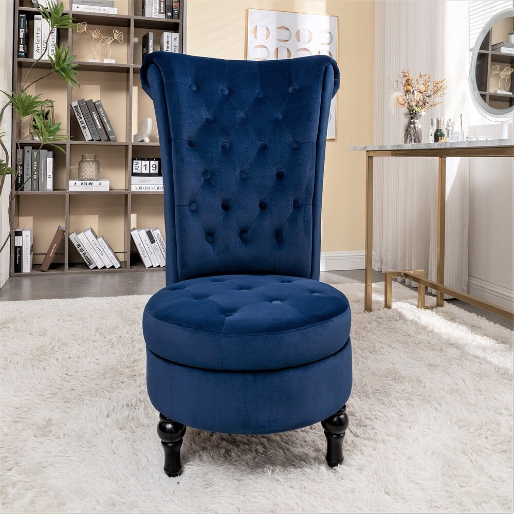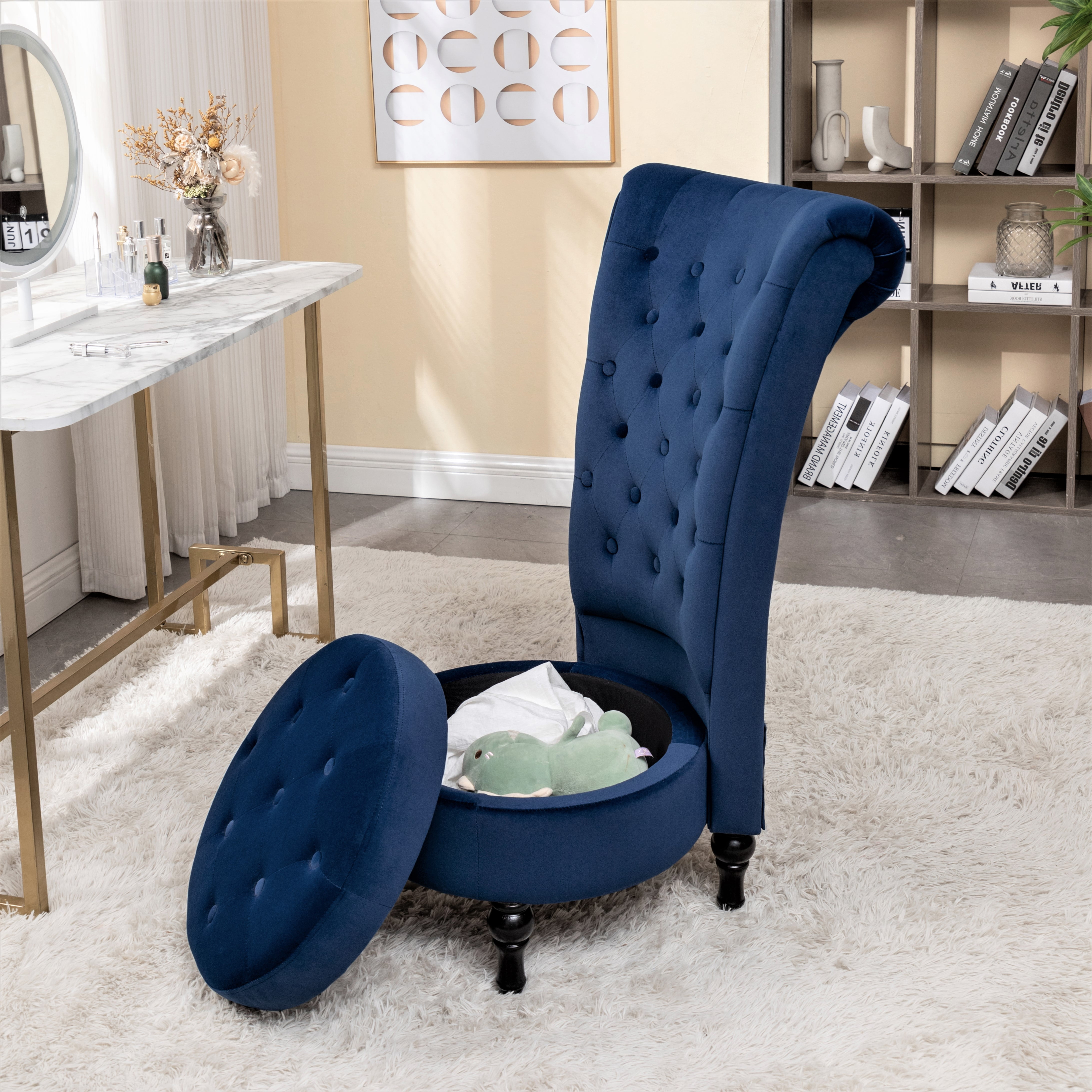 This living room chair adopts a retro style, this royal high-back velveteen tufted chair and the high-back design provides a more unique decoration, stylish sitting, while colorful velveteen upholstery gives this chair a stunning, unique appearance that is sure to stand out in all the right ways, which complements your modern room. It is an excellent choice for any family. This chair with a storage space under the seat has been offered to store your essentials, such as styling electricals, books, and some secret items, very suitable for living room. Dressing room, bedroom, lounge, office. No matter how busy your life is, it will provide you with a comfortable and practical private space to make your life more refined.