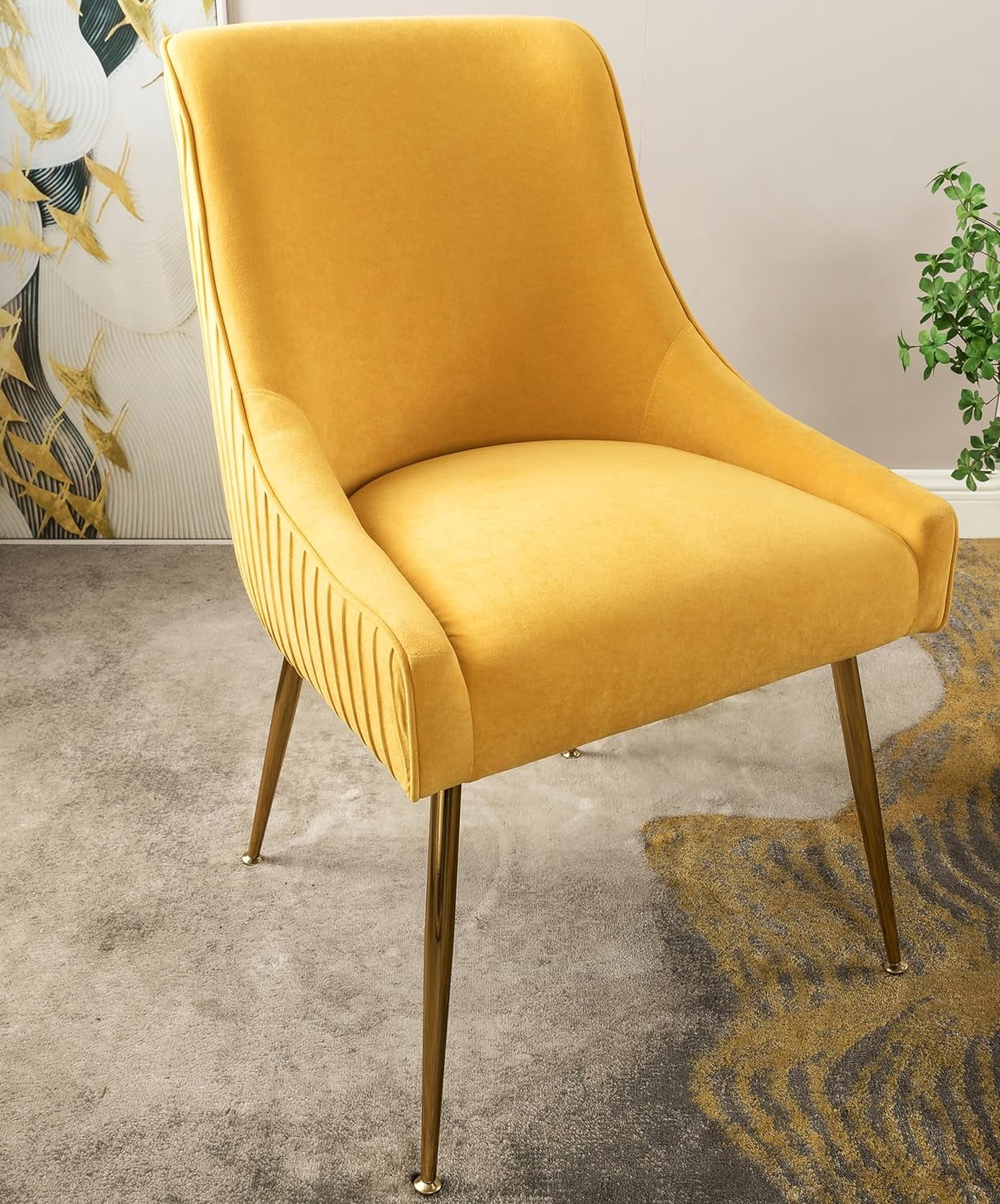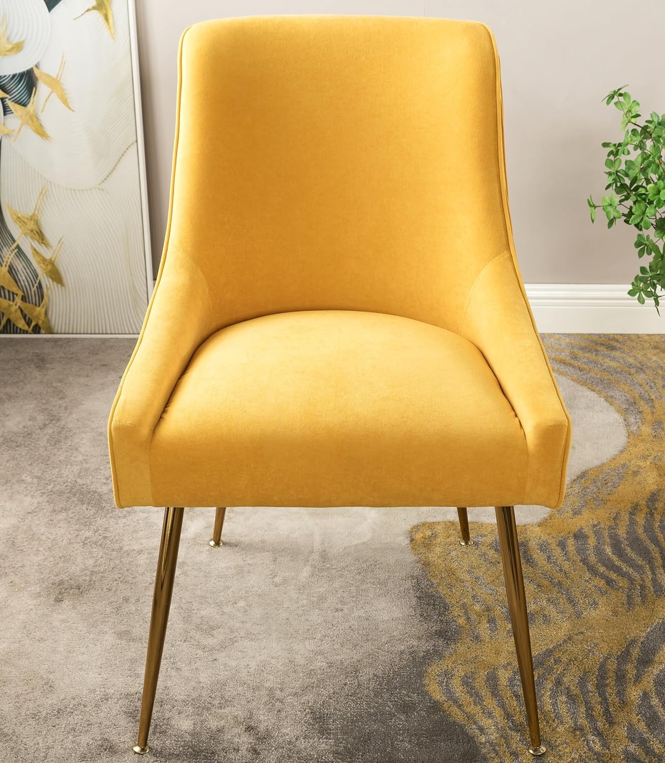 Elegant Scoop Back Design Gold Metal Legs Luxury Velvet Chair