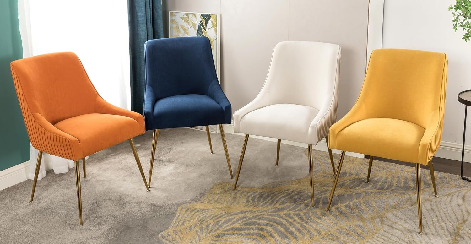 Indulge in luxurious dining experiences with our exquisite velvet dining chairs, designed to elevate your kitchen and dining room aesthetics. These chairs for dining tables are crafted with precision, featuring sumptuous velvet upholstery that exudes opulence and comfort. The rich hues of the velvet fabric complemented by the shimmering gold legs create a captivating visual contrast, making it an ideal dinner chair that effortlessly blends luxury with functionality. Our velvet dining room chairs not only enhance the ambiance of your dining space but also provide sturdy support for long hours of dining or entertaining guests. The sleek design with curved seatbacks adds a touch of sophistication, ensuring this dining table chair becomes your decor’s focal point. Whether hosting formal dinners or casual gatherings, these luxury dining chairs offer a perfect balance of style and durability. Experience the allure of dining chairs with gold legs, accentuating the timeless elegance of velvet upholstery. Make every meal a memorable affair with our premium velvet chairs that redefine comfort and luxury in your home. Shop Container Direct Furniture Kitchen & Dining Room Chairs now!