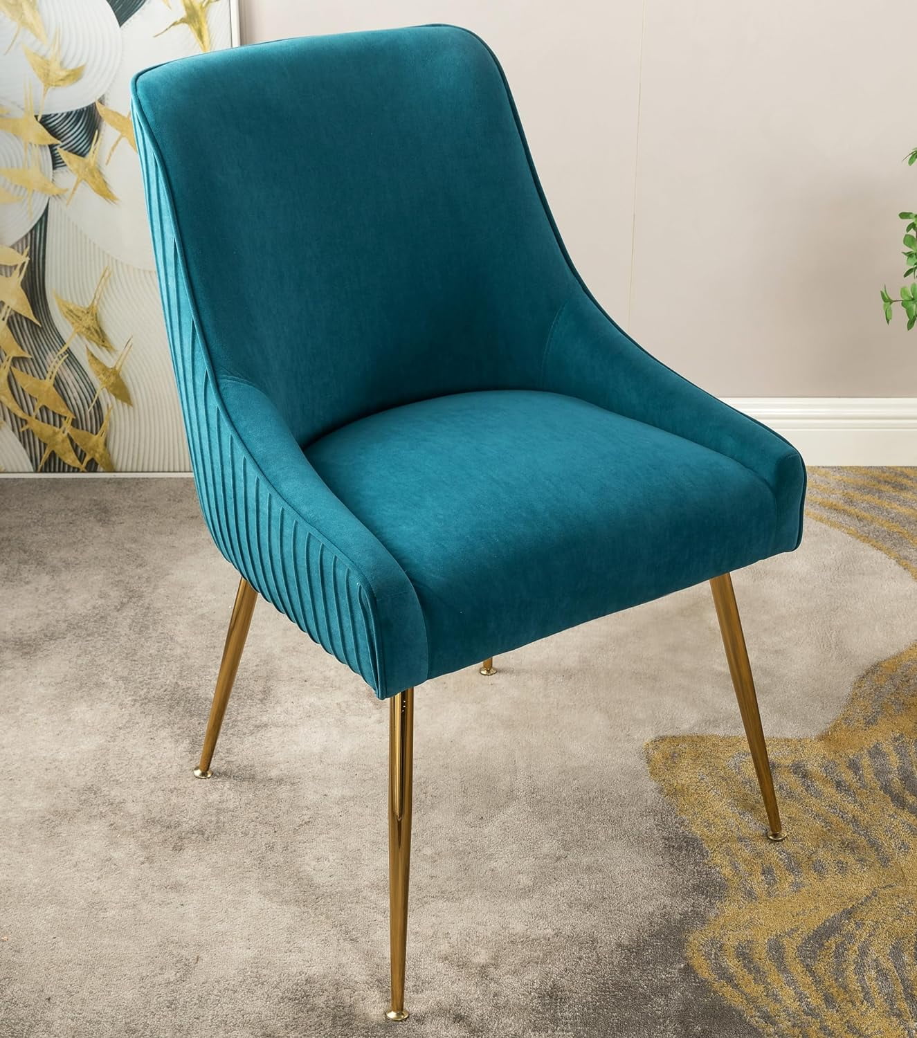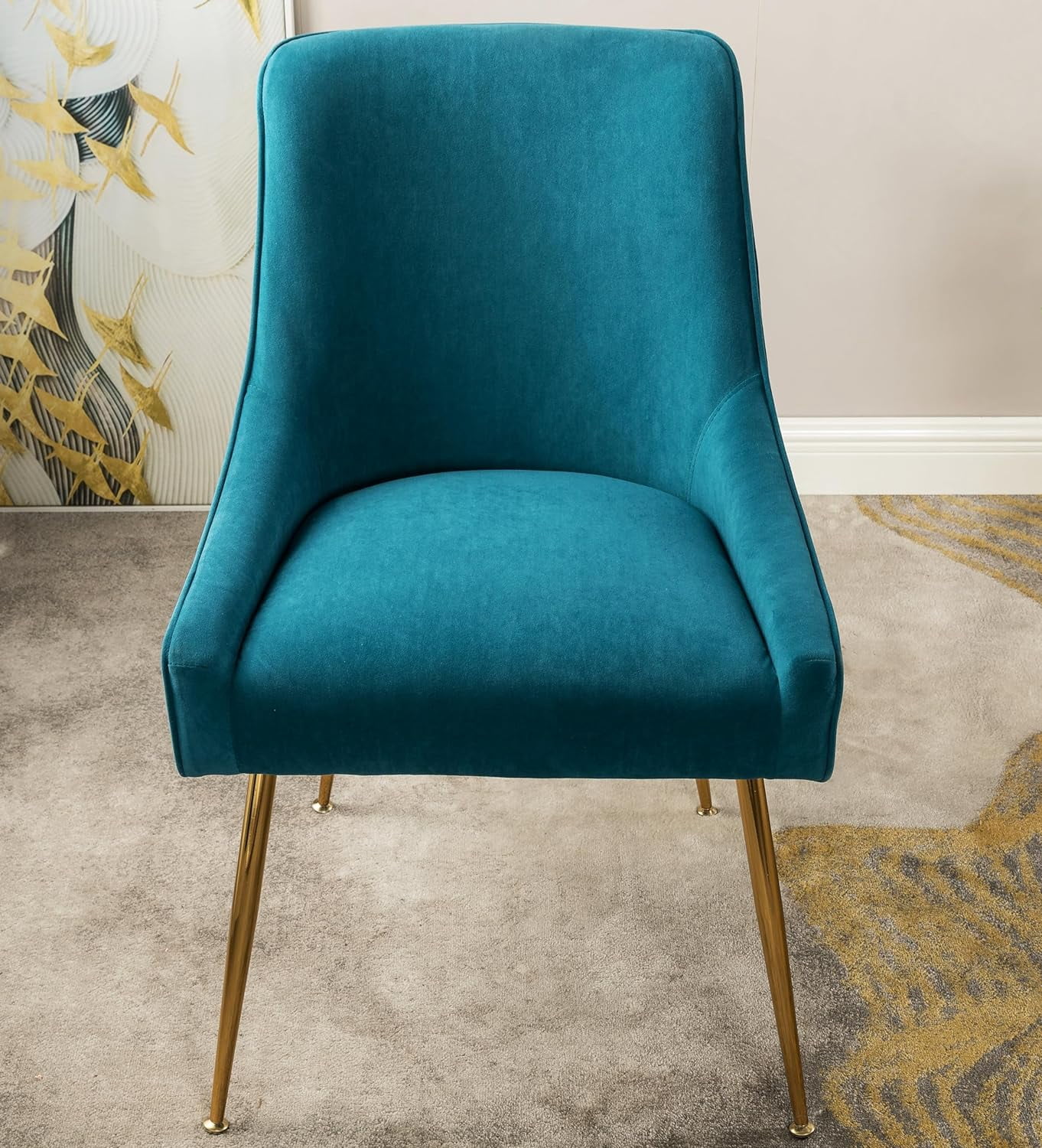 Elegant Scoop Back Design Gold Metal Legs Luxury Velvet Chair