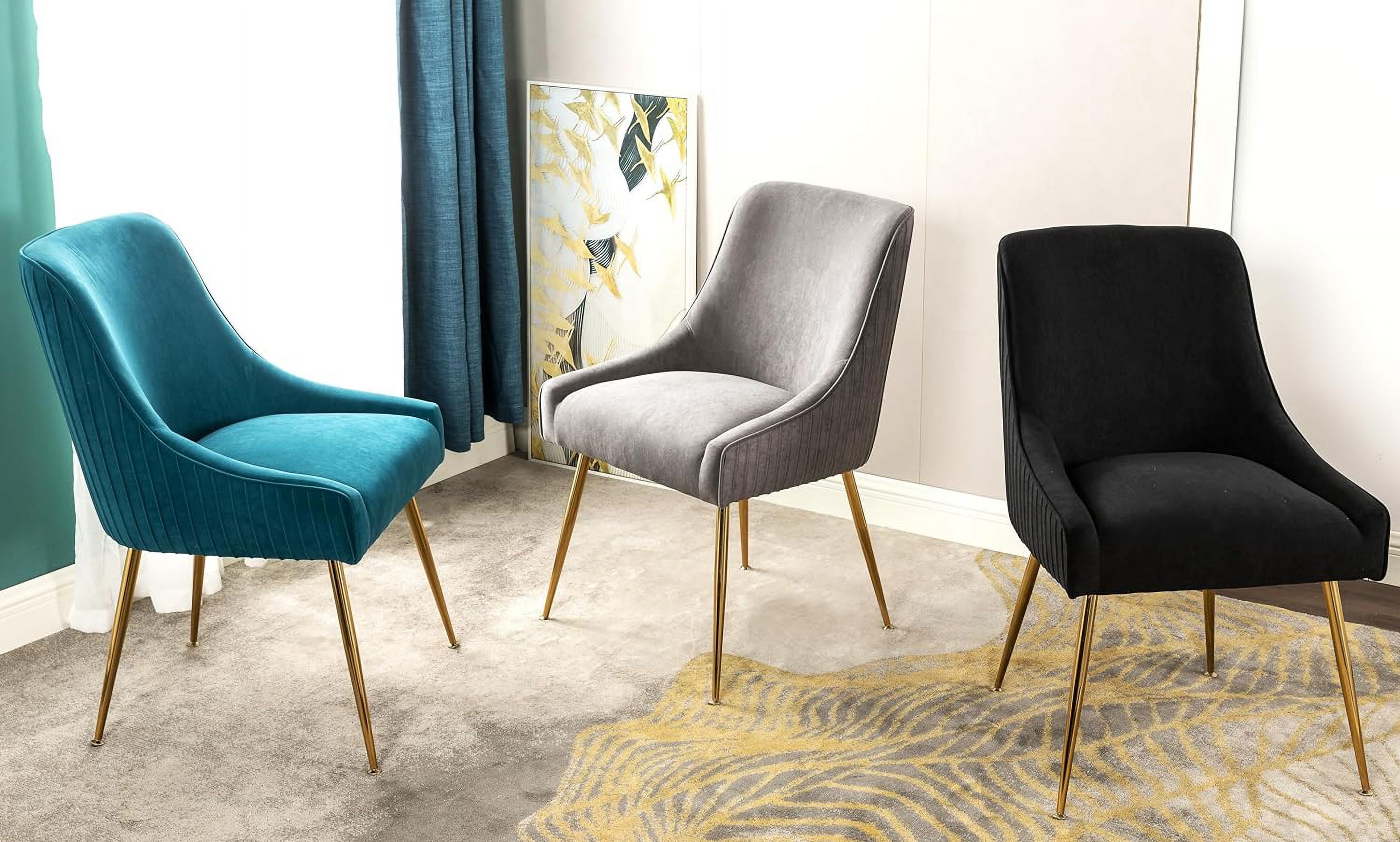 Indulge in luxurious dining experiences with our exquisite velvet dining chairs, designed to elevate your kitchen and dining room aesthetics. These chairs for dining tables are crafted with precision, featuring sumptuous velvet upholstery that exudes opulence and comfort. The rich hues of the velvet fabric complemented by the shimmering gold legs create a captivating visual contrast, making it an ideal dinner chair that effortlessly blends luxury with functionality. Our velvet dining room chairs not only enhance the ambiance of your dining space but also provide sturdy support for long hours of dining or entertaining guests. The sleek design with curved seatbacks adds a touch of sophistication, ensuring this dining table chair becomes your decor’s focal point. Whether hosting formal dinners or casual gatherings, these luxury dining chairs offer a perfect balance of style and durability. Experience the allure of dining chairs with gold legs, accentuating the timeless elegance of velvet upholstery. Make every meal a memorable affair with our premium velvet chairs that redefine comfort and luxury in your home. Shop Container Direct Furniture Kitchen & Dining Room Chairs now!