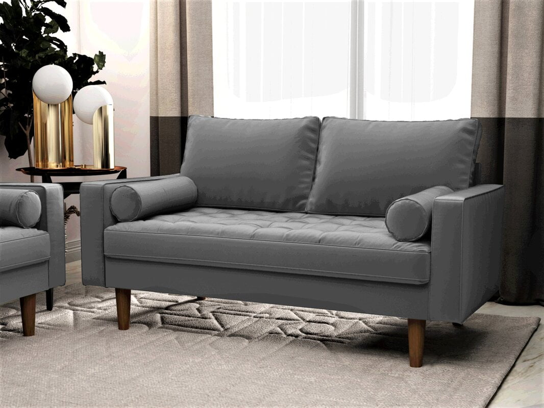 Toss Pillow Included Mid-century modern style Square arms Velvet Tufted Removable Cushions: Yes Upholstery Material: Velvet Design: Standard Assembly Required: Yes